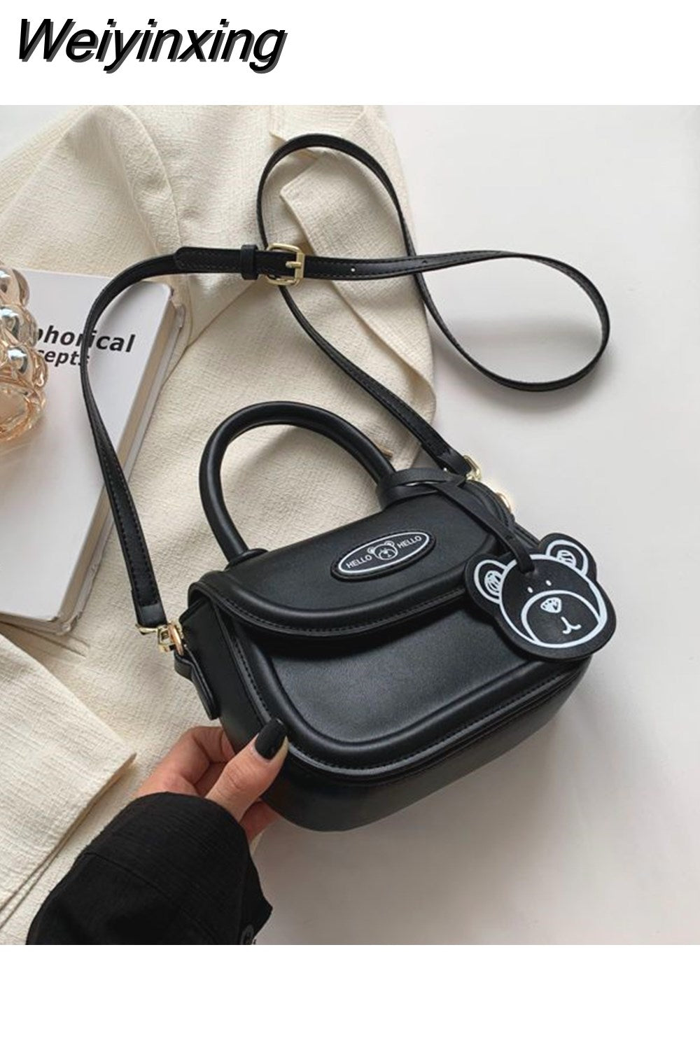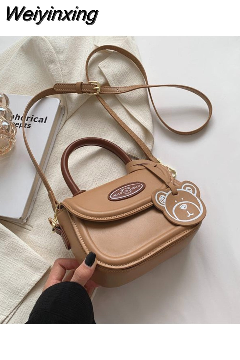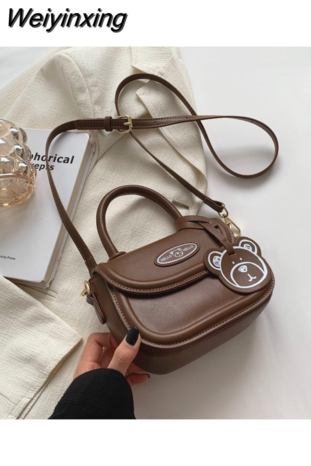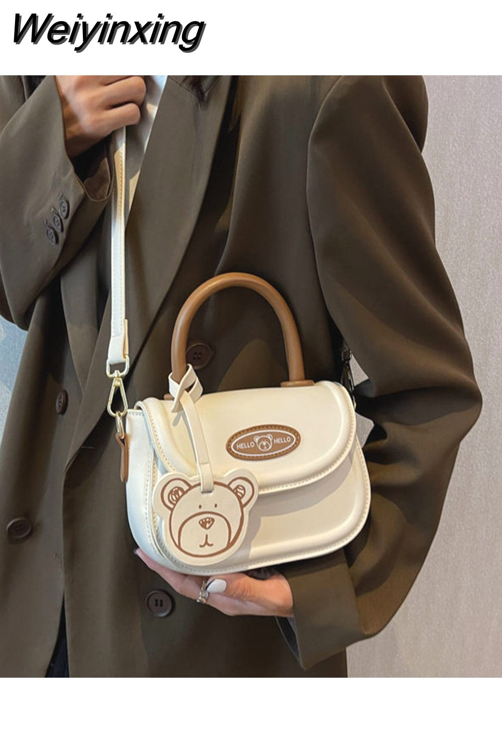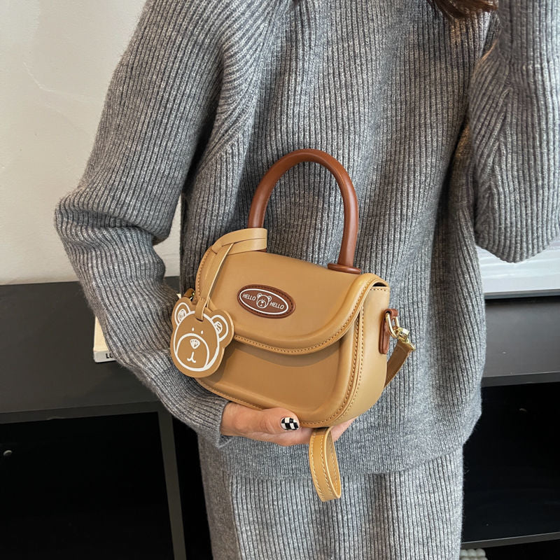 Weiyinxing Cute Bear Casual Saddle Bag for Women Korean Style 2023 Winter New Trend Coin Purse Female Fashion Pu Leather Shoulder Bag
