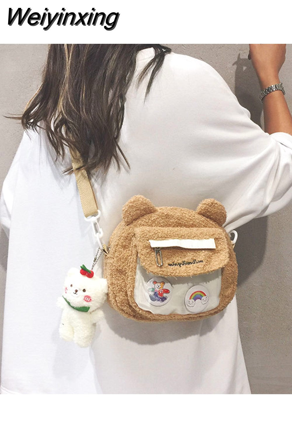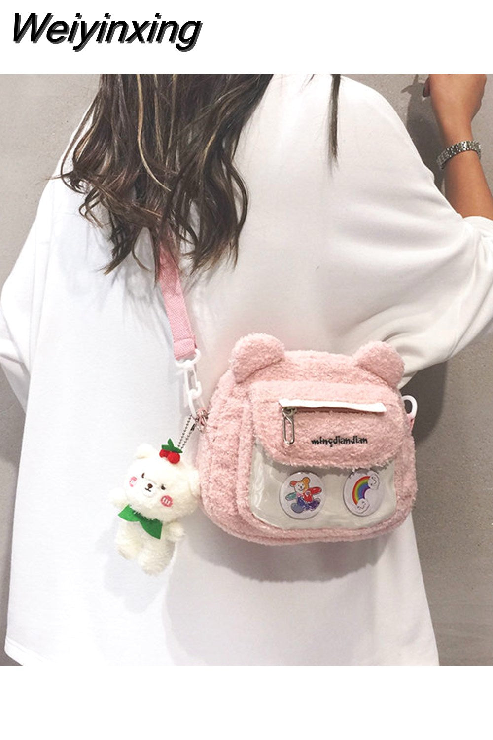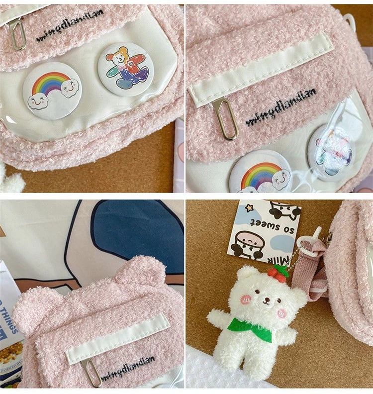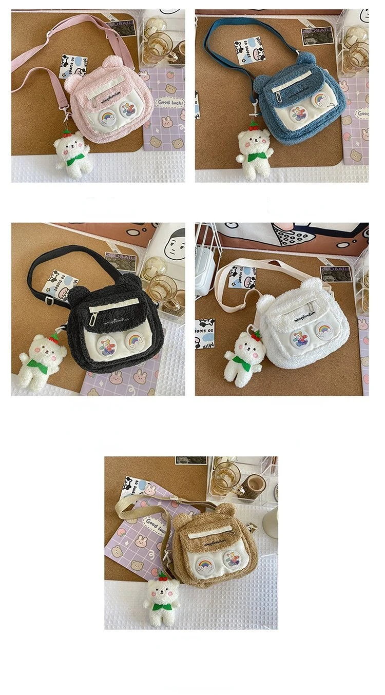 Weiyinxing Cute Bear Shoulder Bag for Women Girl Fluffy Winter Kawaii Small Trend Purse Japan Style Kid Soft Zipper Crossbody Bag