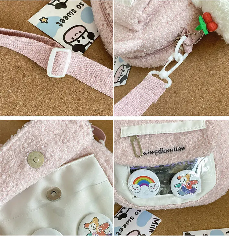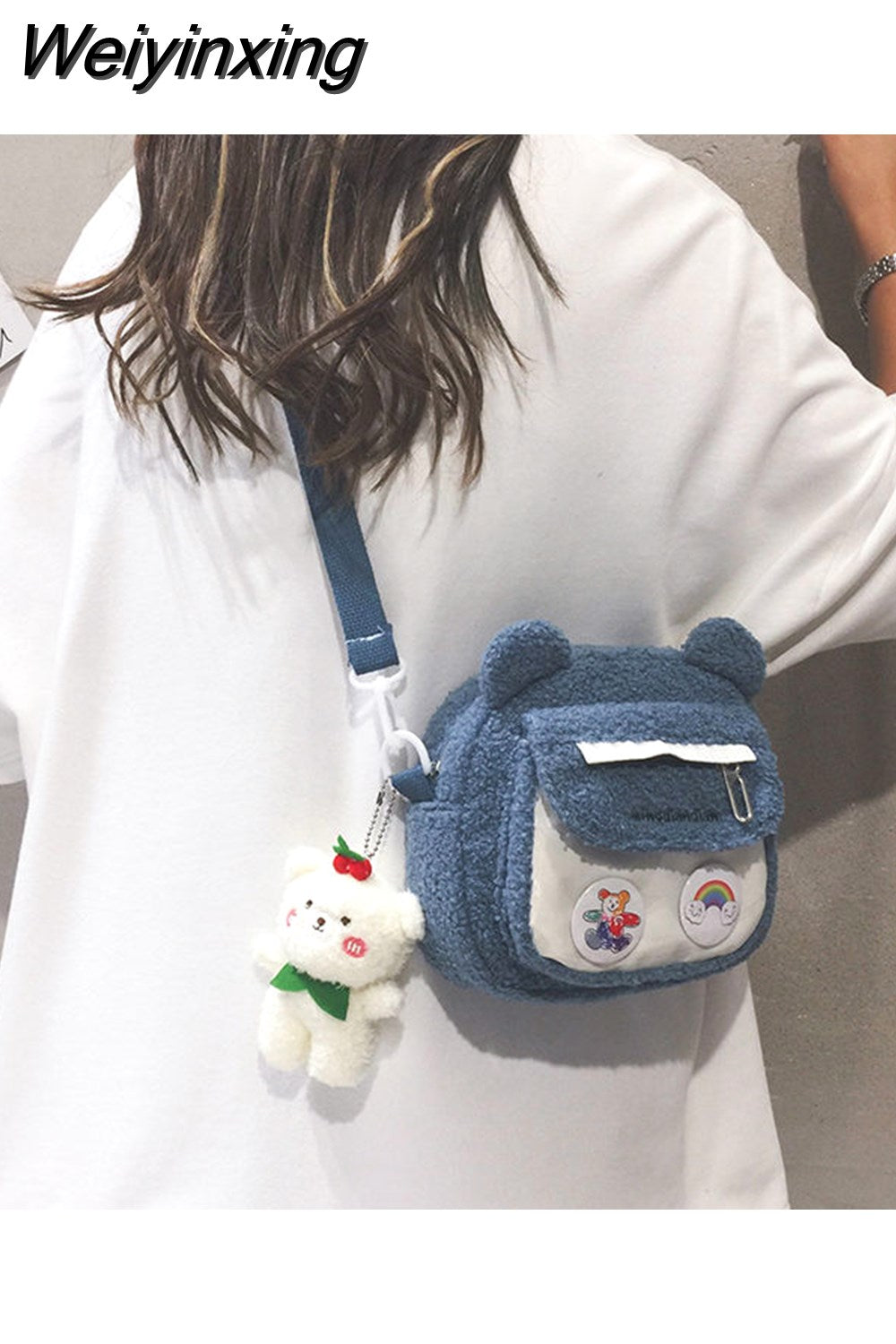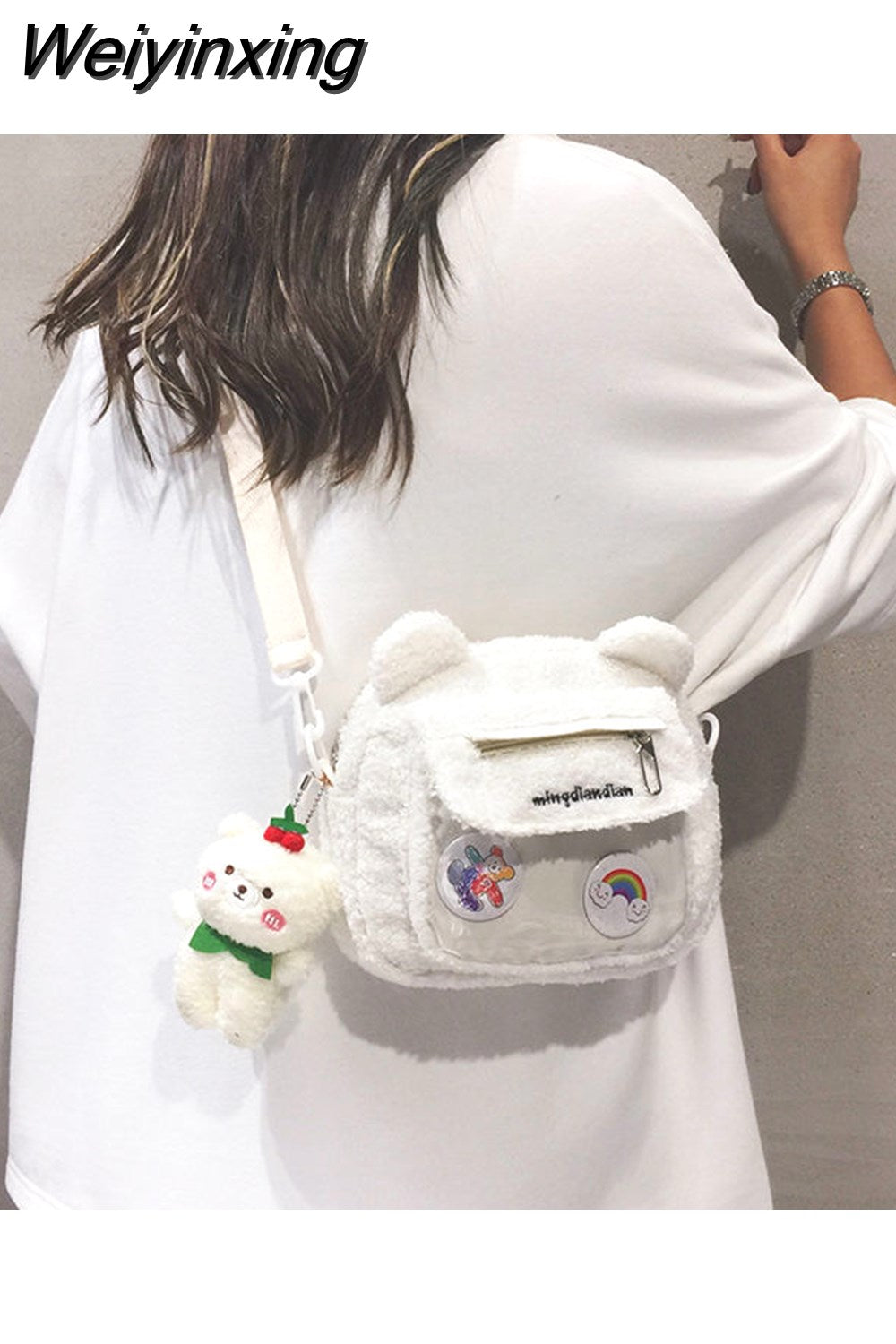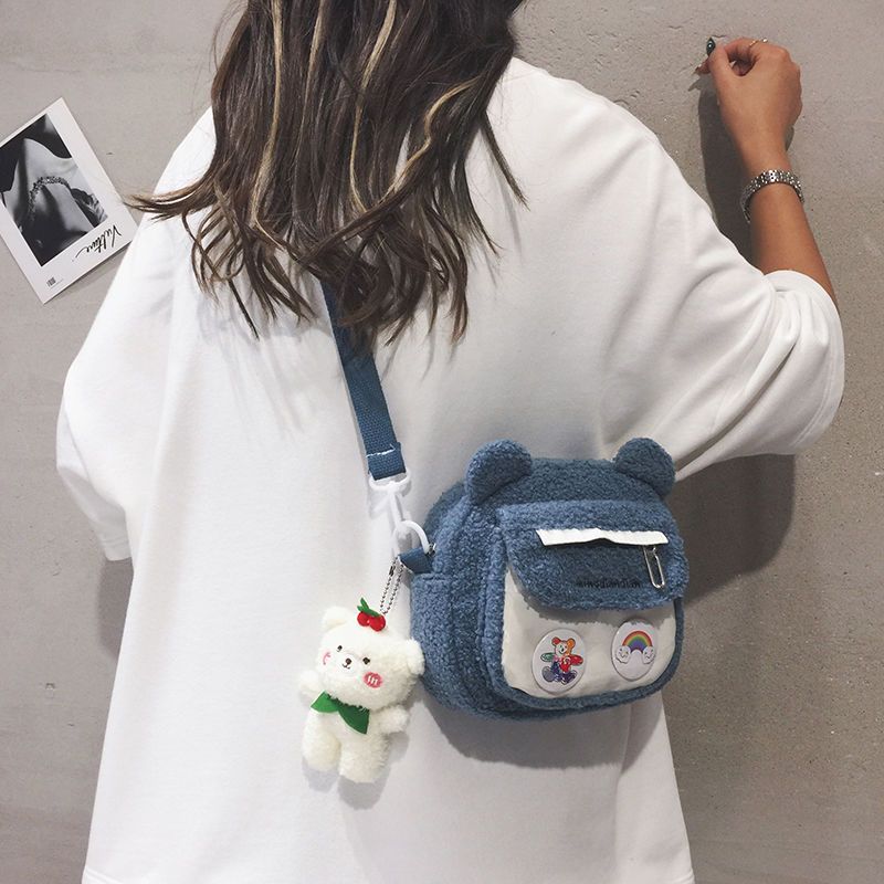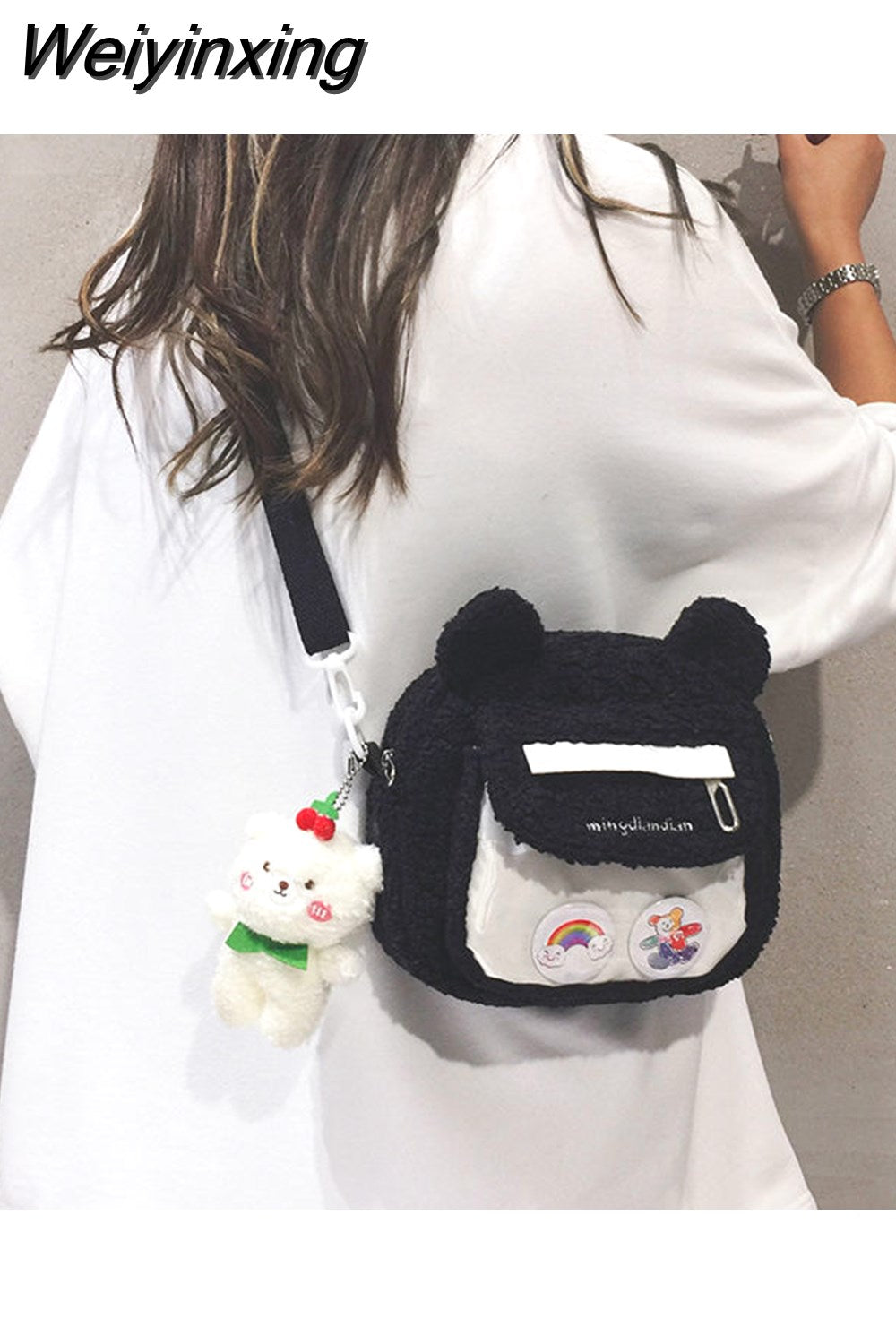 Weiyinxing Cute Bear Shoulder Bag for Women Girl Fluffy Winter Kawaii Small Trend Purse Japan Style Kid Soft Zipper Crossbody Bag