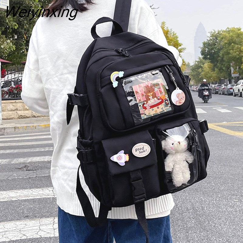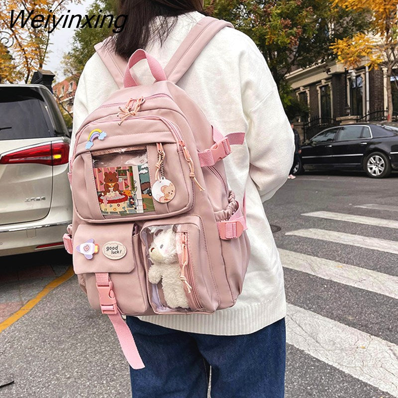 Weiyinxing Cute Women Backpacks Waterproof Multi-Pocket Nylon School Backpack for Student Female Girls Kawaii Laptop Book Pack Mochilas