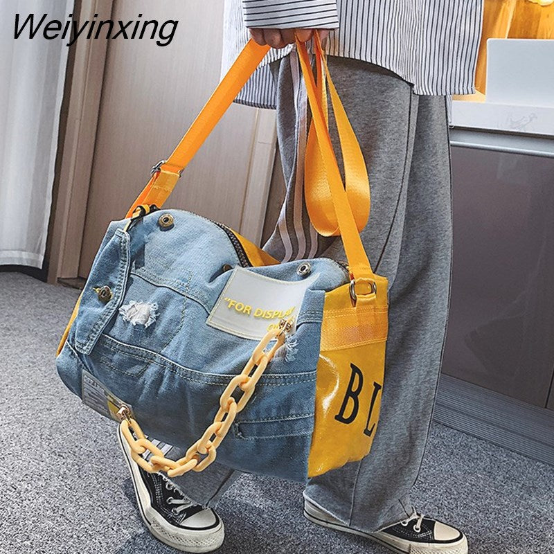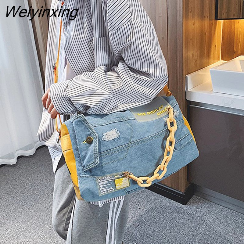 Weiyinxing Denim Women Shoulder Bags Large Capacity Travel Bag Designer Women Bags Luxury Blue Jeans Crossbody Bag Female Big Purse
