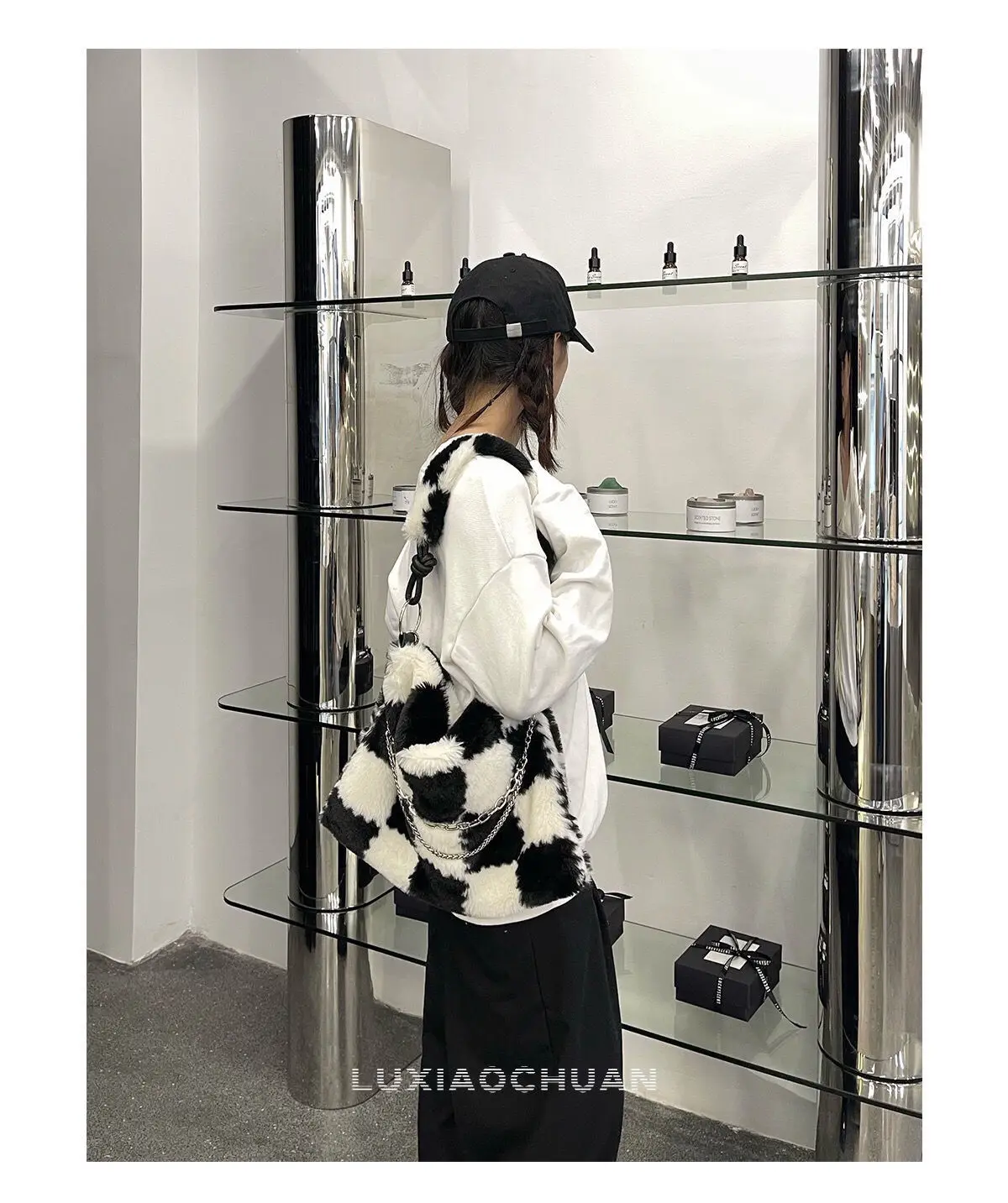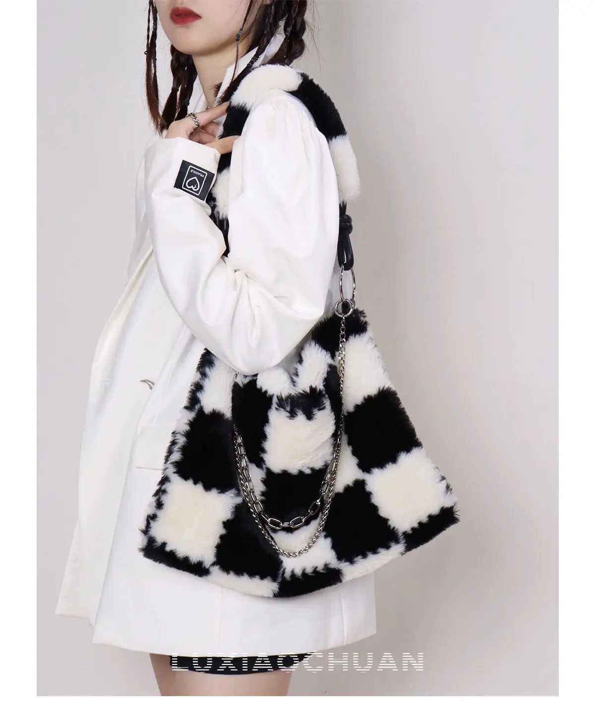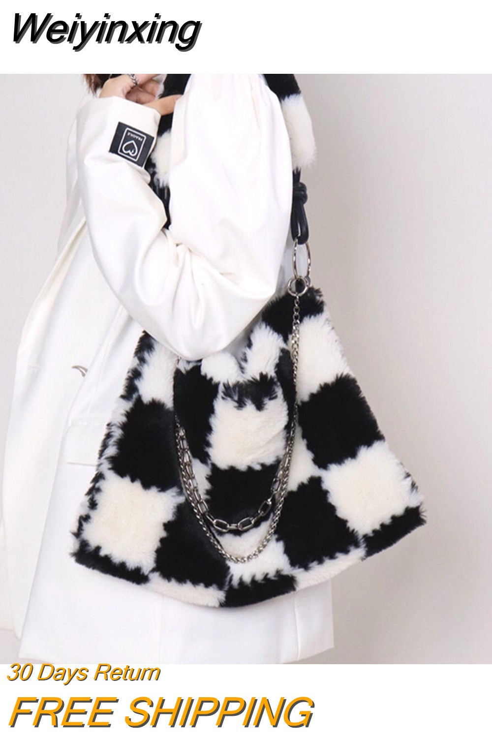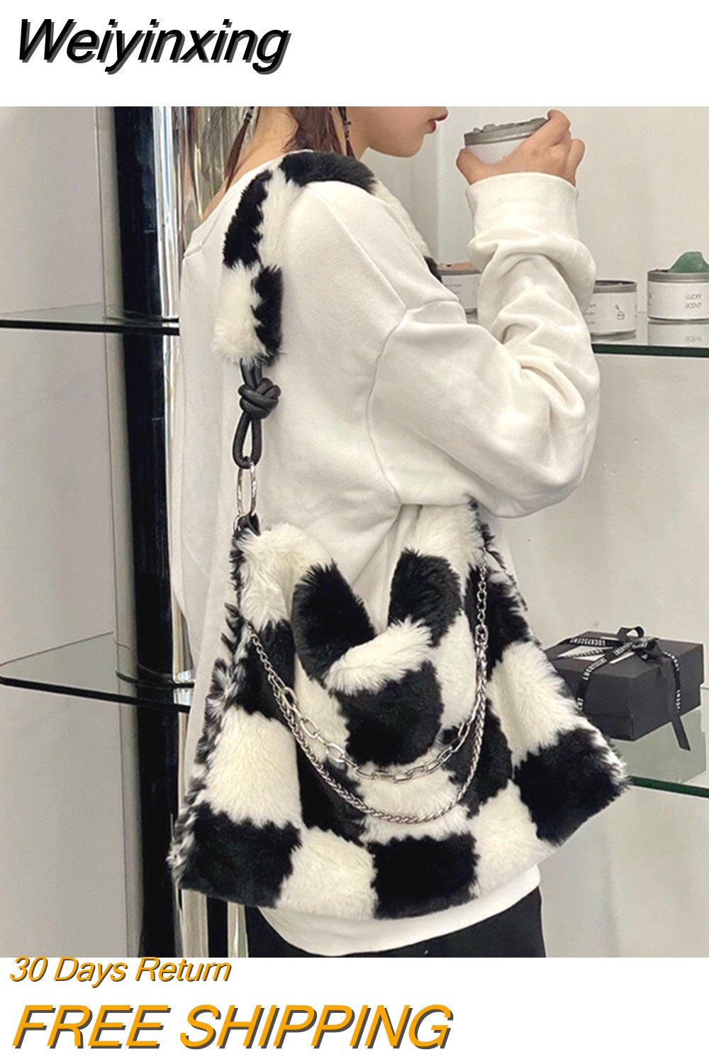Weiyinxing Design Women Soft Plush Shoulder Bag Fashion Ladies Faux Fur Chain Handbags Large Capacity Female Furry Tote Bags