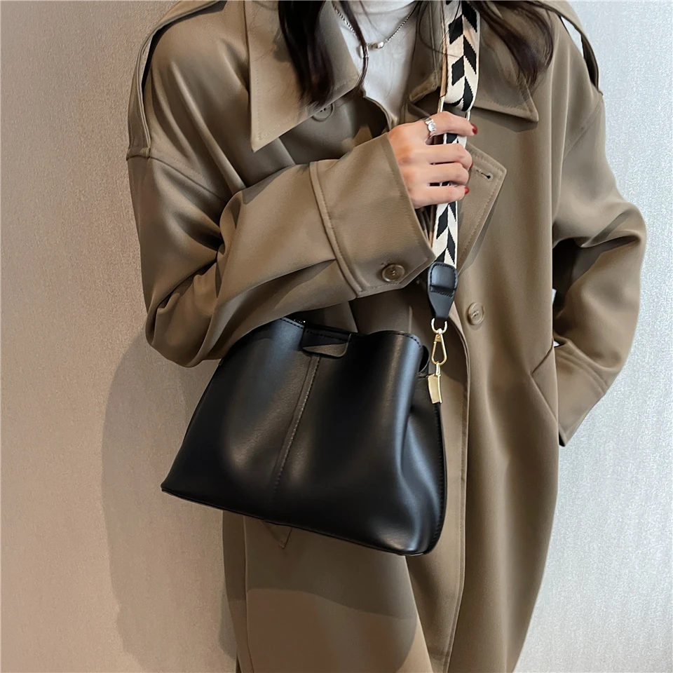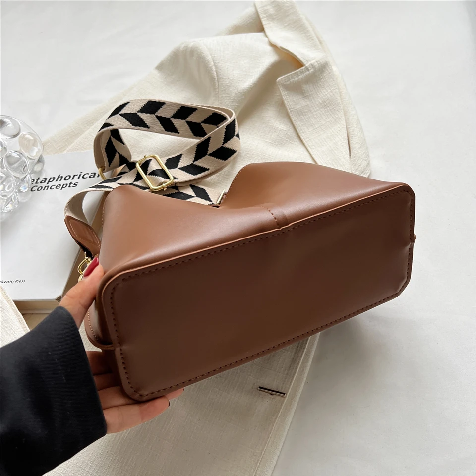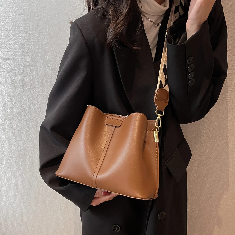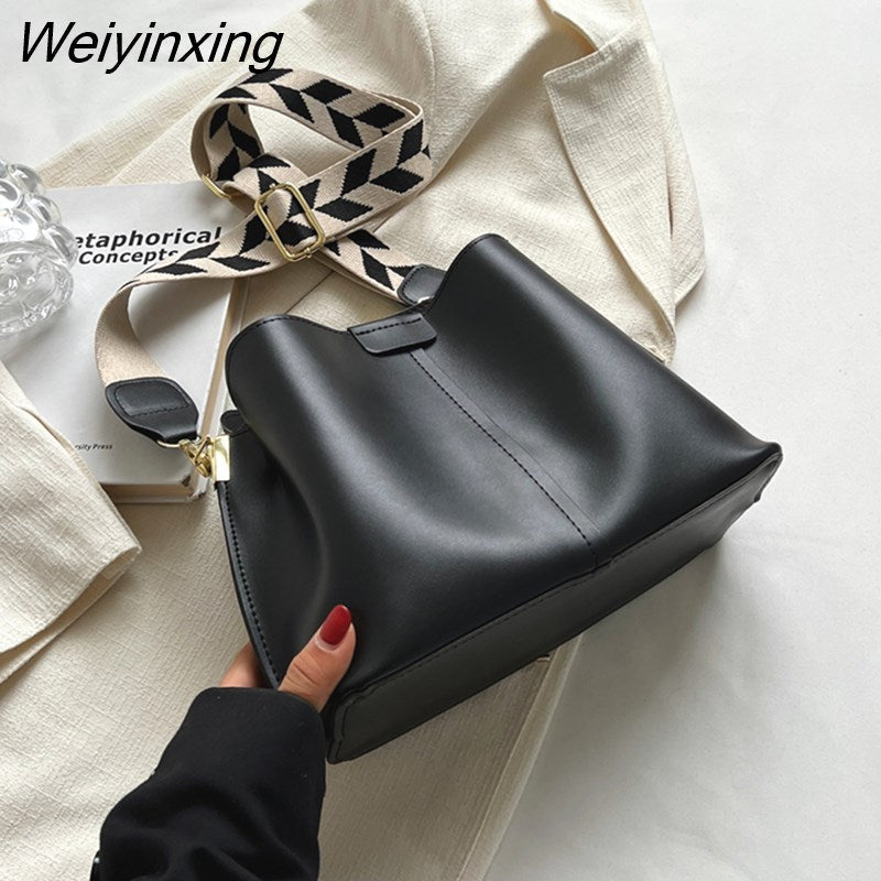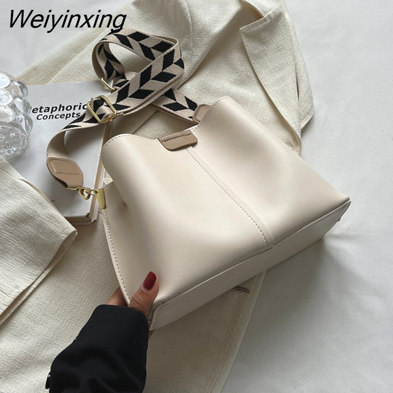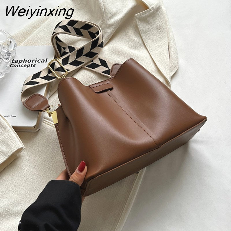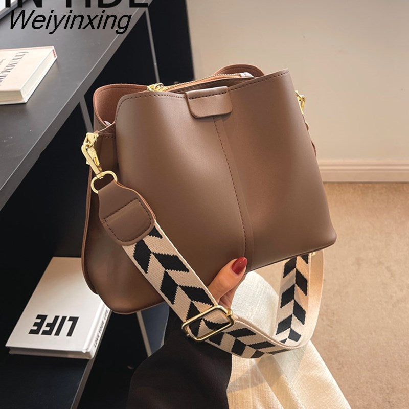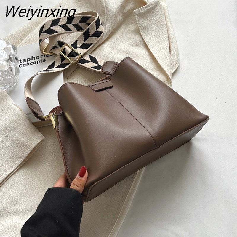 Weiyinxing Designer Wide Strap Bucket Small Women Handbags Autumn 2023 Fashion Simple Large Capacity Ladies Shoulder Crossbody Bags