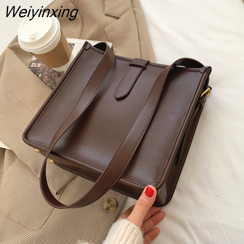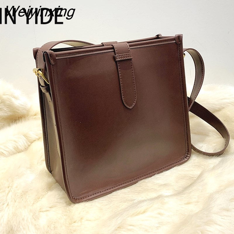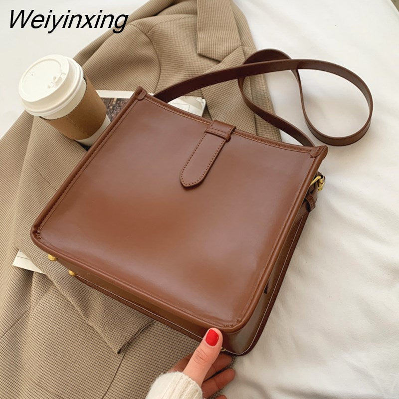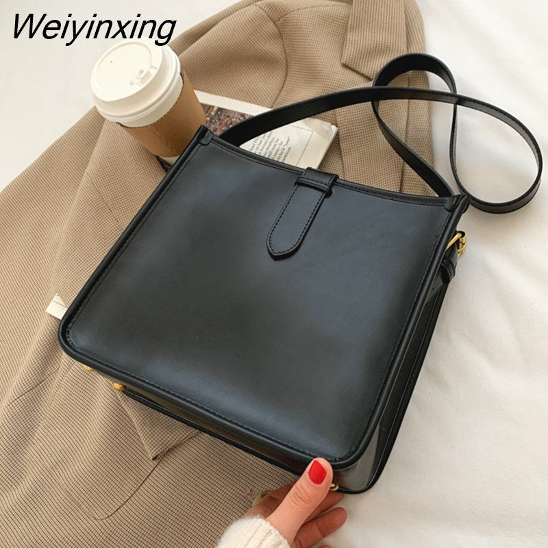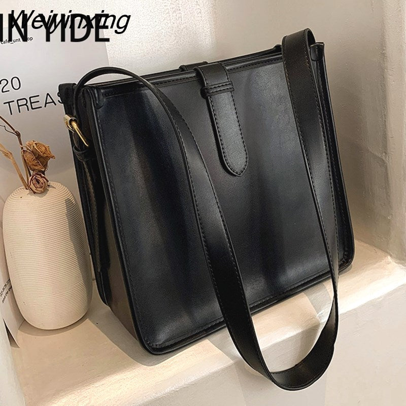 Weiyinxing Elegant Fashion Women Bucket Bag Large Capacity PU Leather All-match Shoulder Bags Ladies Texture Solid Color Handbag