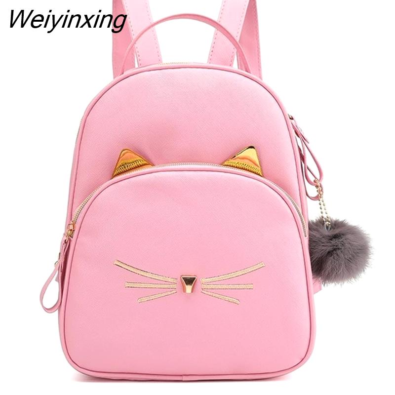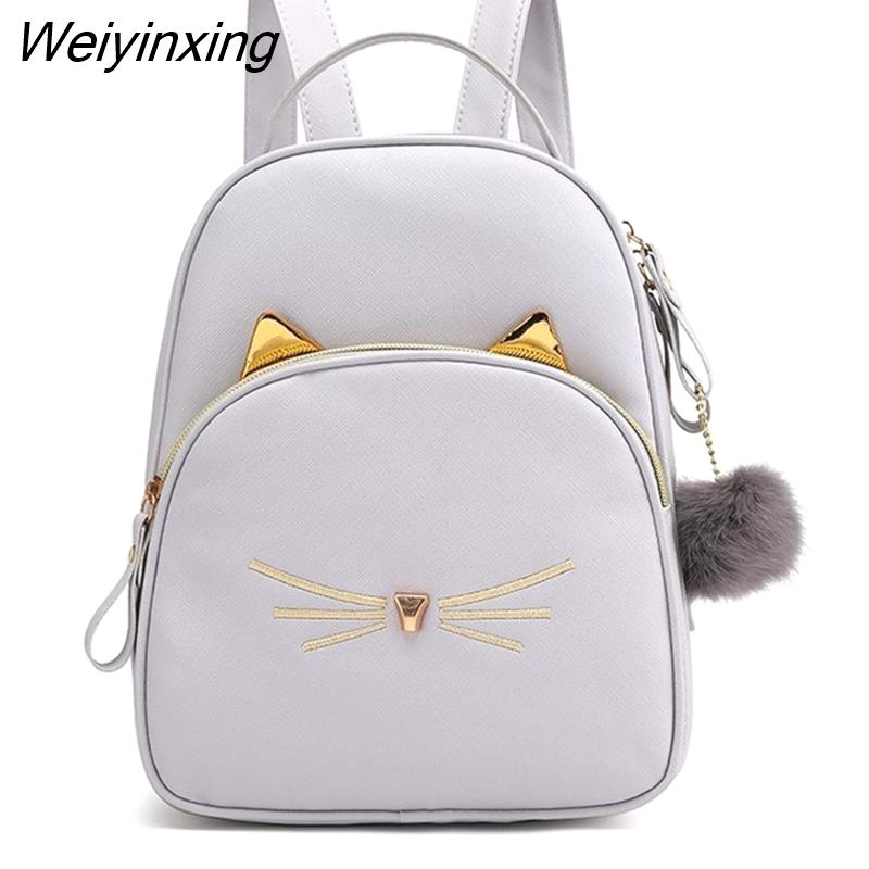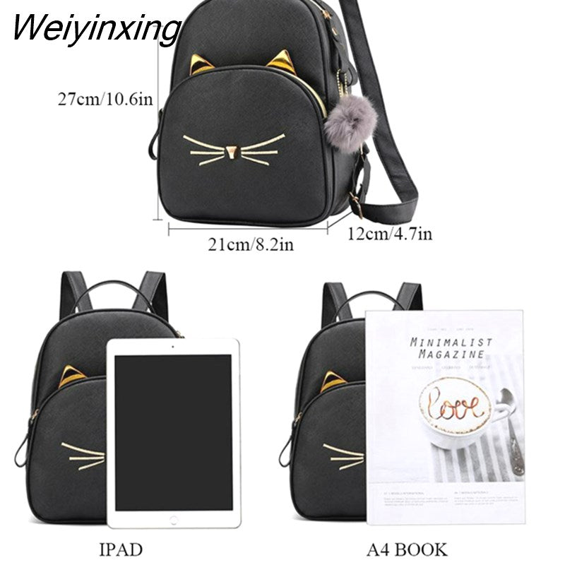 Weiyinxing FASHION Cartoon Cat Mini Cute Backpack Purse for Women Leisure Small Backpack Daypack PU Leather Shoulder Bag Fur Ball