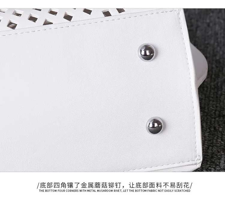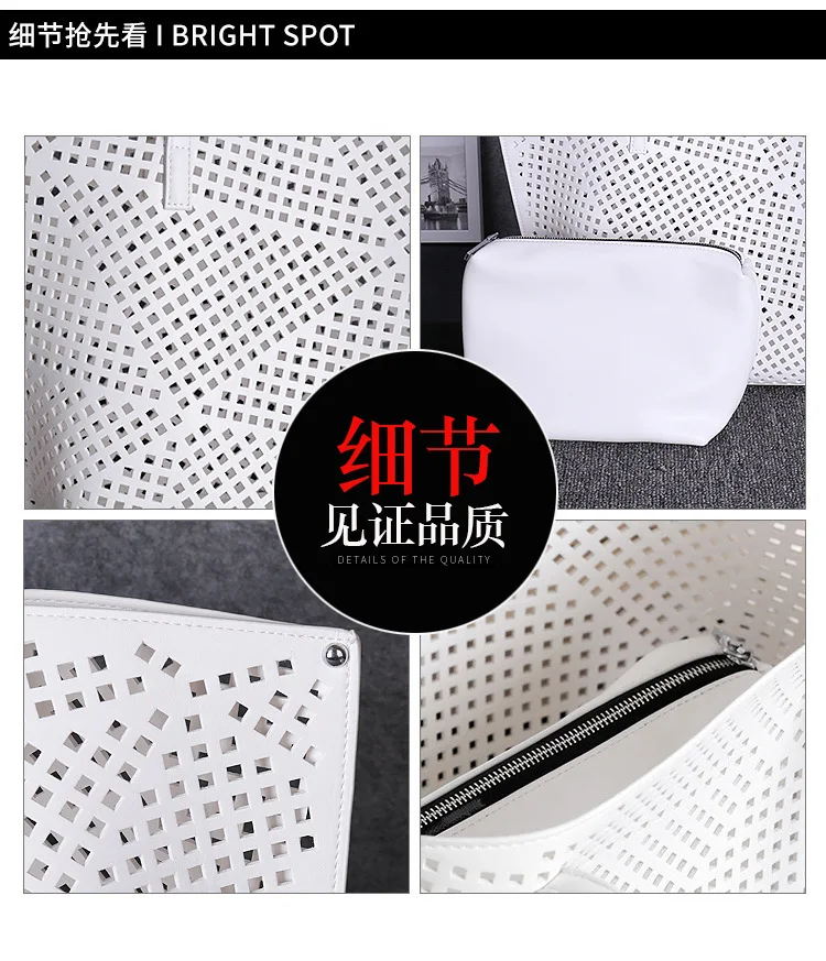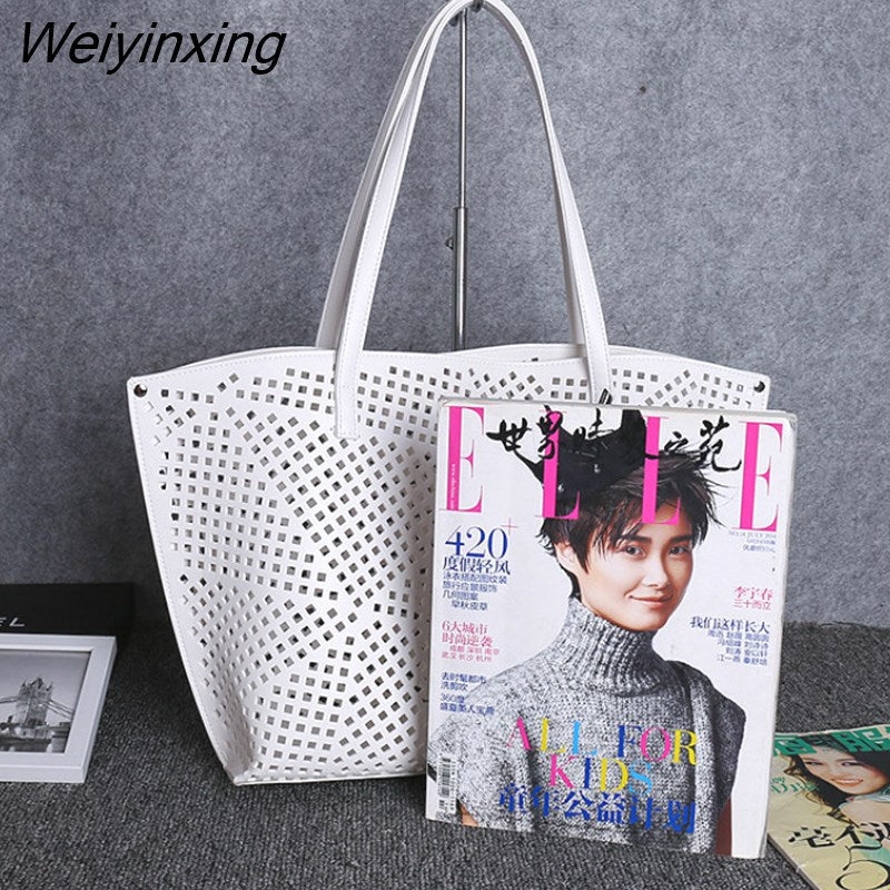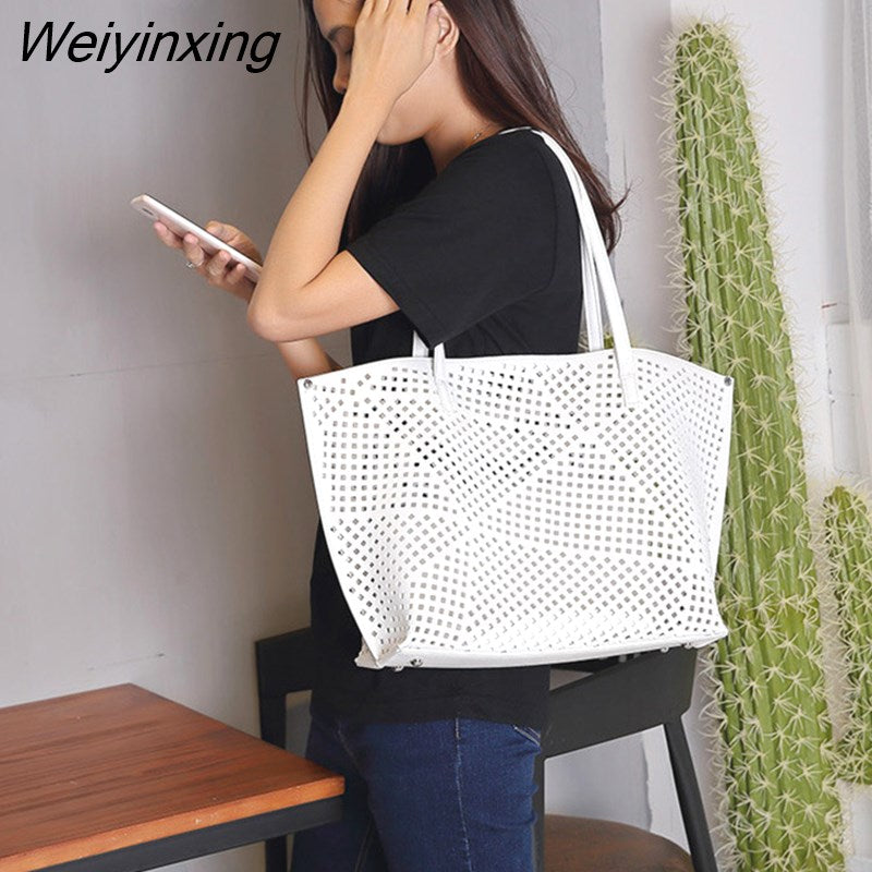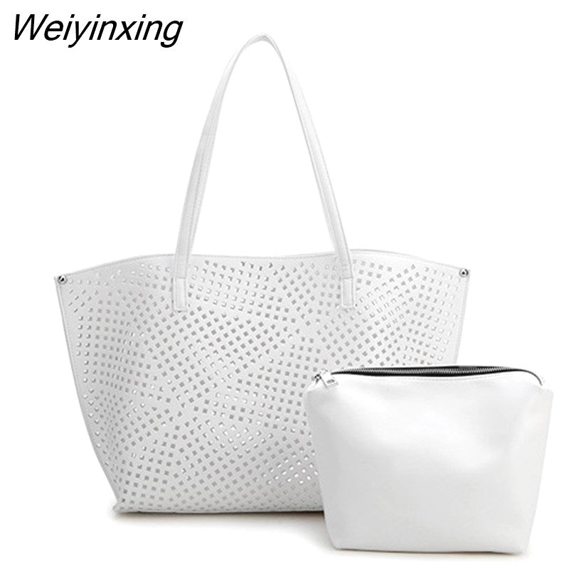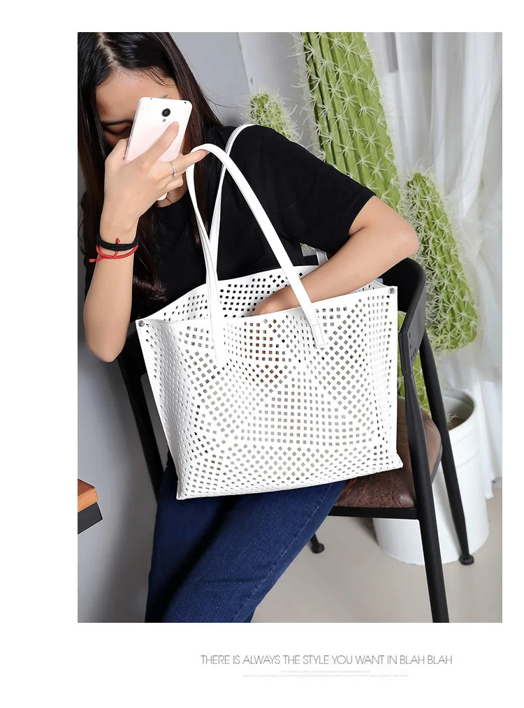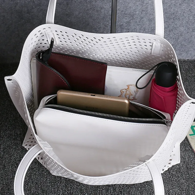 Weiyinxing Fashion Hollow Out Women Large Capacity Tote Bags White Luxury Shoulder Bags for Work 2 Pieces Set Purses and Handbags