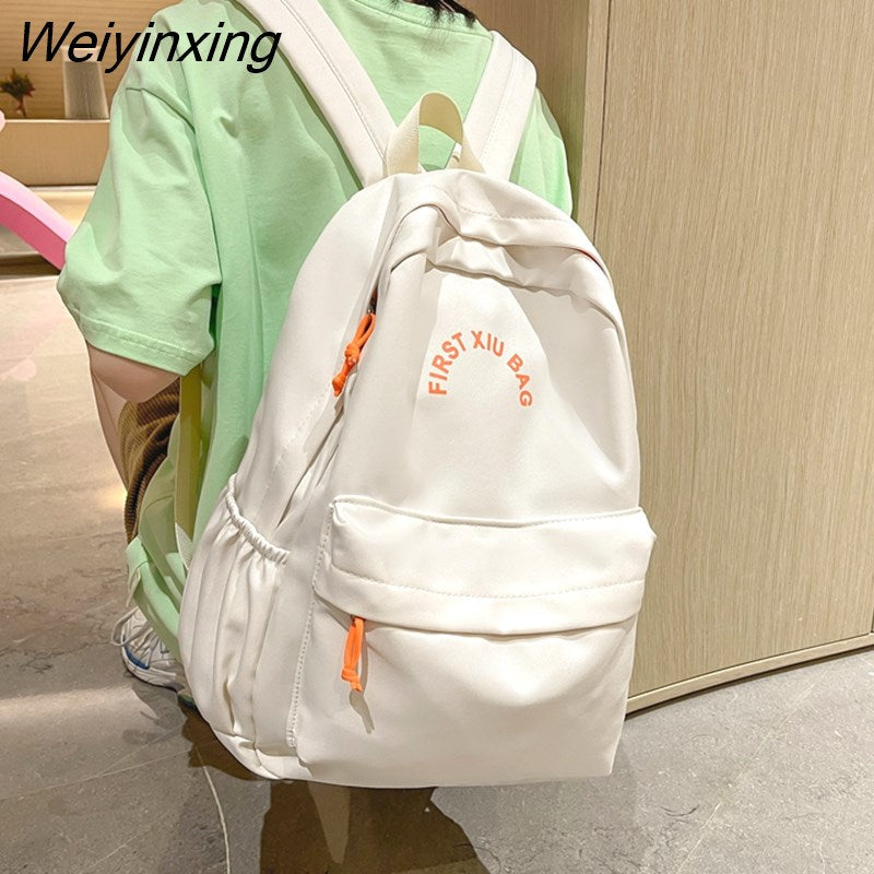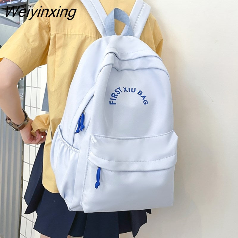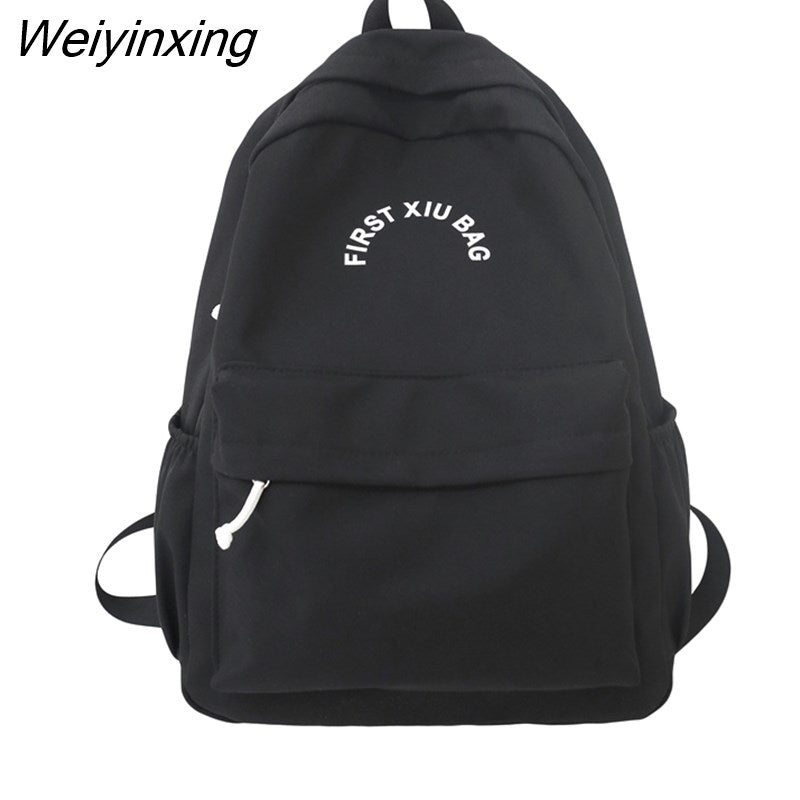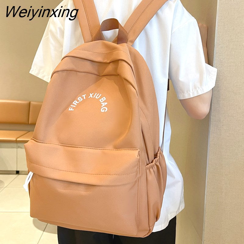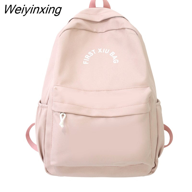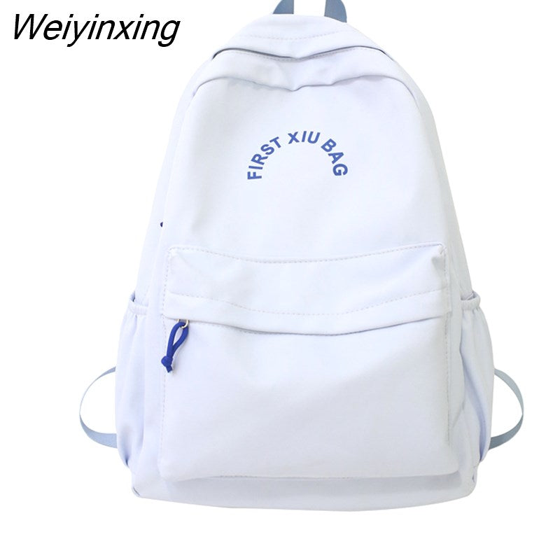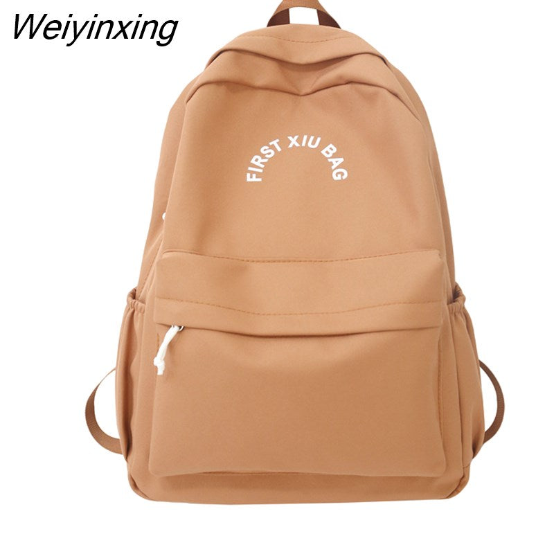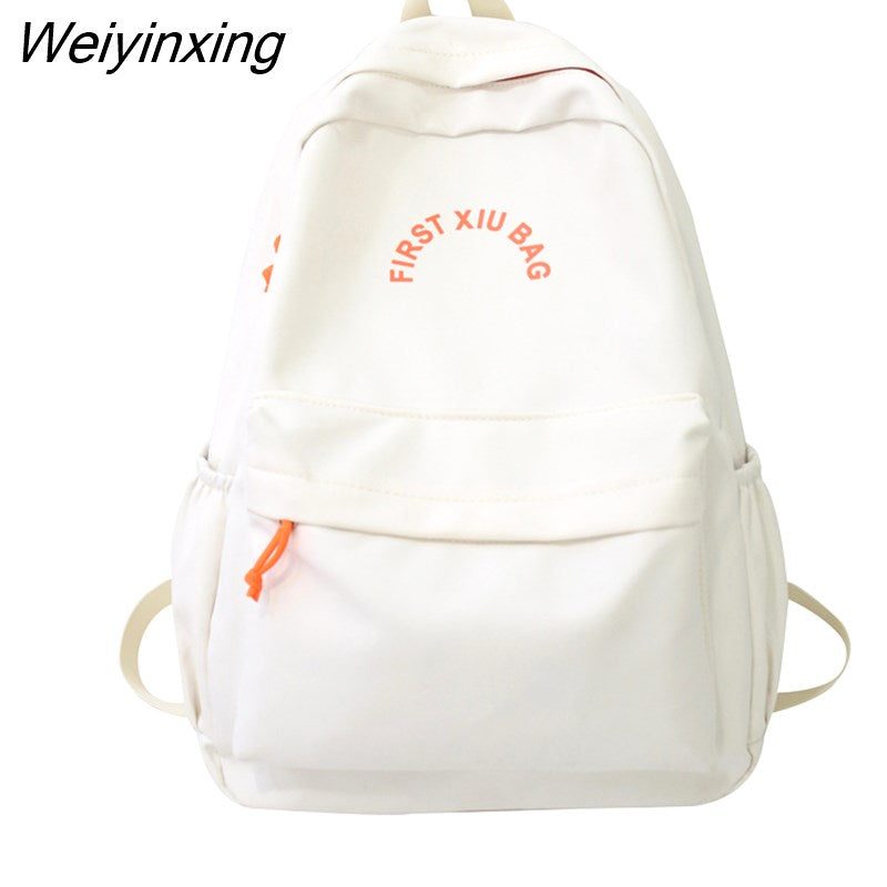 Weiyinxing Fashion Letter Printing Women Backpack Female Solid Color Nylon Travel Bag Kawaii Girl Simple Schoolbag Student School Bag