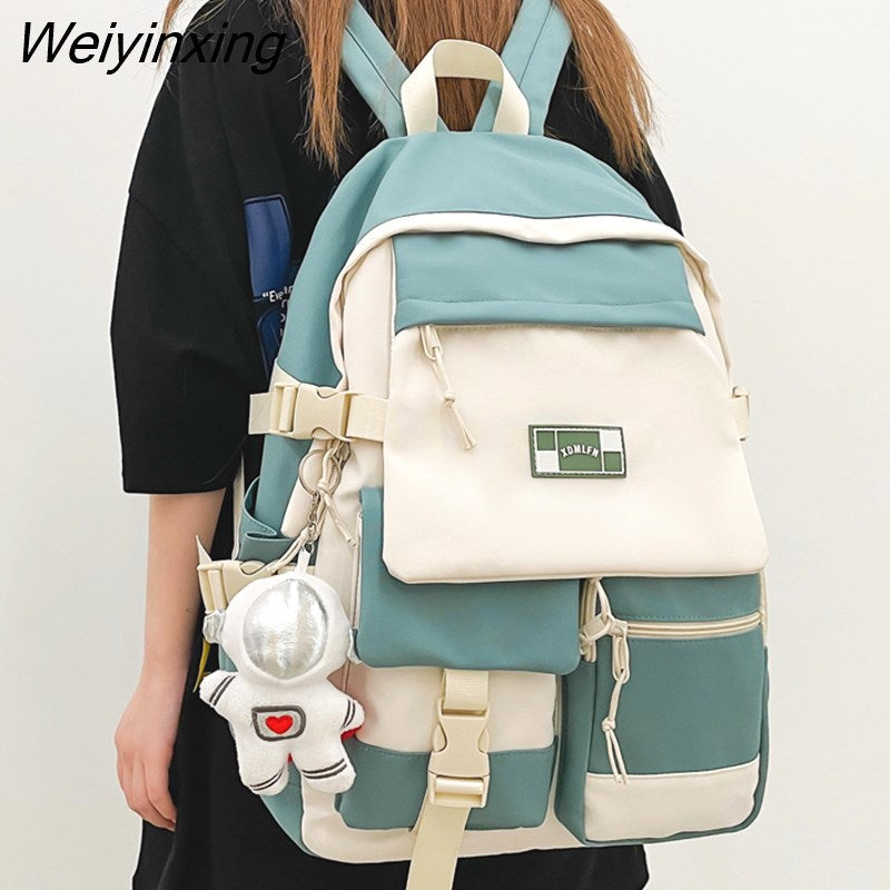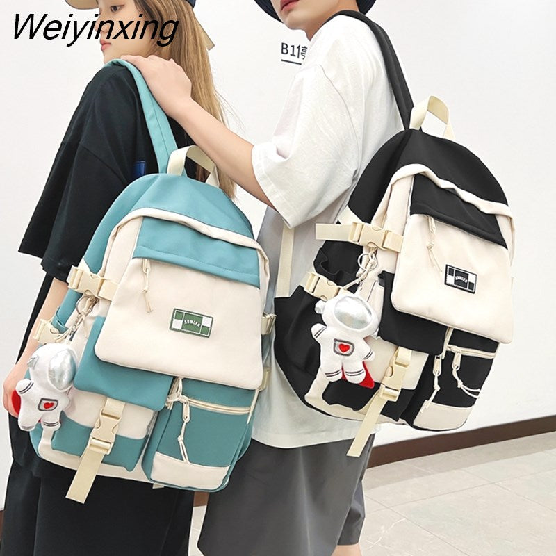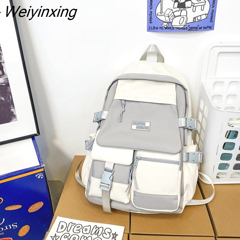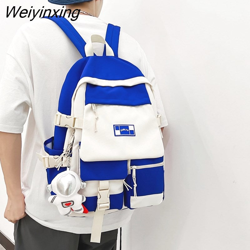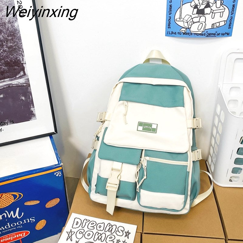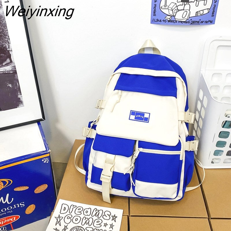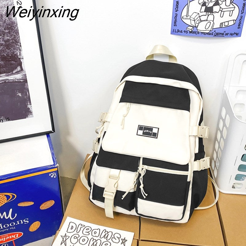 Weiyinxing Fashion Multi-pocket Nylon Backpack Contrast Color Cool Travel Bag Women Backpack Men Big Schoolbag High Quality Bookbag