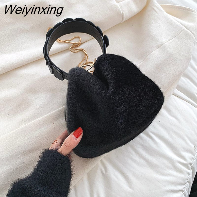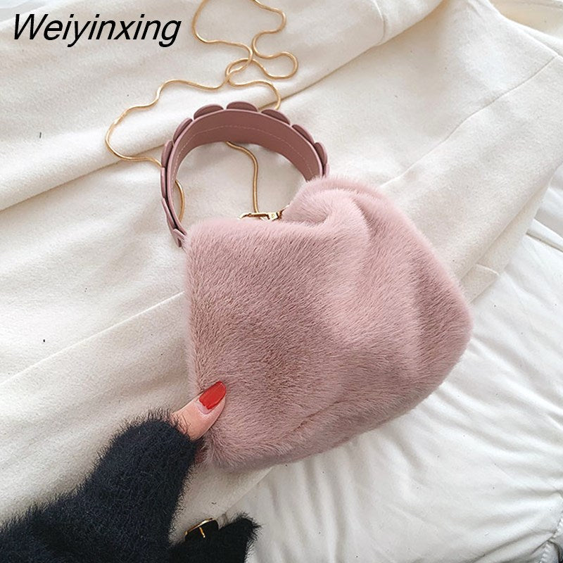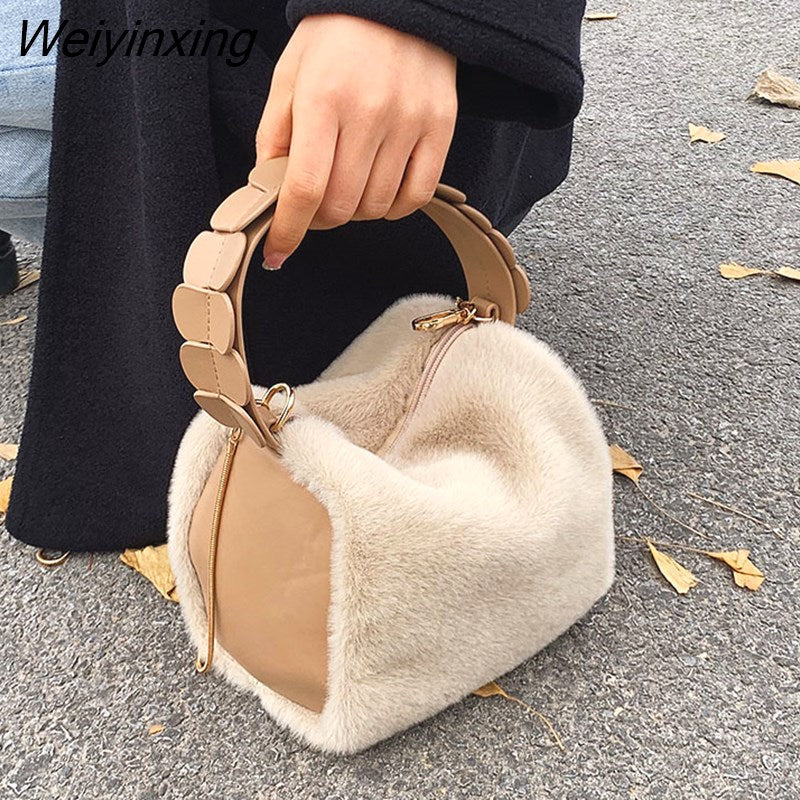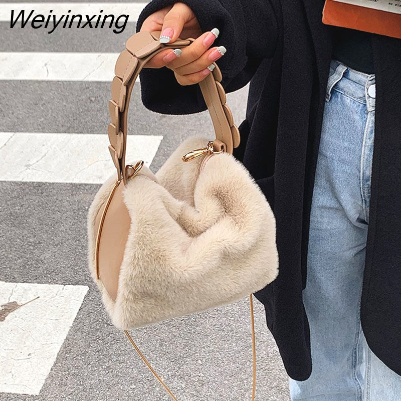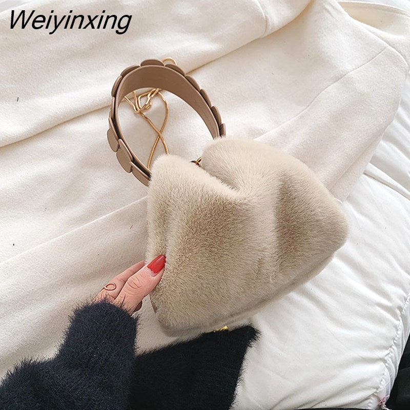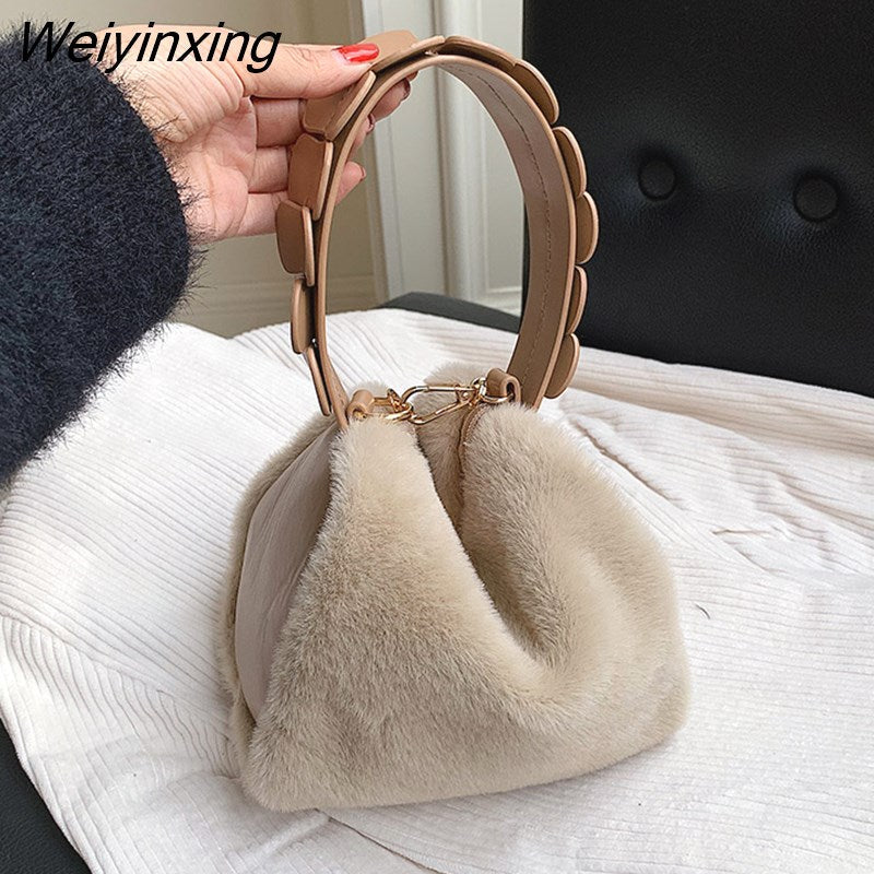 Weiyinxing Faux Fur Crossbody Shoulder Bags with Short Wide Handle for Women 2023 Winter Lady Luxury Travel Handbags and Purses Totes