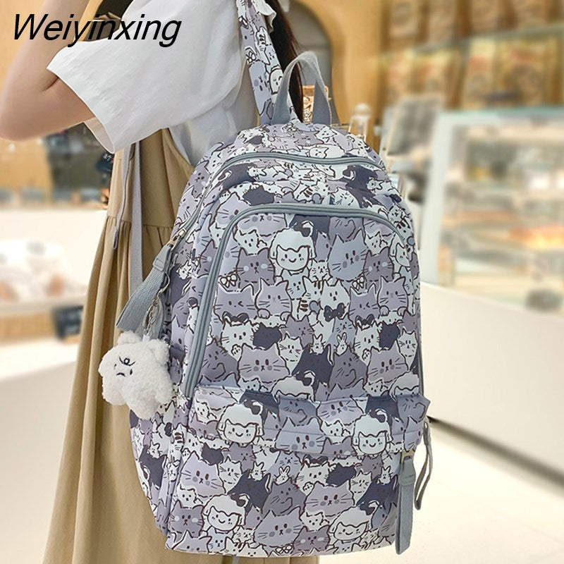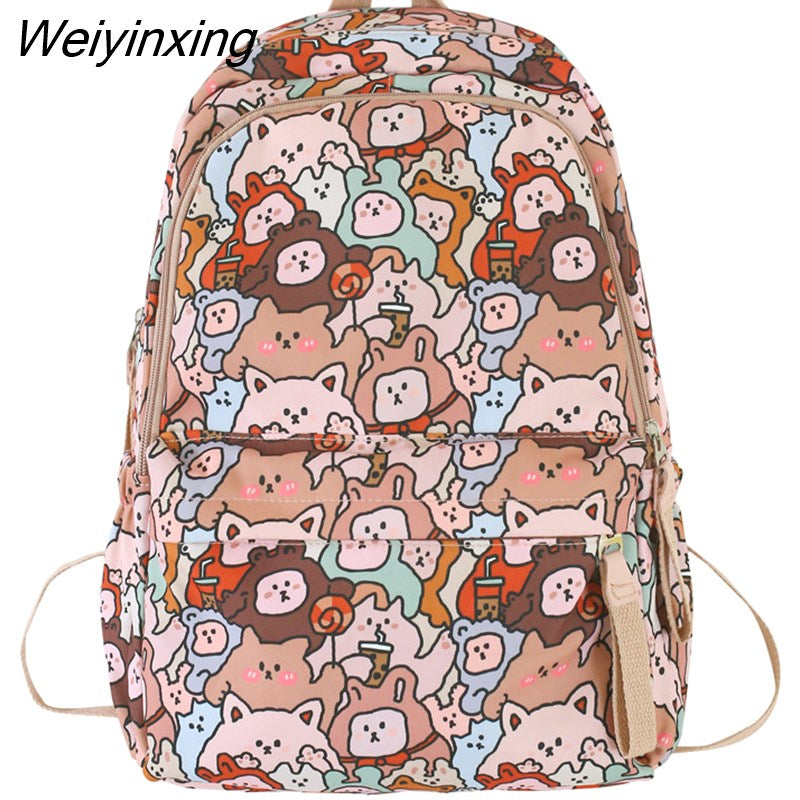Weiyinxing Female Cartoon Print Book Bag Fashion Women Cute Leisure School Bag Girl Graffiti Laptop Backpack Lady Travel College Trendy