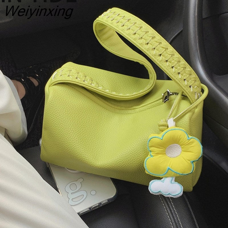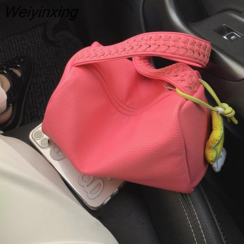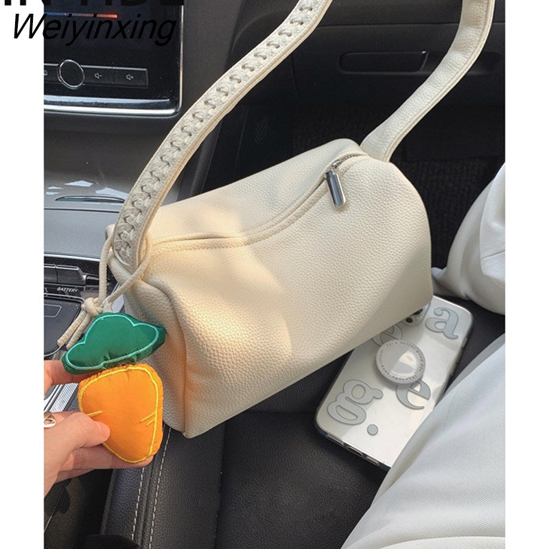 Weiyinxing Female Simple Boston Bag Ladies Fashion Niche Pillow Bag Women’s Split Leather Square Shoulder Underarm Bag Mini Handbag