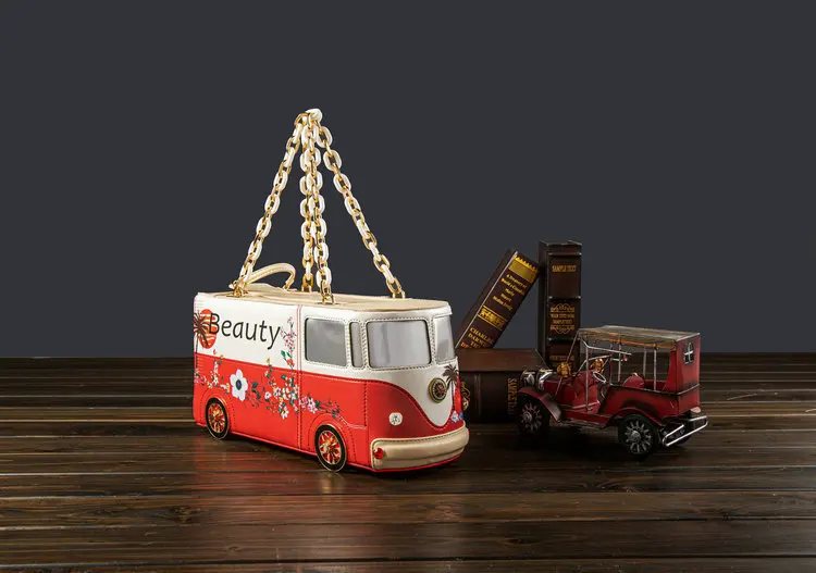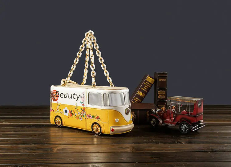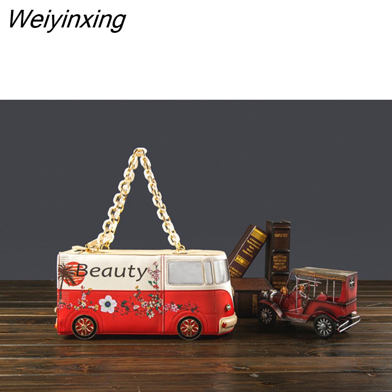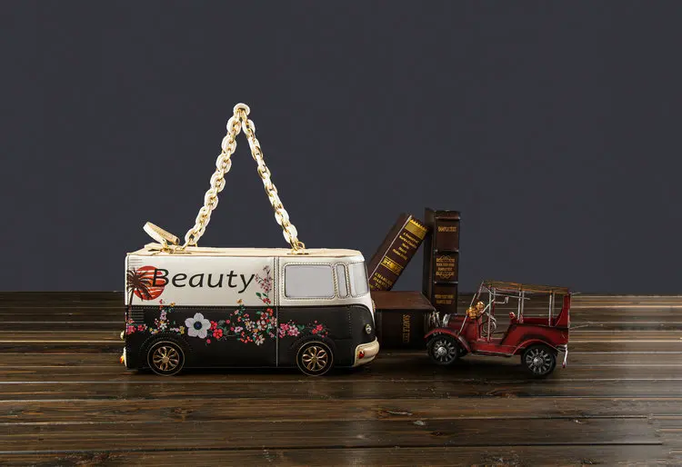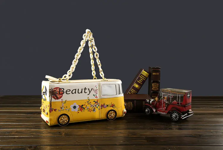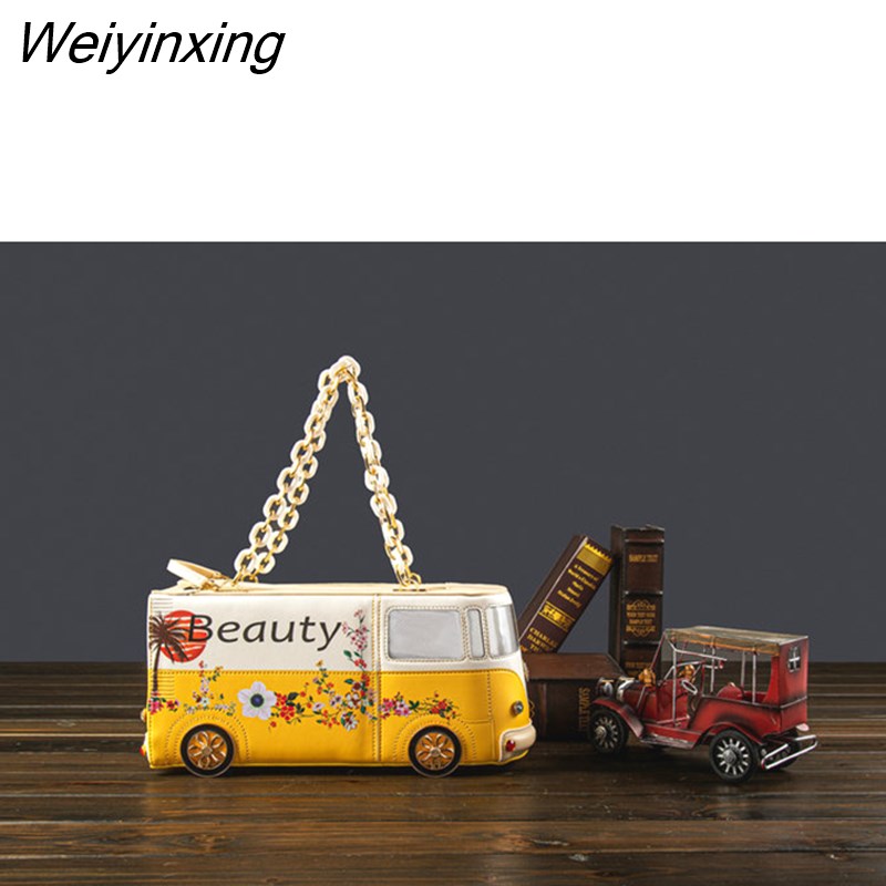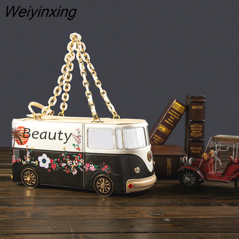 Weiyinxing Flower Bus Design Women Shoulder Bag Luxury Cartoon Printed Handbag and Purse Chains Funny Purse for Women 2023 Clutch