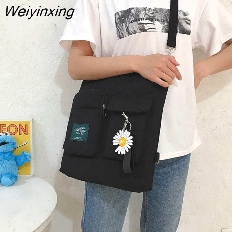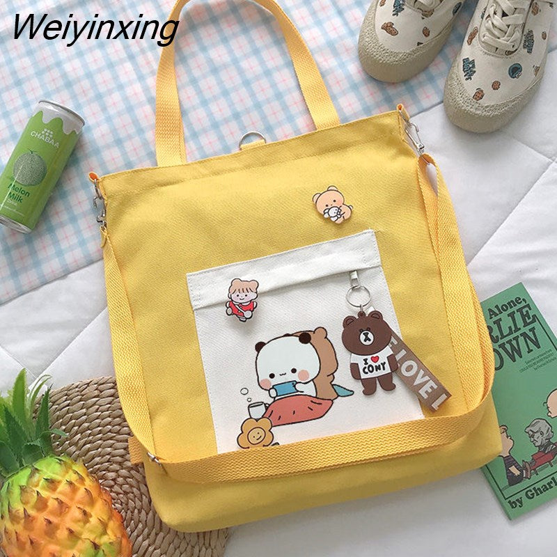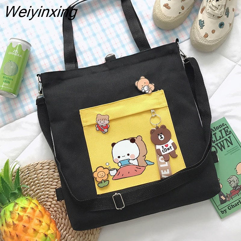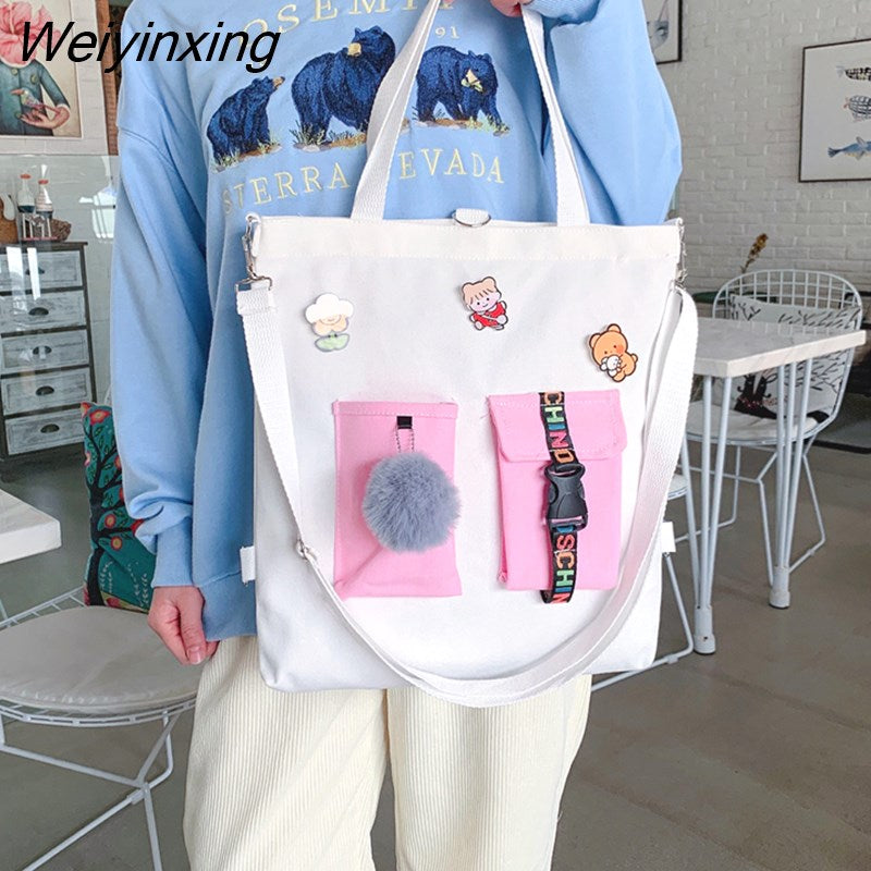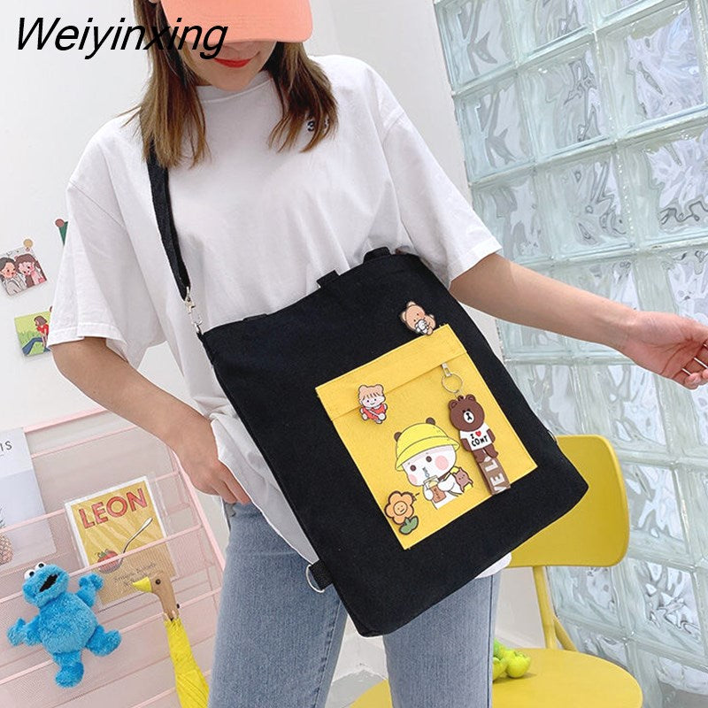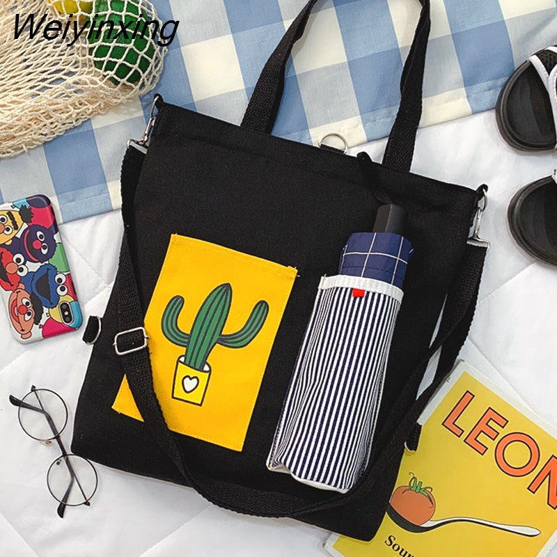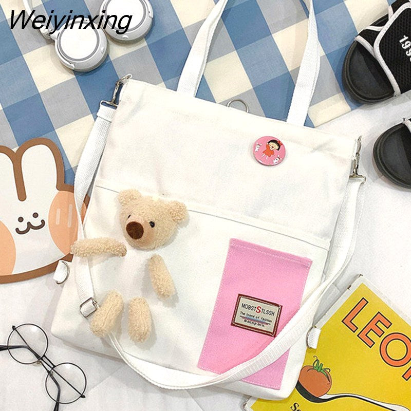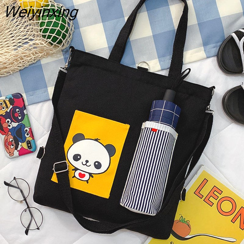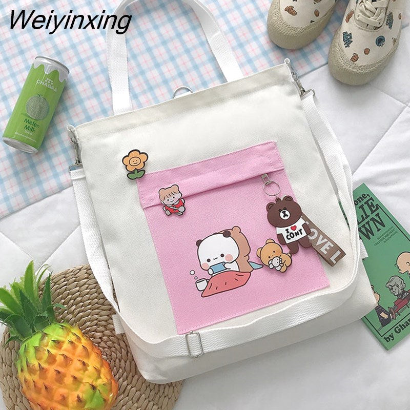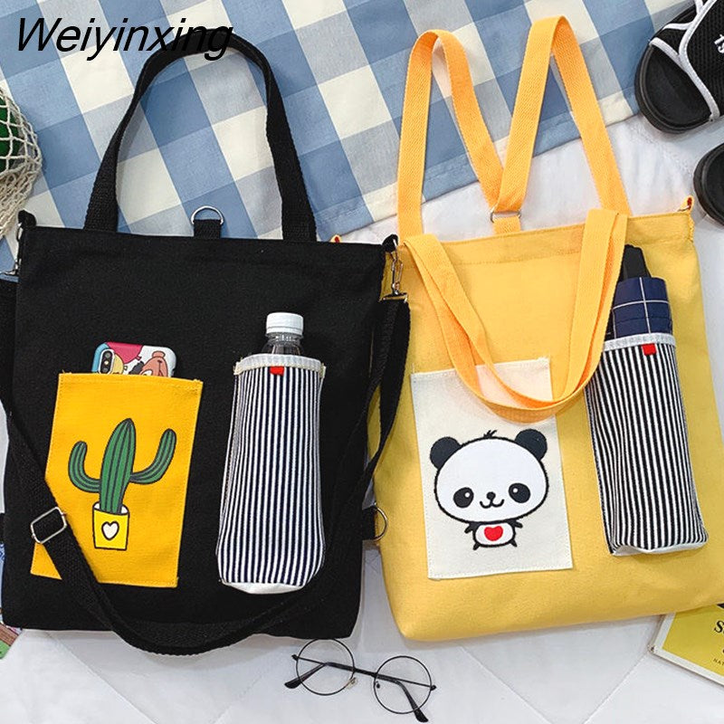 Weiyinxing for Women Canvas Shoulder Bag Reusable Shopping Bags Casual Tote Female Handbag Messenger Bag Harajuku Student Schoolbag