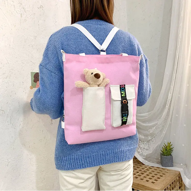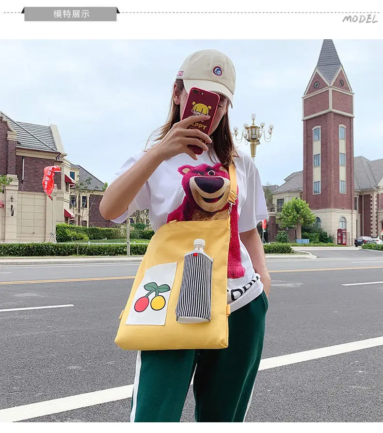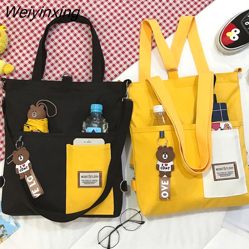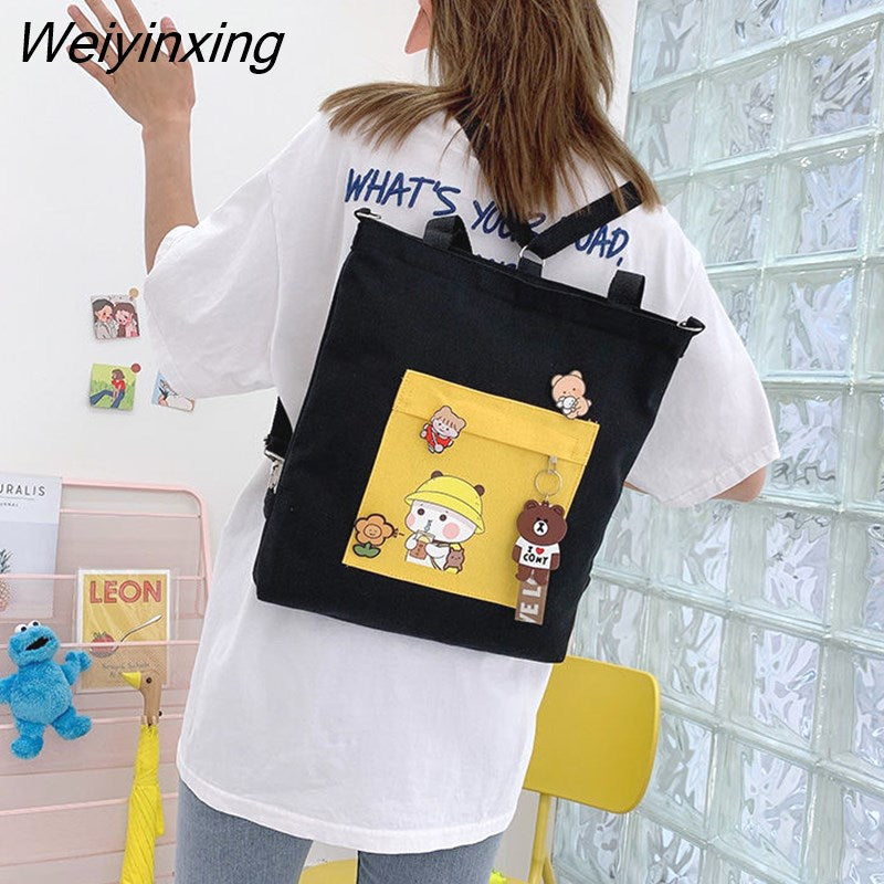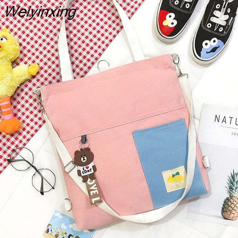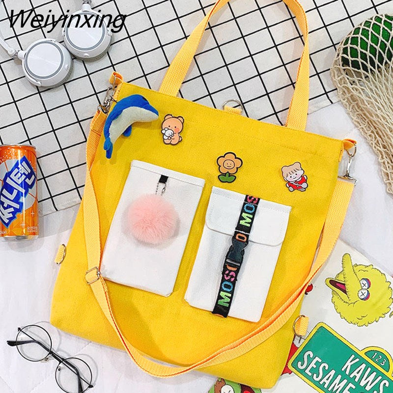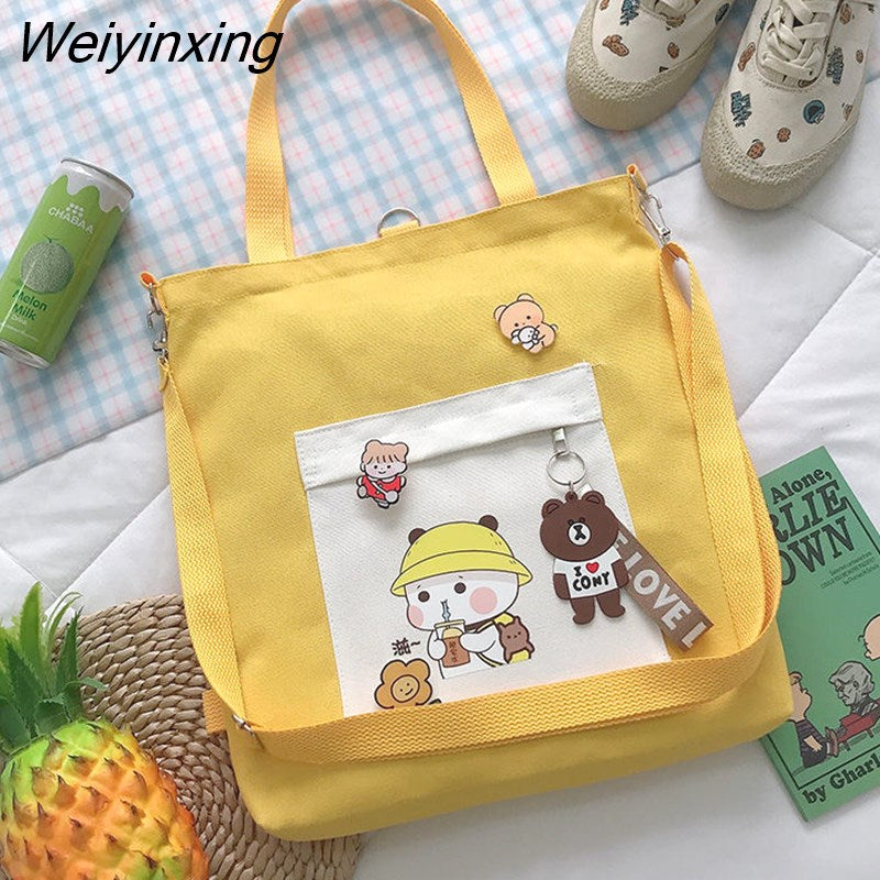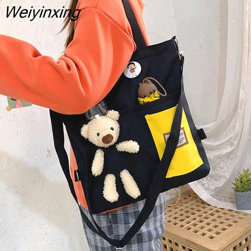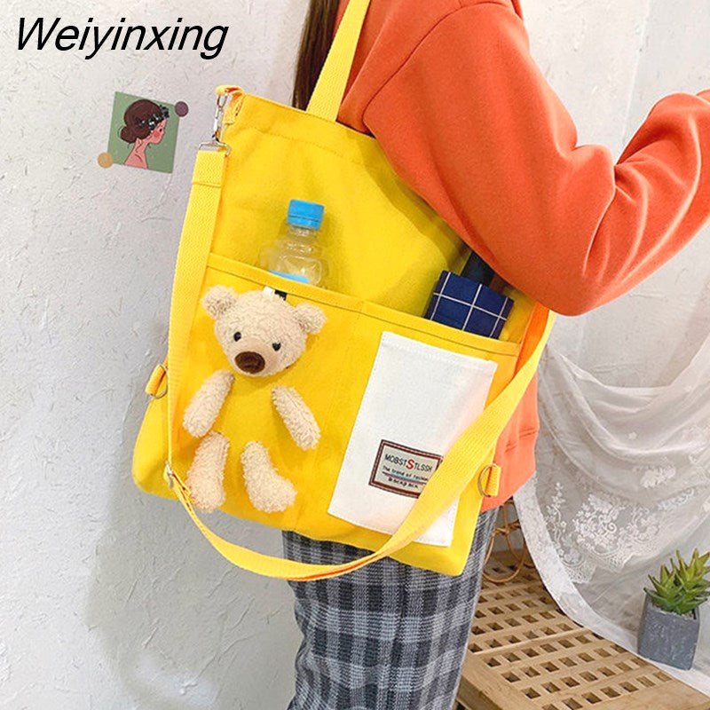 Weiyinxing for Women Canvas Shoulder Bag Reusable Shopping Bags Casual Tote Female Handbag Messenger Bag Harajuku Student Schoolbag