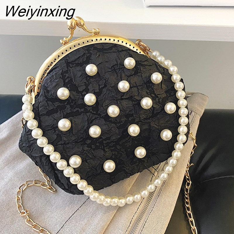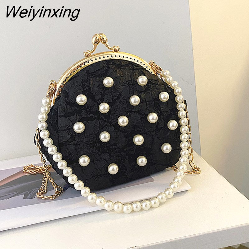 Weiyinxing Frame Luxury Party Woman Corssbody Bags Top Brand Ladys Evening Clutch Purse Fashion Pearled Clip Bag Female Shoulder Bag