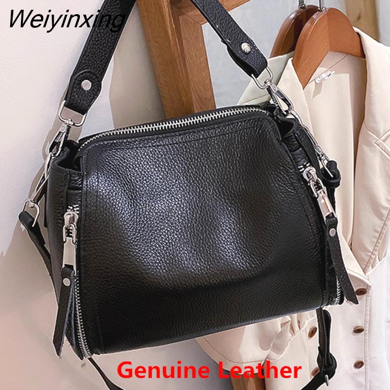 Weiyinxing Genuine Leather Messenger Bags For Women High Capacity Handbags Travel Luxury Cowhide Crossbody Bag Female Shoulder Bag