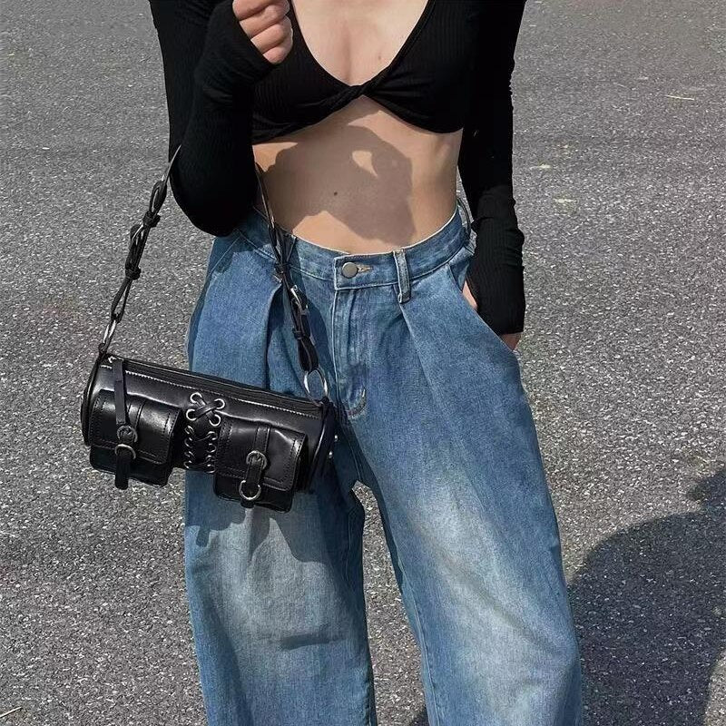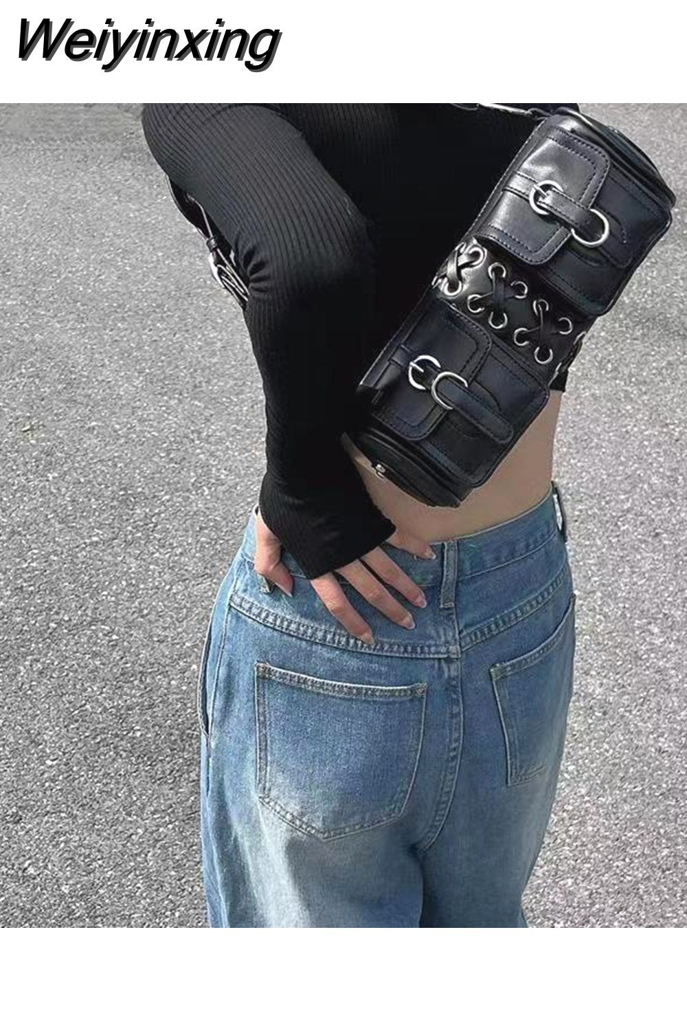Weiyinxing Gothic Y2k Shoulder Bag for Women Harajuku Casual Punk Pu Leather Handbag Designer Black Fashion Female Crossbody Bag Bolsa