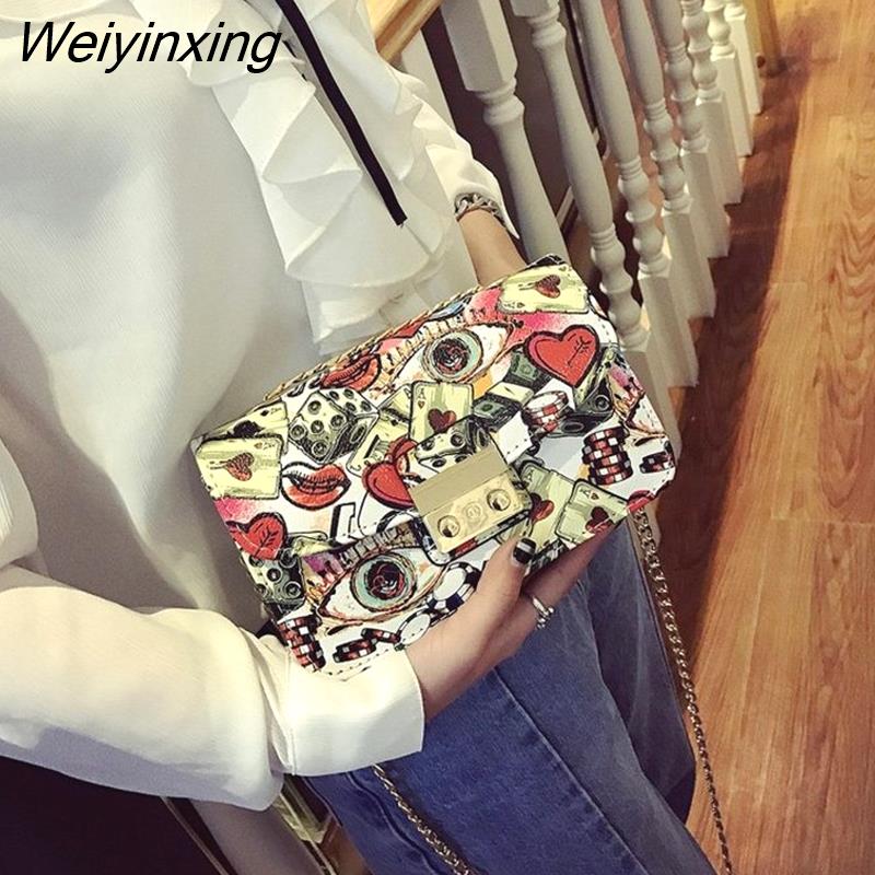 Weiyinxing Graffiti Crossbody Bags for Women Luxury Leisure Shoulder Bags Chain Purses and Handbags Prints Cute Handbag