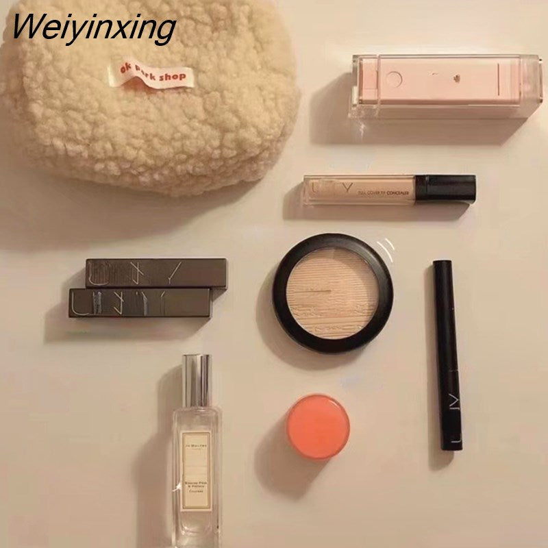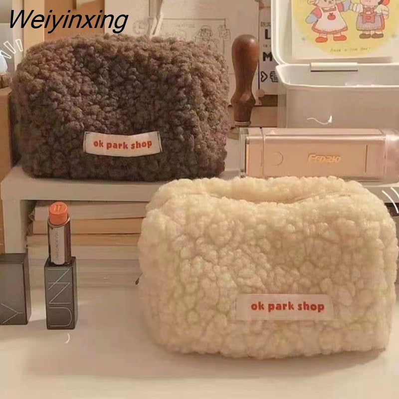 Weiyinxing Hair Cosmetic Bag Plush Storage Bag Cute Stationery Bag Large Capacity Stationery Cosmetic Storage Bag