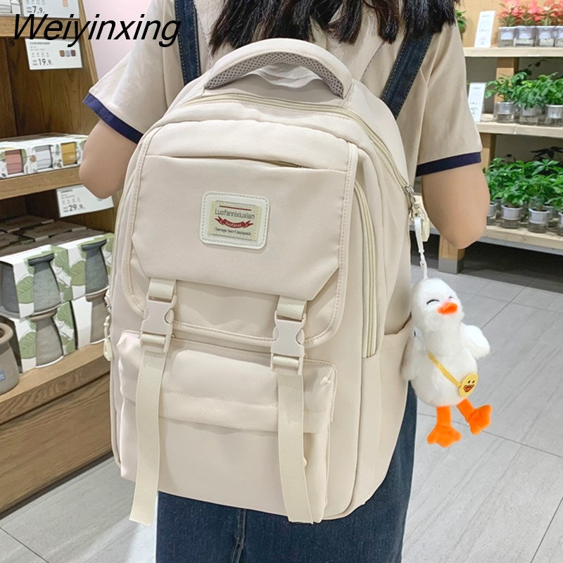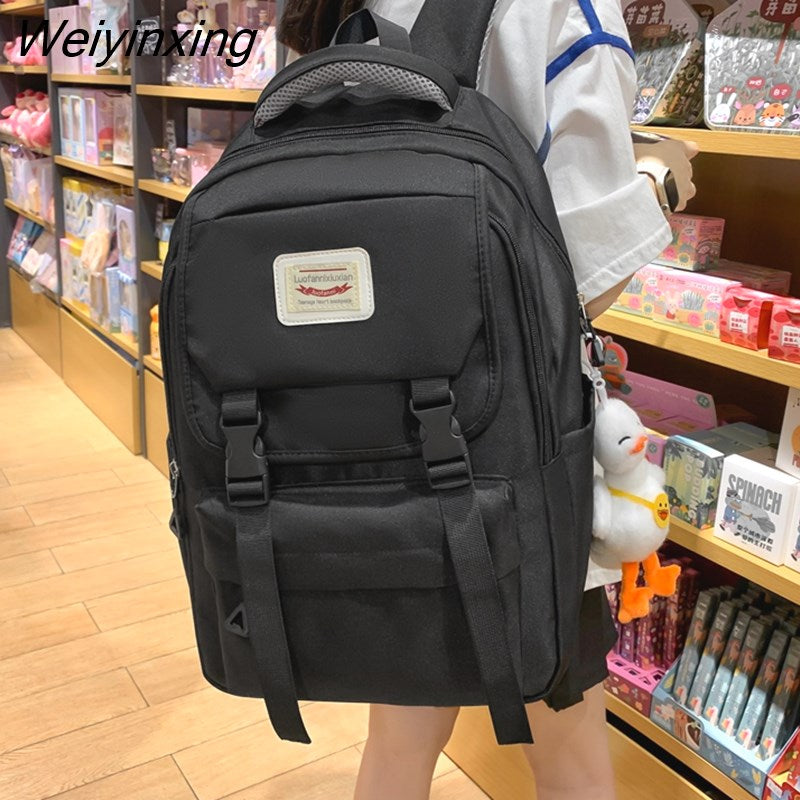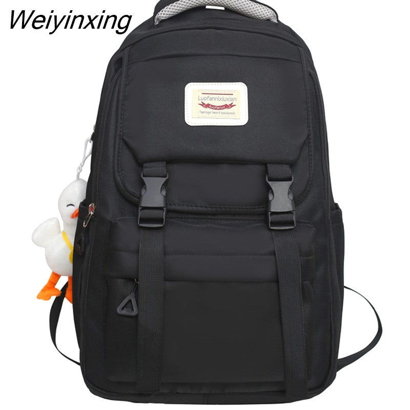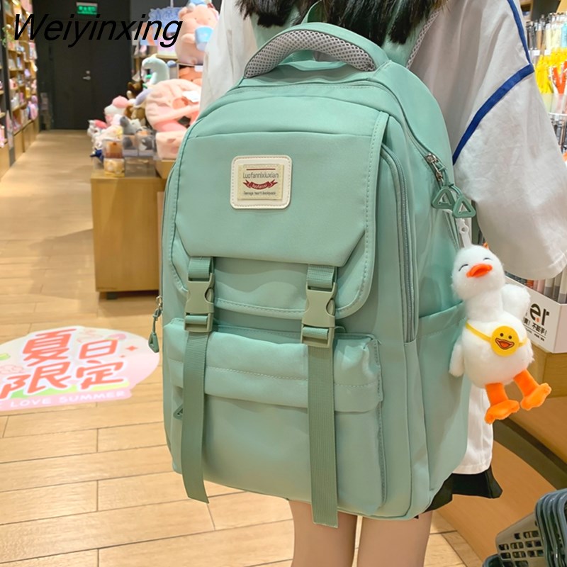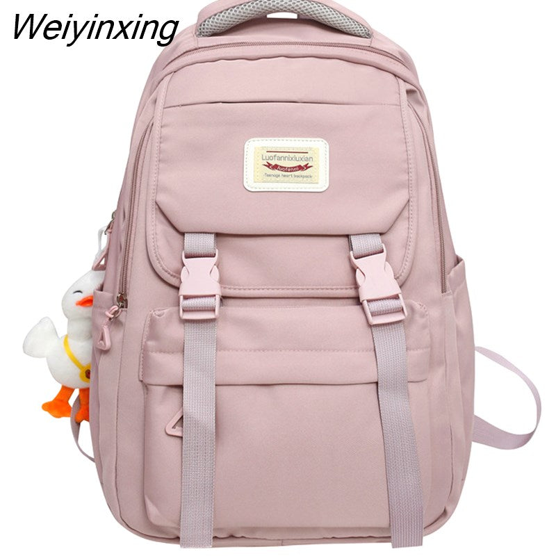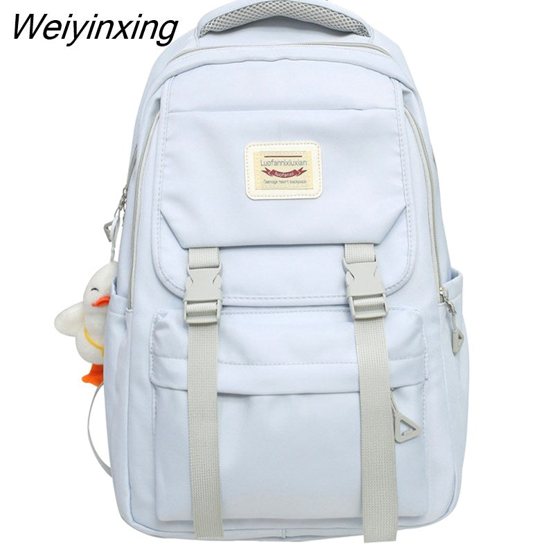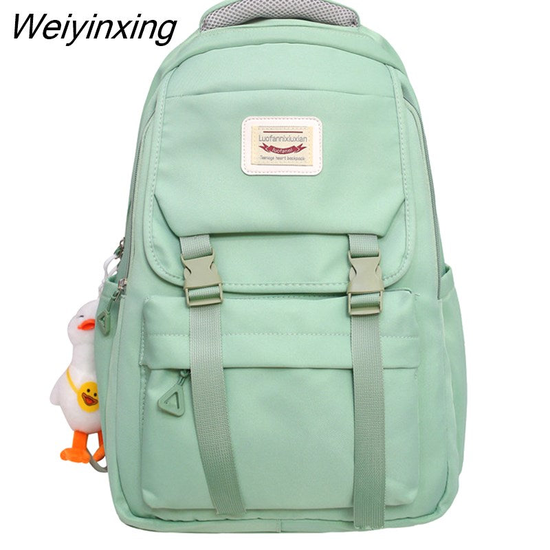 Weiyinxing Harajuku Girl Solid Color Women Backpack Korean Japanese Fashion Female Students Schoolbag Waterproof Nylon Travel Bag