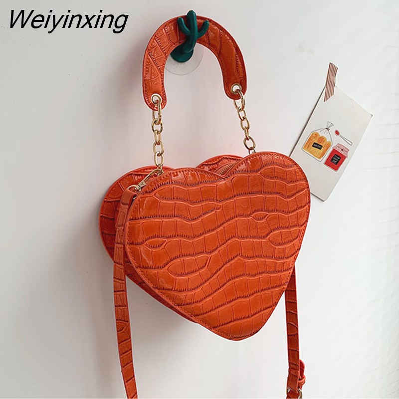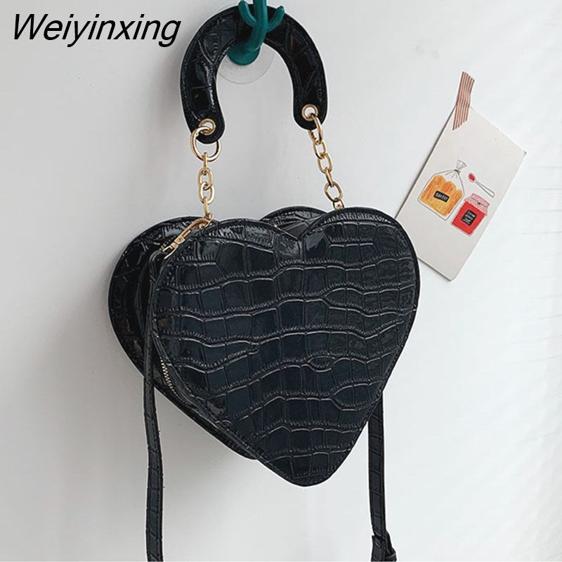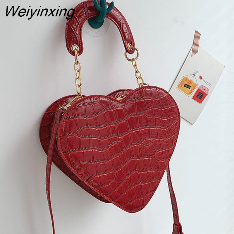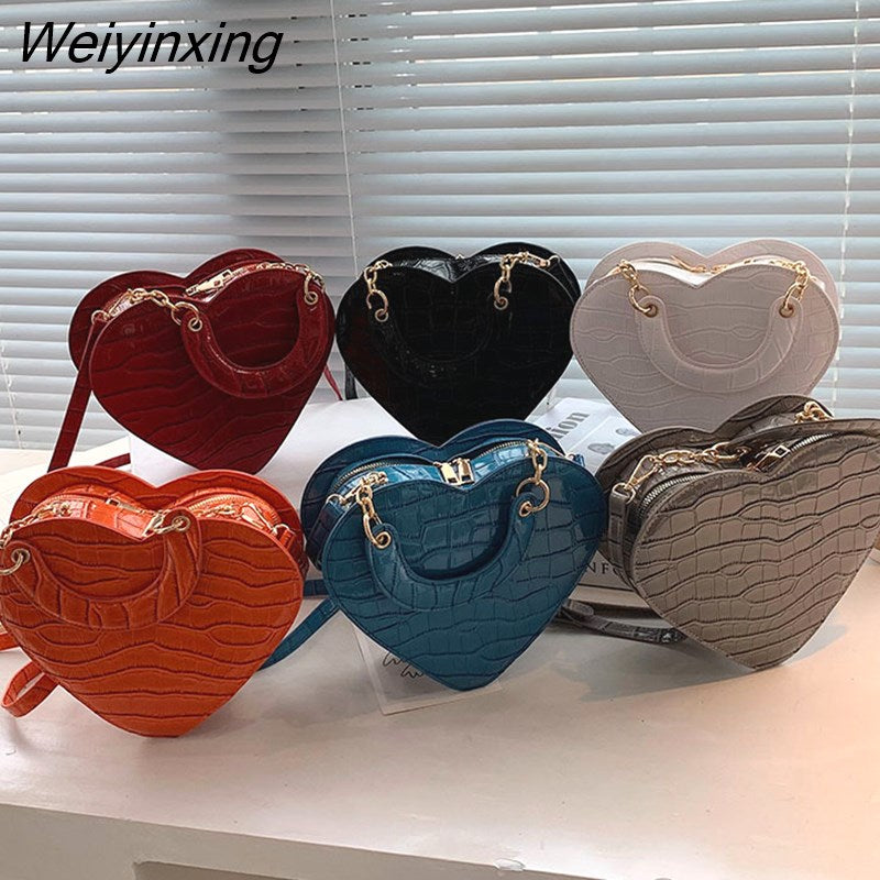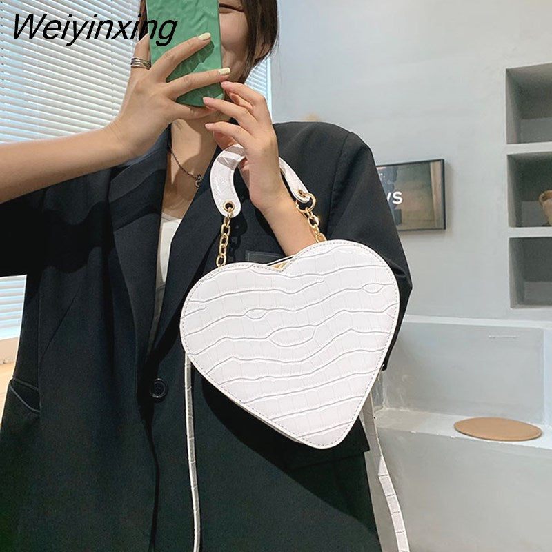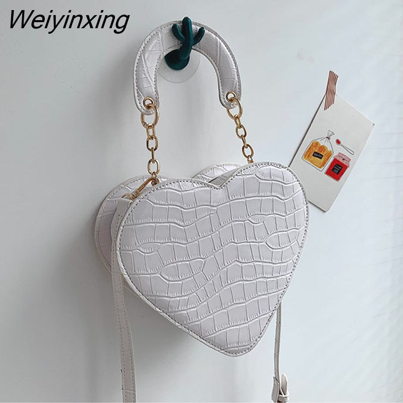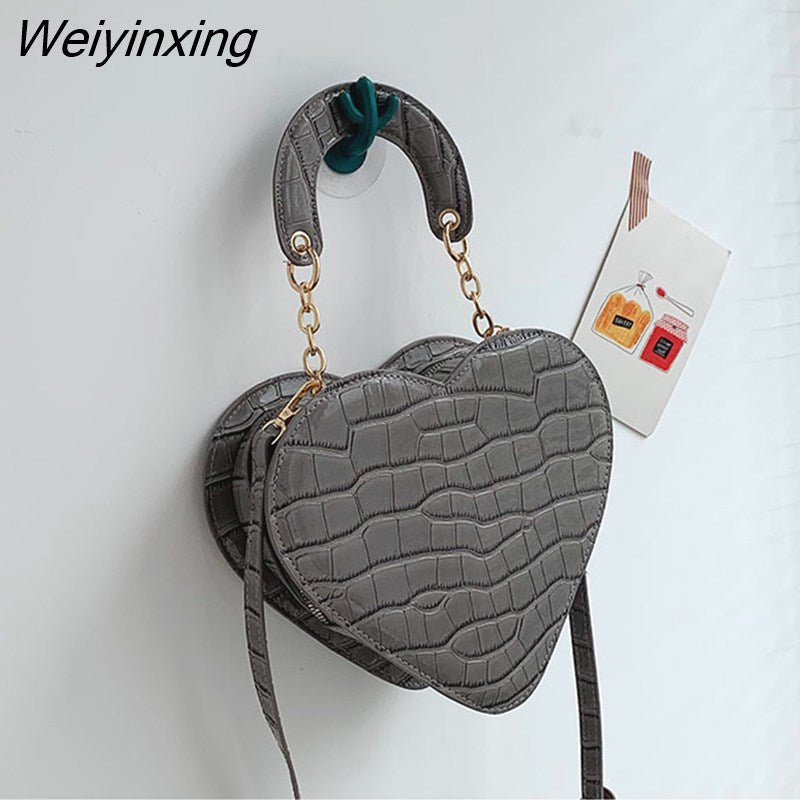 Weiyinxing Heart Tote Bag For Women 2023 Stone Pattern PU Leather Crossbody Bags Female Small Shoulder Bags Cute Purse Handbags