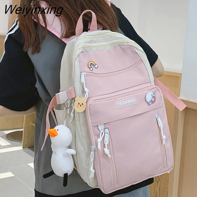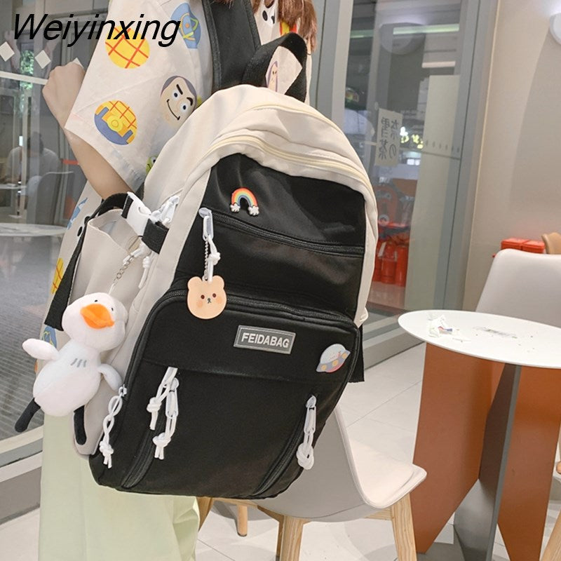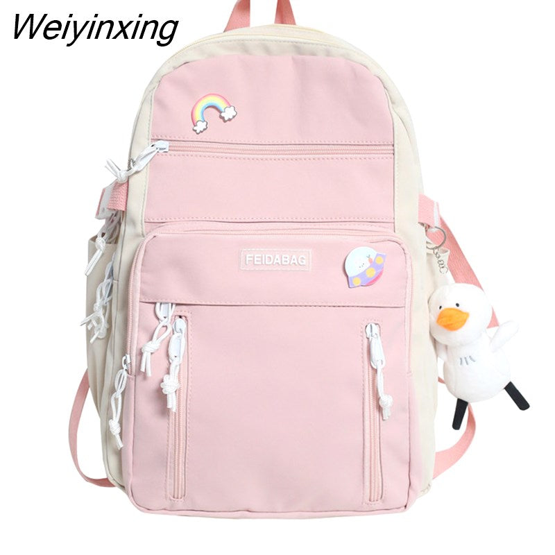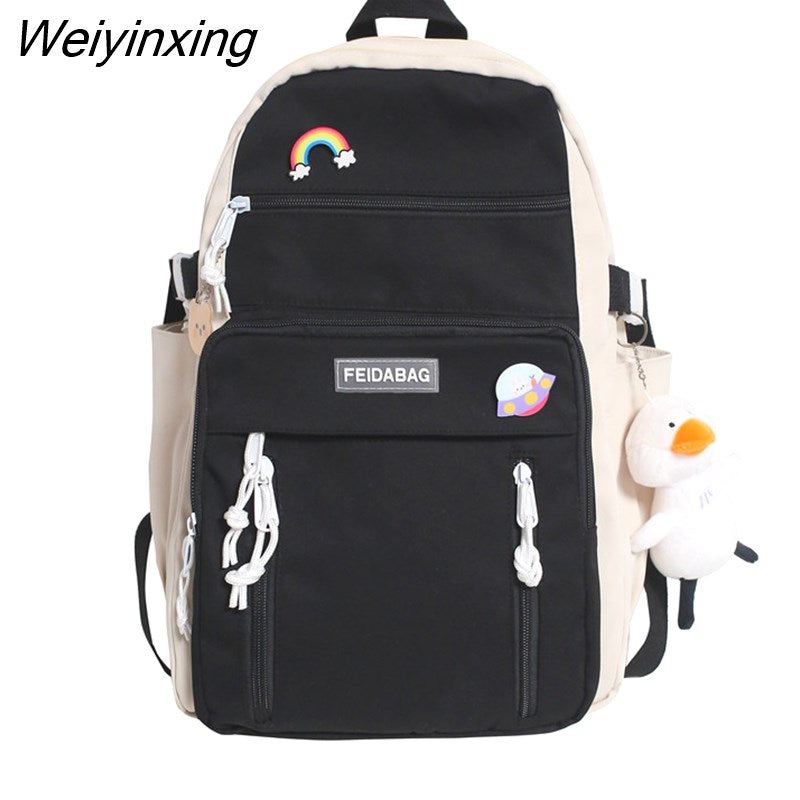 Weiyinxing High Capacity Fashion Big Student Backpack Badge Rucksack Girls School Bag Women Backpack Female Cute Leisure Travel Mochila