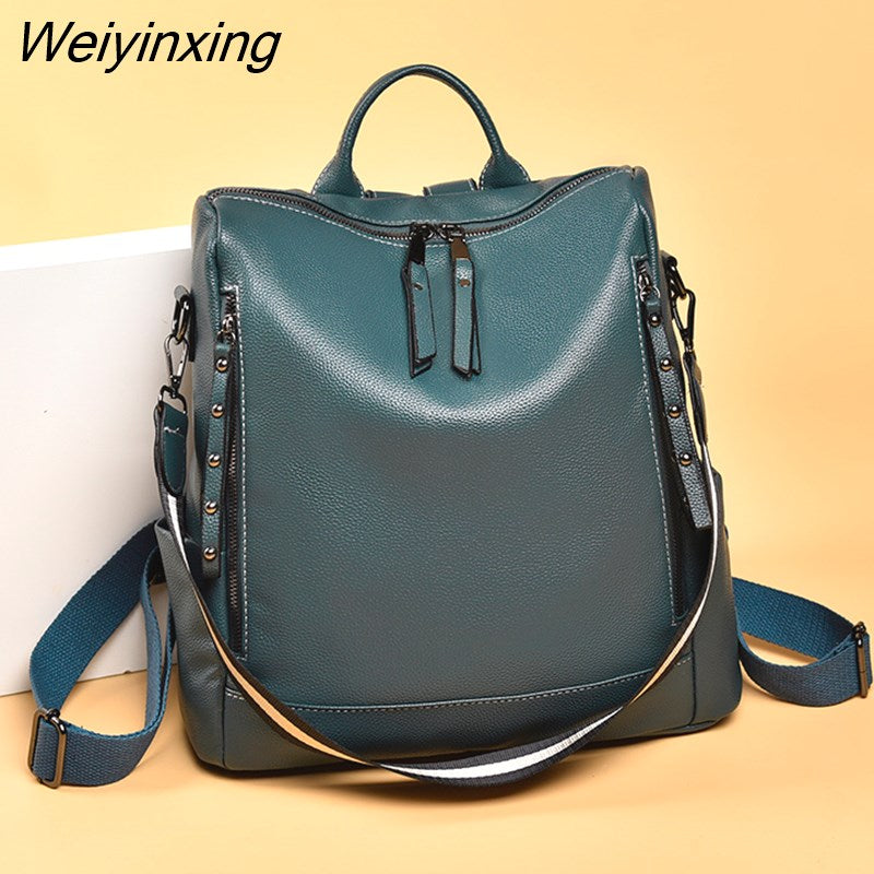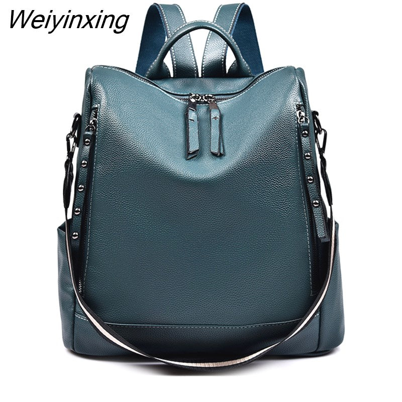 Weiyinxing High Quality Soft Leather Backpack Designer Women Large Capacity Backpack For School Teenagers Girls Fashion Travel Backpack