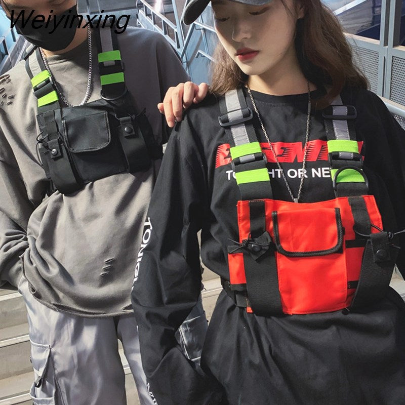 Weiyinxing Hip Hop Tactical Canvas Chest Bags for Men Women Vest Satchel Pouch Reflection Shoulder Bag Oxford Cross Bags Bolsas