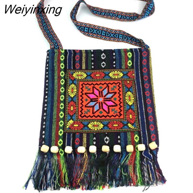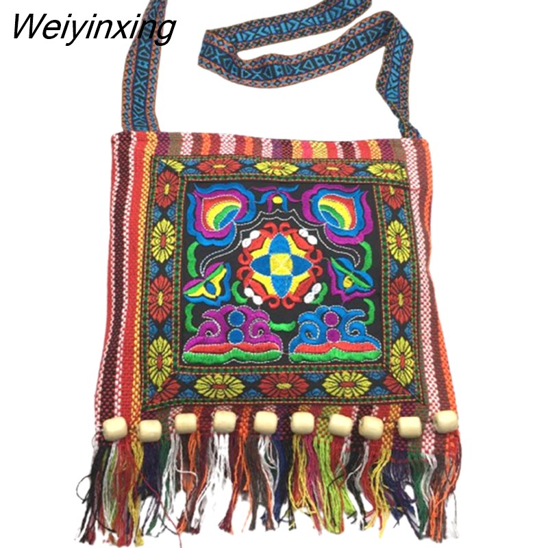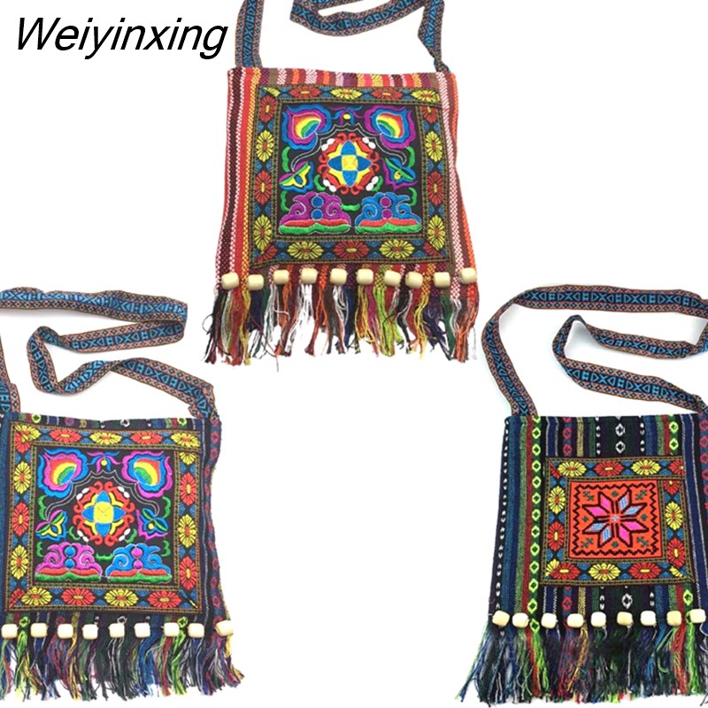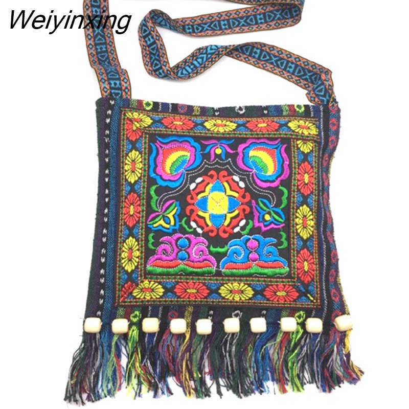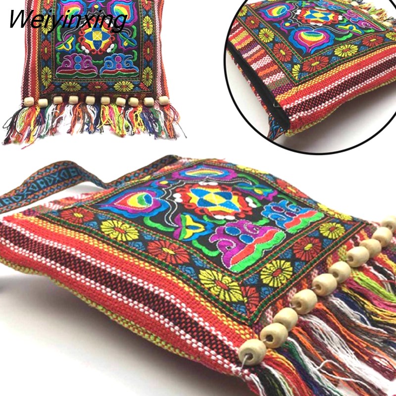 Weiyinxing Hmong Tribal Ethnic Thai Indian Boho Shoulder Bag Message Bag for Women Embroidery Tapestry Tote Messenger