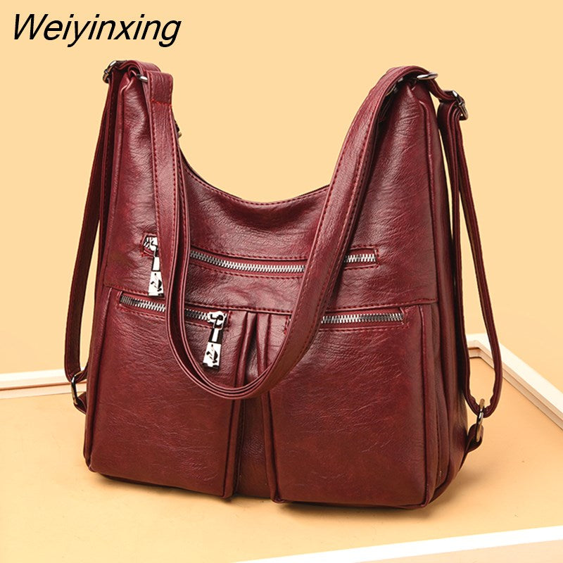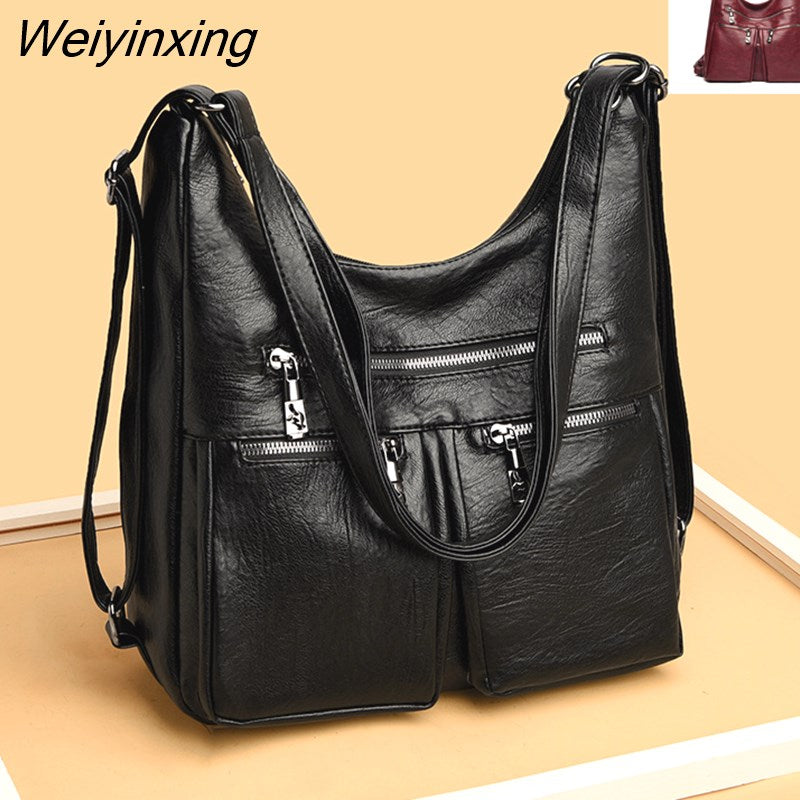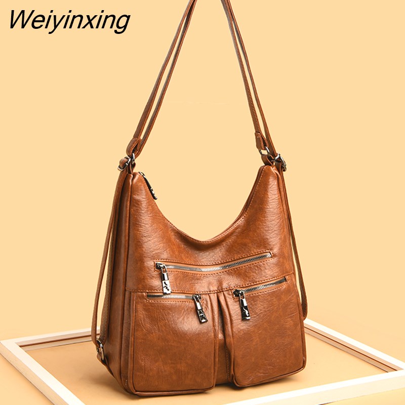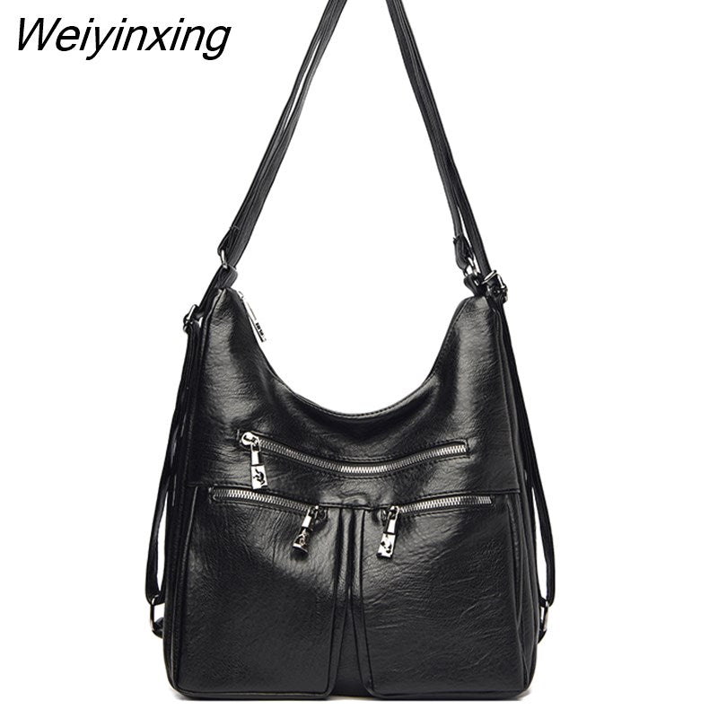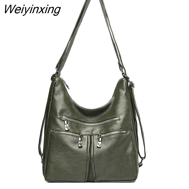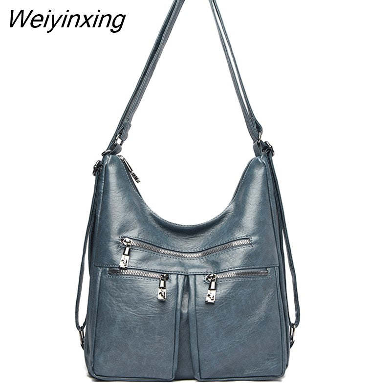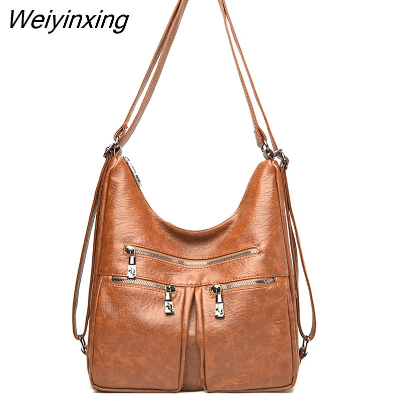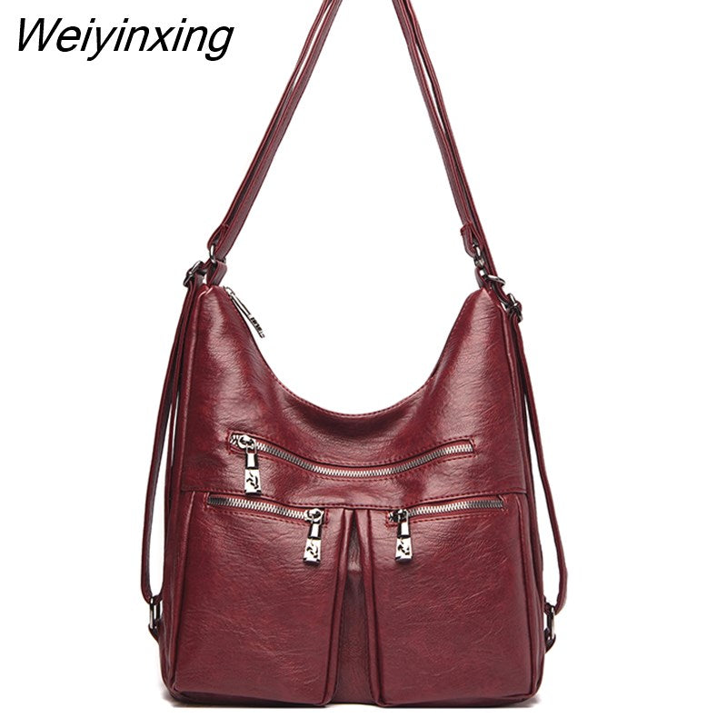 Weiyinxing In 1 Women Back Pack Bagpack Vintage Women Bag Soft Pu Leather Ladies Casual Tote Designer Shoulder Bags Women's Handbags Sac