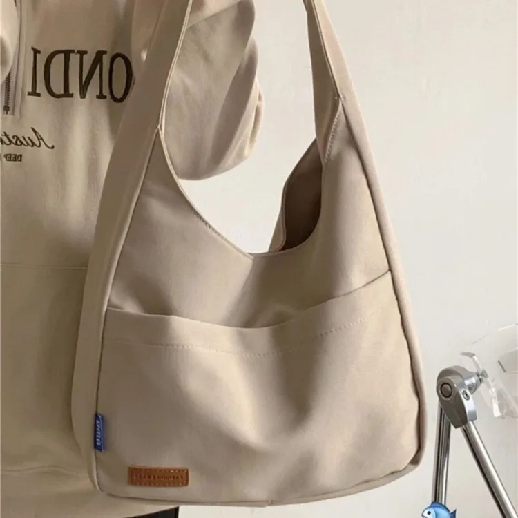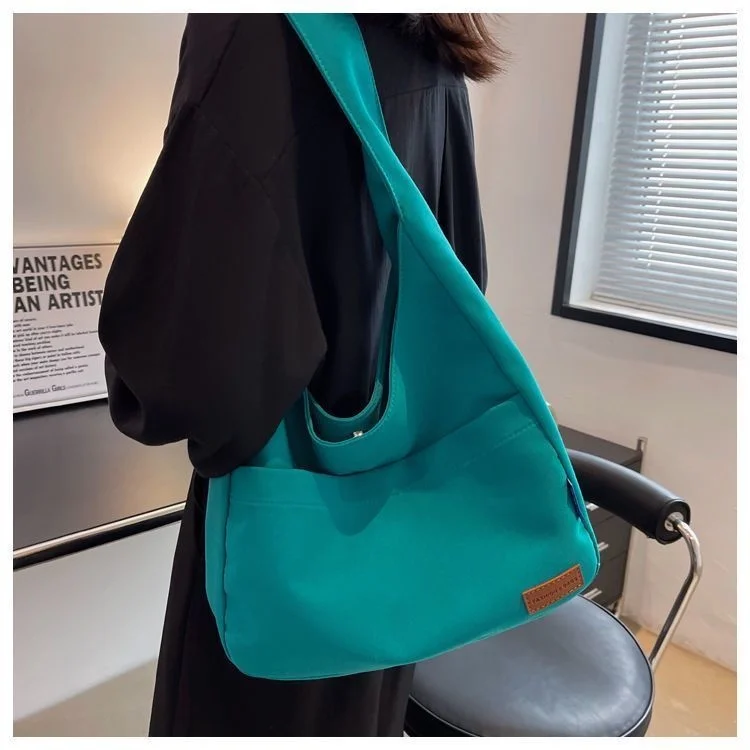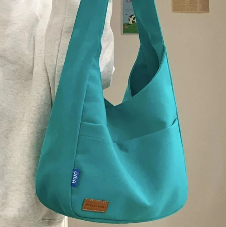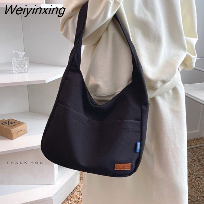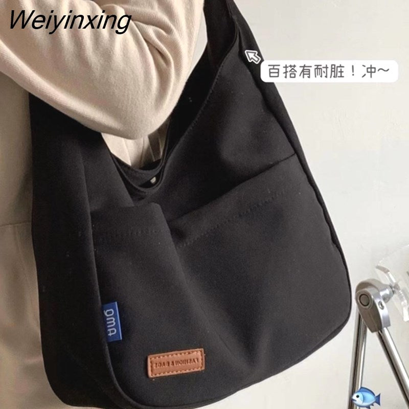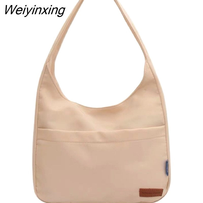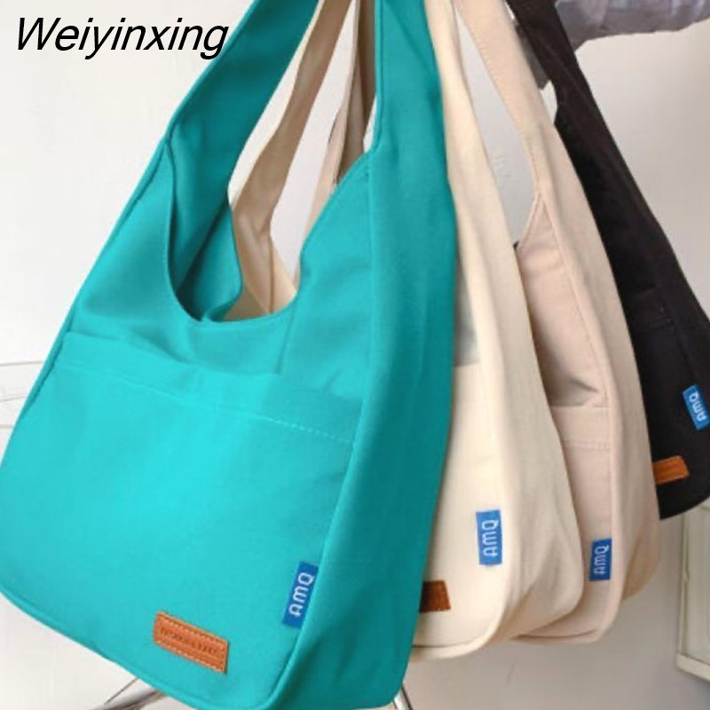 Weiyinxing Ins Solid Color Simple Bag Hand Bag College Student Class Shoulder Bag Large Capacity Tote Bag