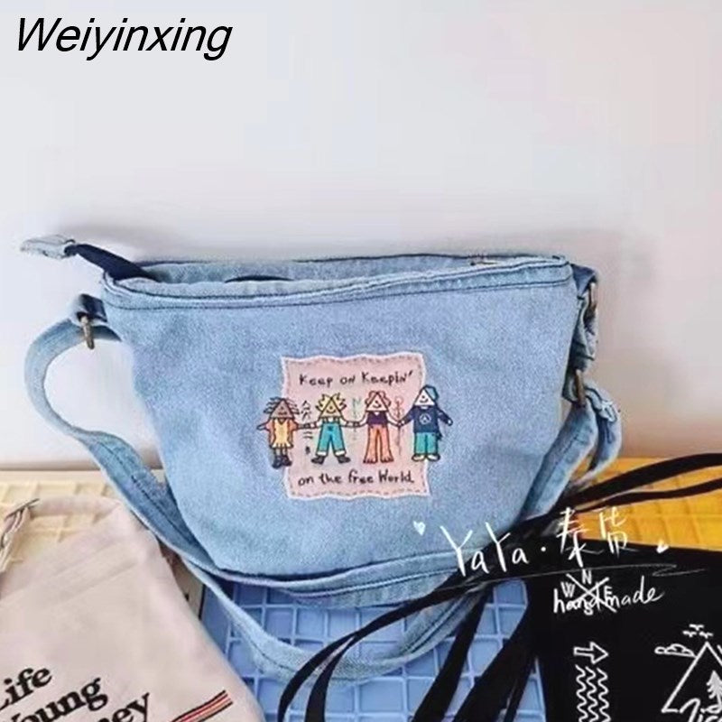 Weiyinxing Japanese Cartoon Kawaii Cute Little Man Denim Bag High Capacity Messenger Bag Women's Bag Handbag Storage Bag Satchels