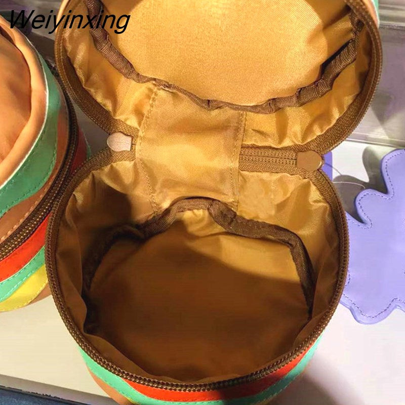 Weiyinxing Jcartoon Hamburger Kawaii Food Bucket Bag Portable Cosmetic Bag Storage Bag High Capacity Pu Leather Waterproof Women Bag