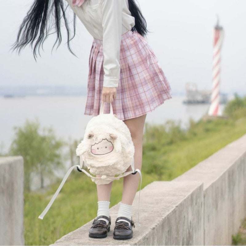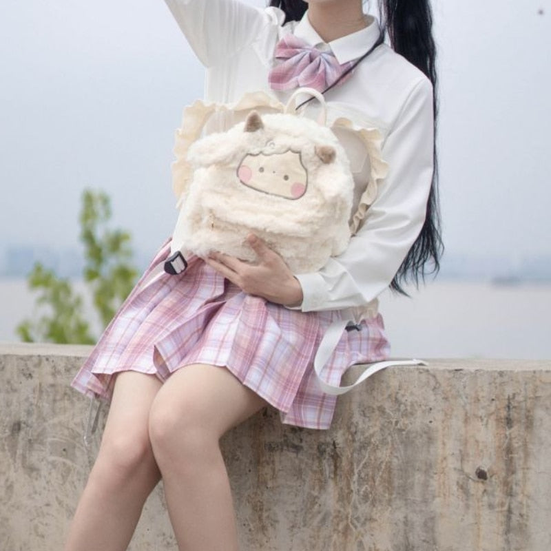 Weiyinxing Jk Casual Backpacks for Women Soft Plush Cute Lolita Female Bag 2023 Trend Kawaii Cartoon Sheep Designer School Backpack