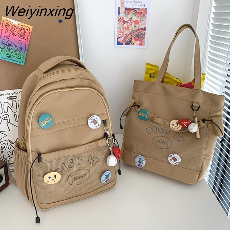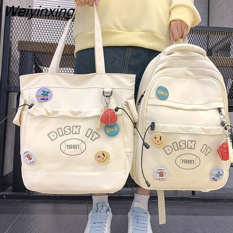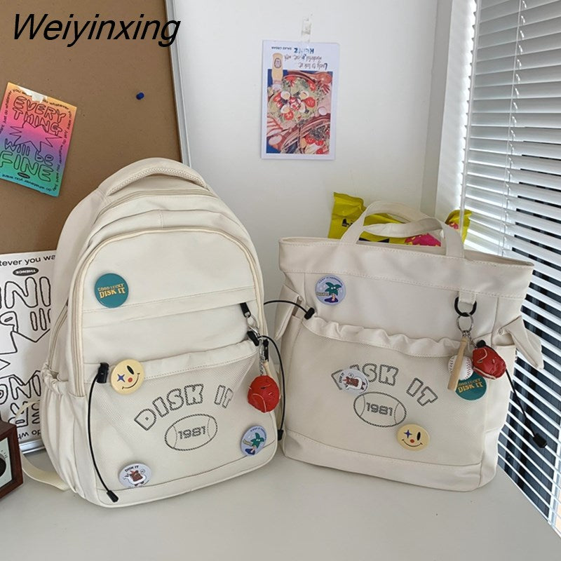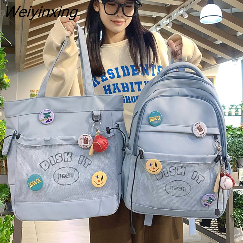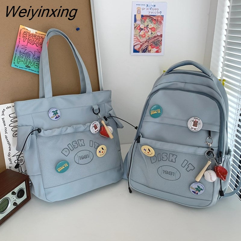 Weiyinxing Kawaii Letter Printing Women Backpack Fashion Cute Girl Two Piece School Bag Set Nylon Waterproof Travel Bag Book Pack Cool