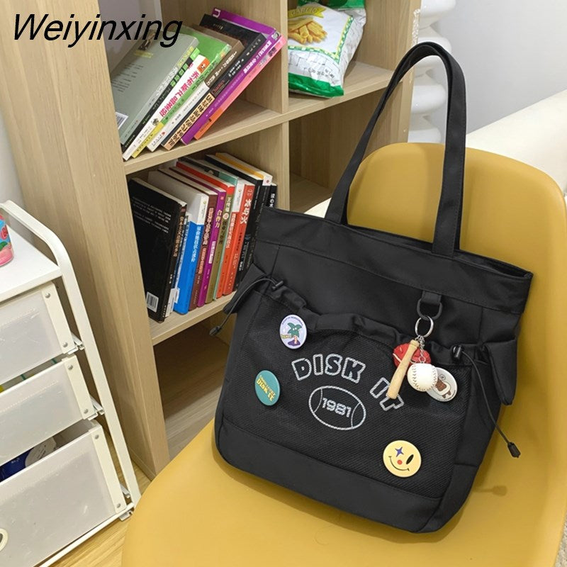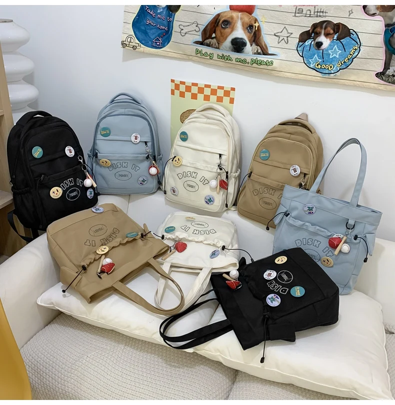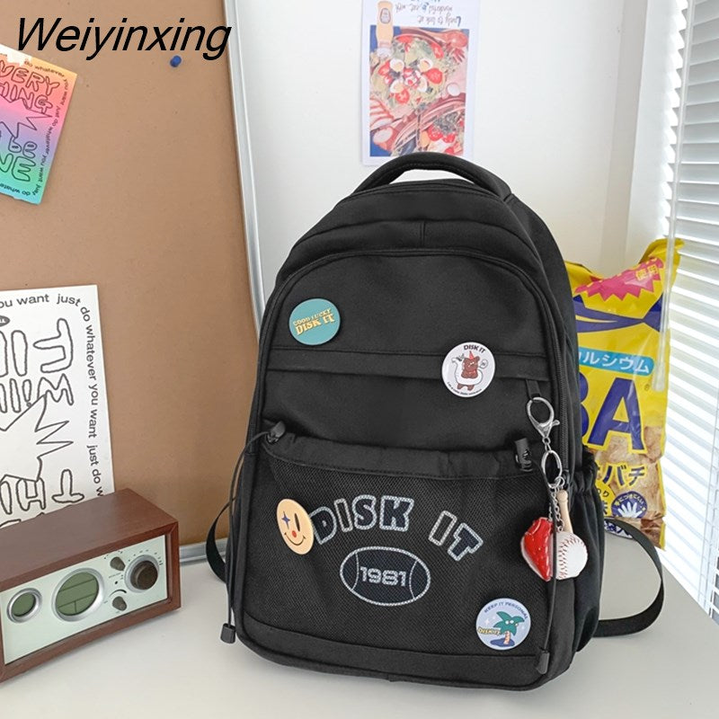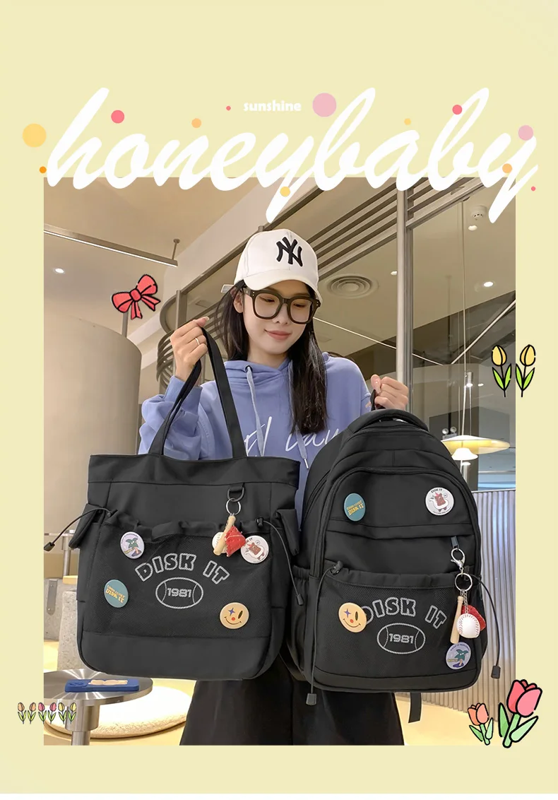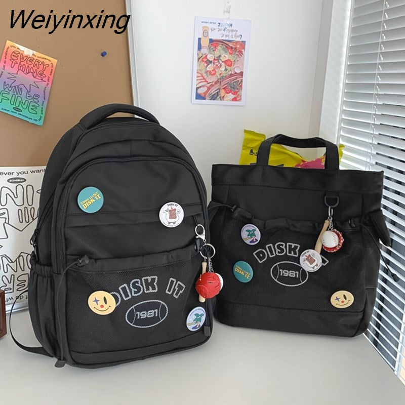 Weiyinxing Kawaii Letter Printing Women Backpack Fashion Cute Girl Two Piece School Bag Set Nylon Waterproof Travel Bag Book Pack Cool