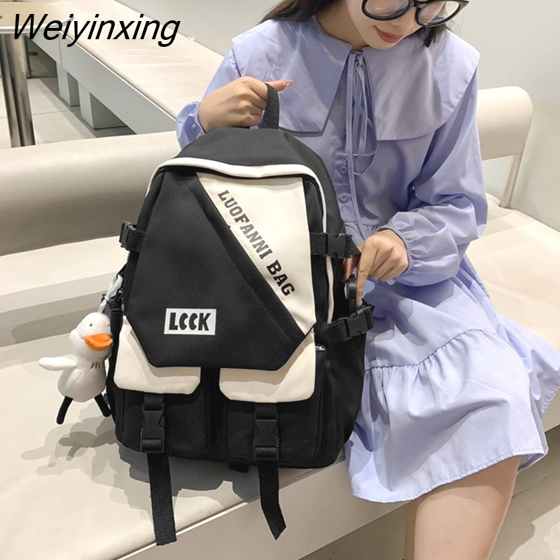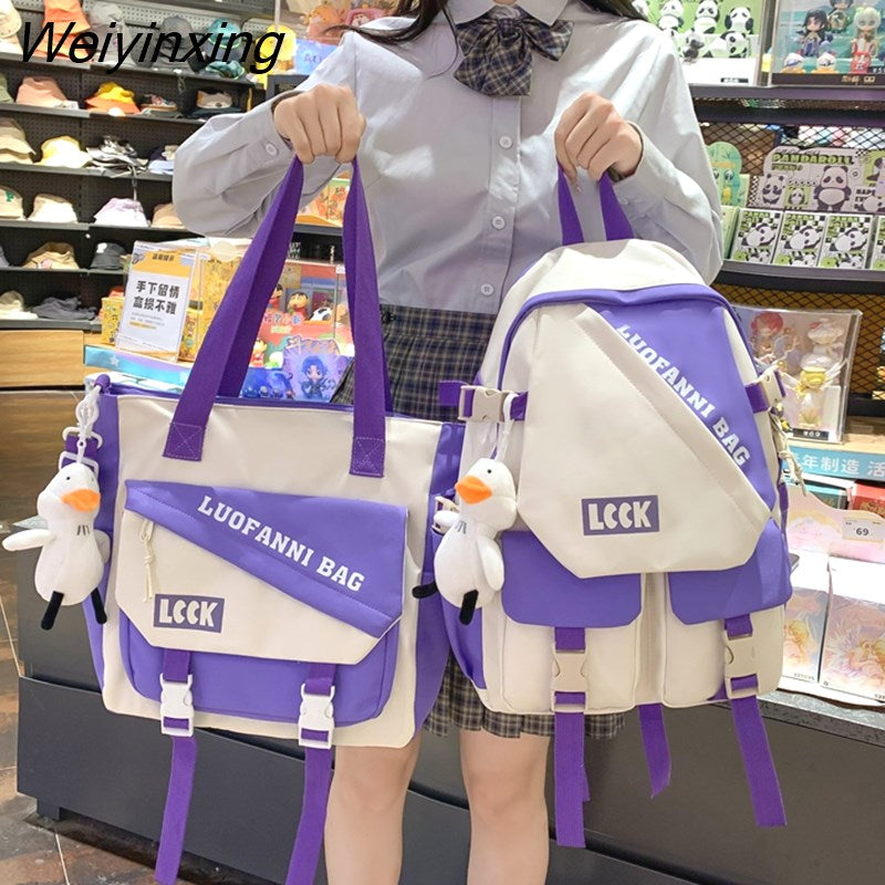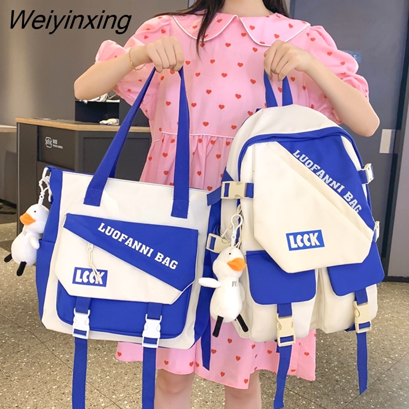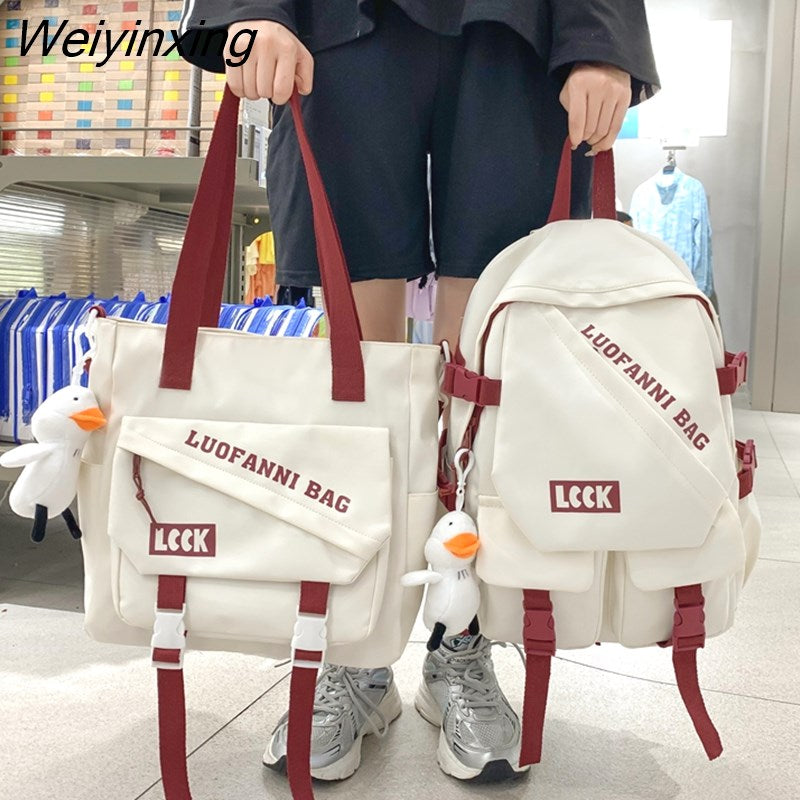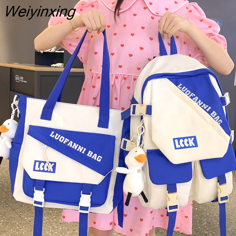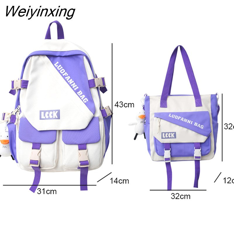 Weiyinxing Kawaii Letter Printing Women Backpack Fashion Waterproof Nylon Set Bag Rucksack Cool Schoolbag for Teen Girls Travel Mochila