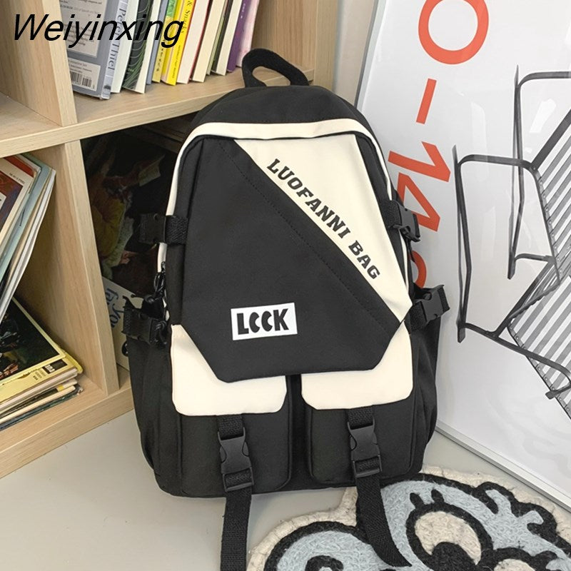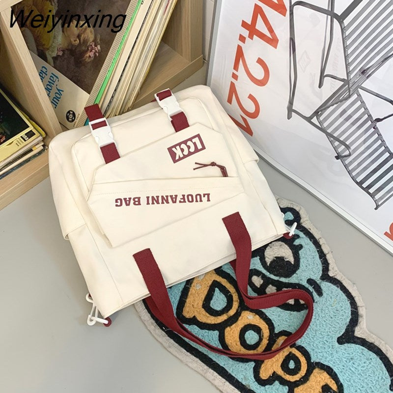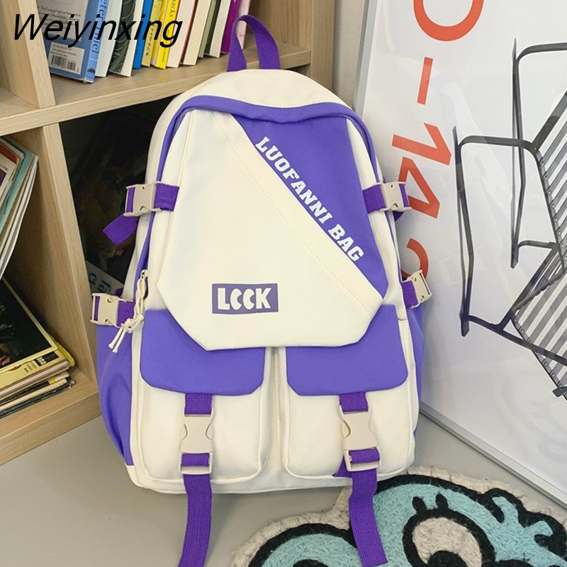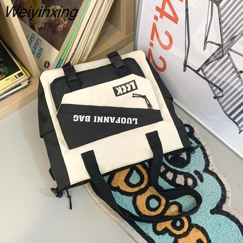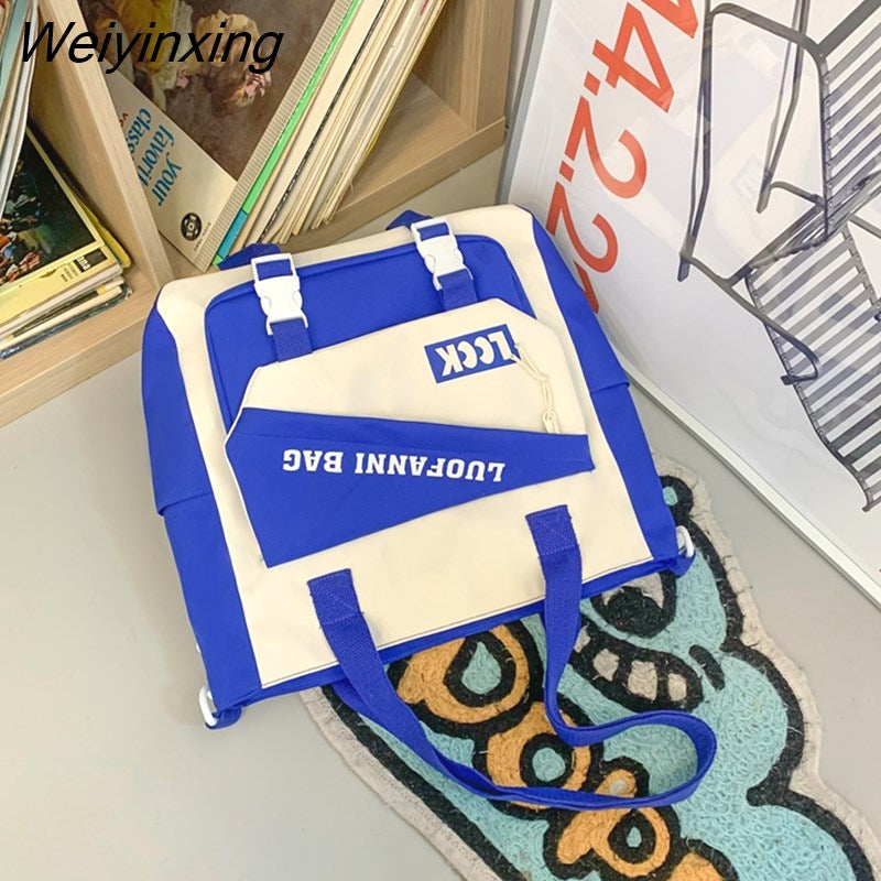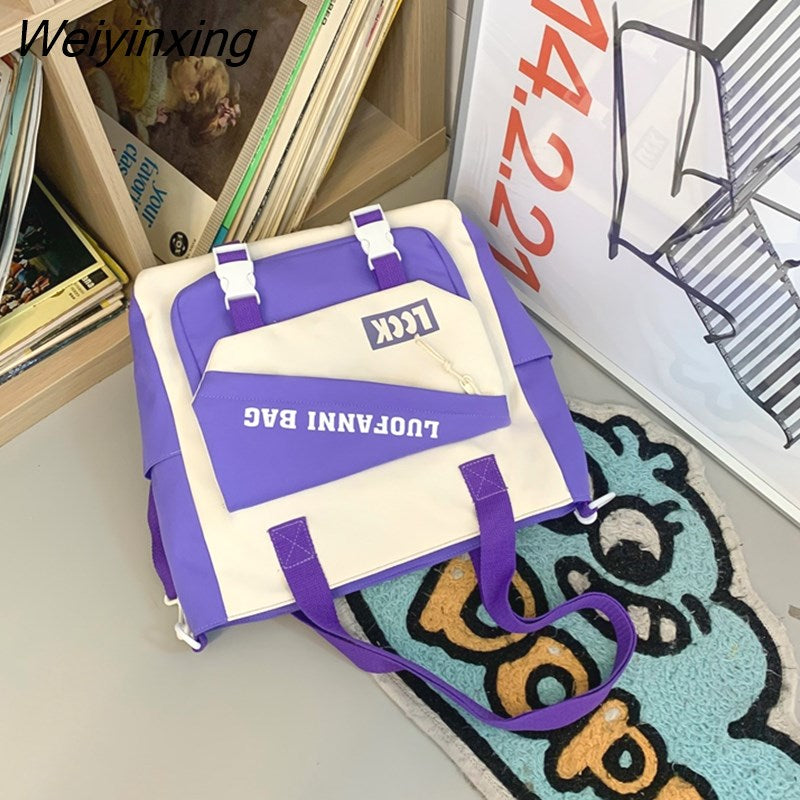 Weiyinxing Kawaii Letter Printing Women Backpack Fashion Waterproof Nylon Set Bag Rucksack Cool Schoolbag for Teen Girls Travel Mochila