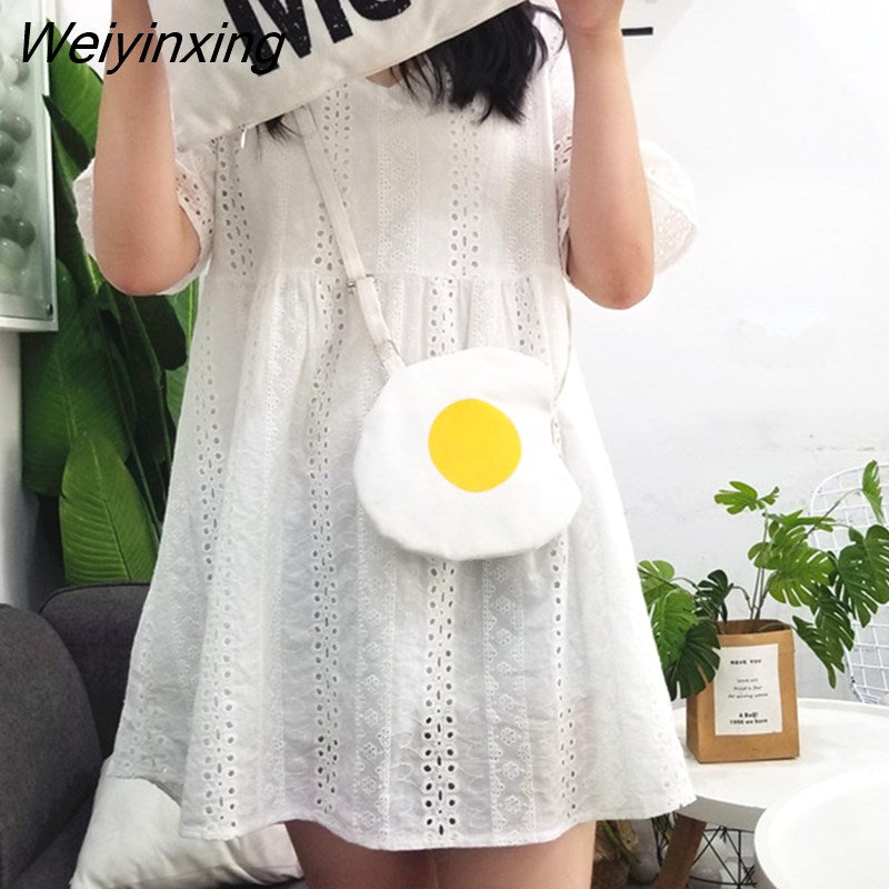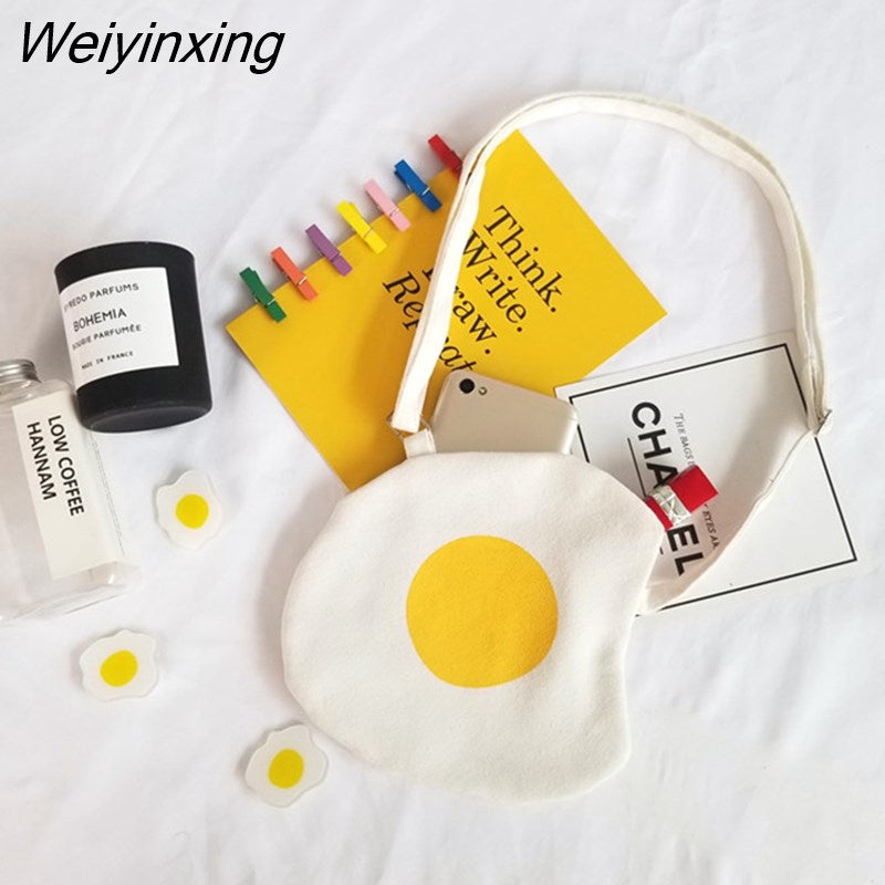 Weiyinxing Kawaii Poached Egg Packet Cute Cartoon Messenger Bag Canvas Bag Shoulder Bags Women Bag Purse Crossbody Bag Satchels