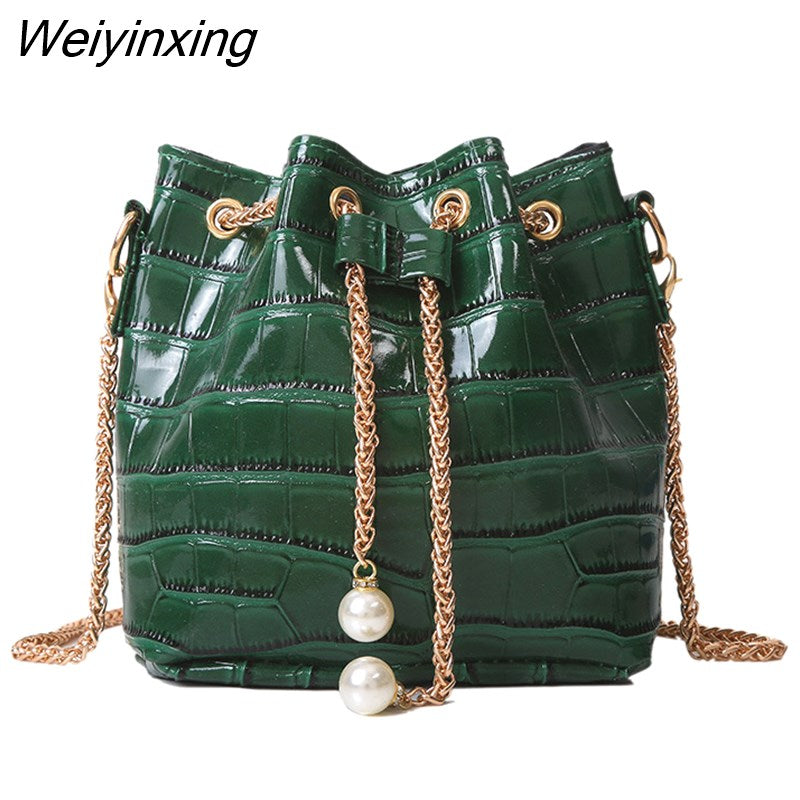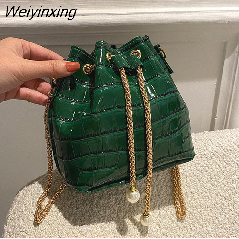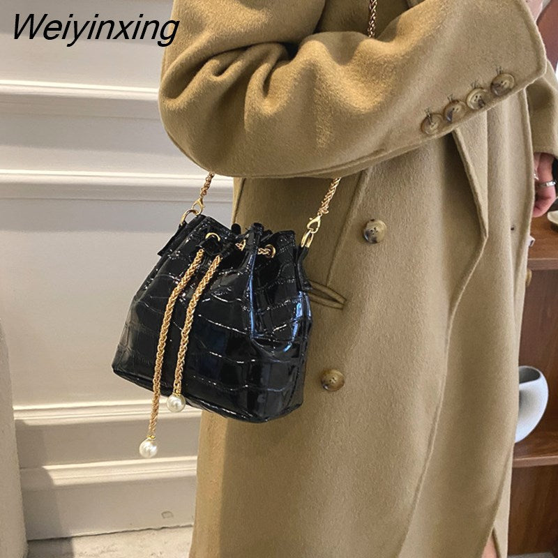 Weiyinxing Lacquer Simple Portable Bucket Bag 2023 Fashion Trend Personality Drawstring One-shoulder Messenger Women's Bag