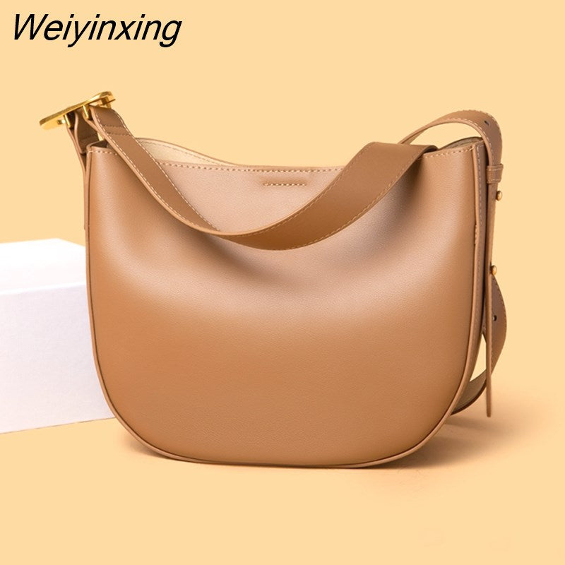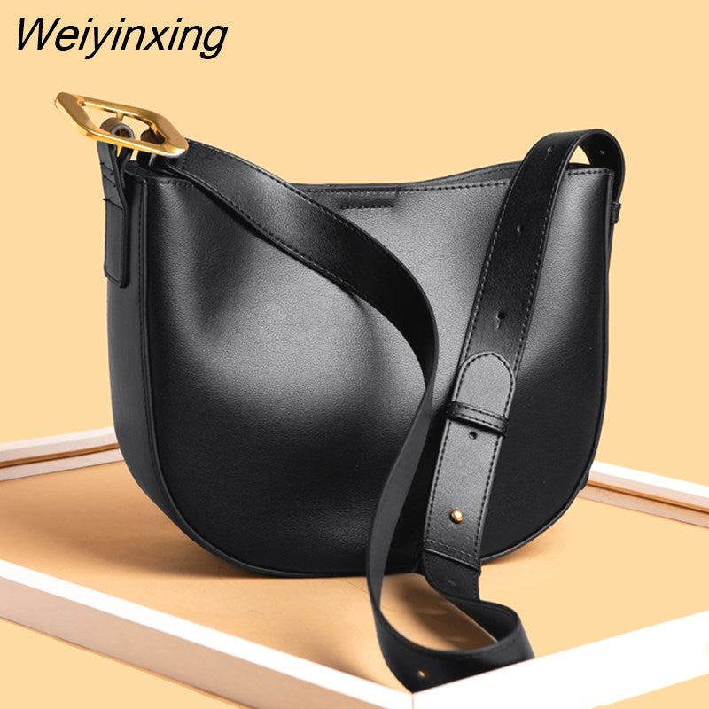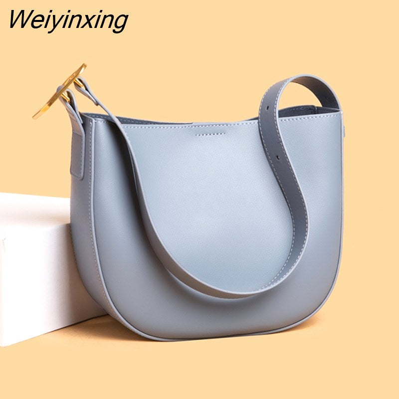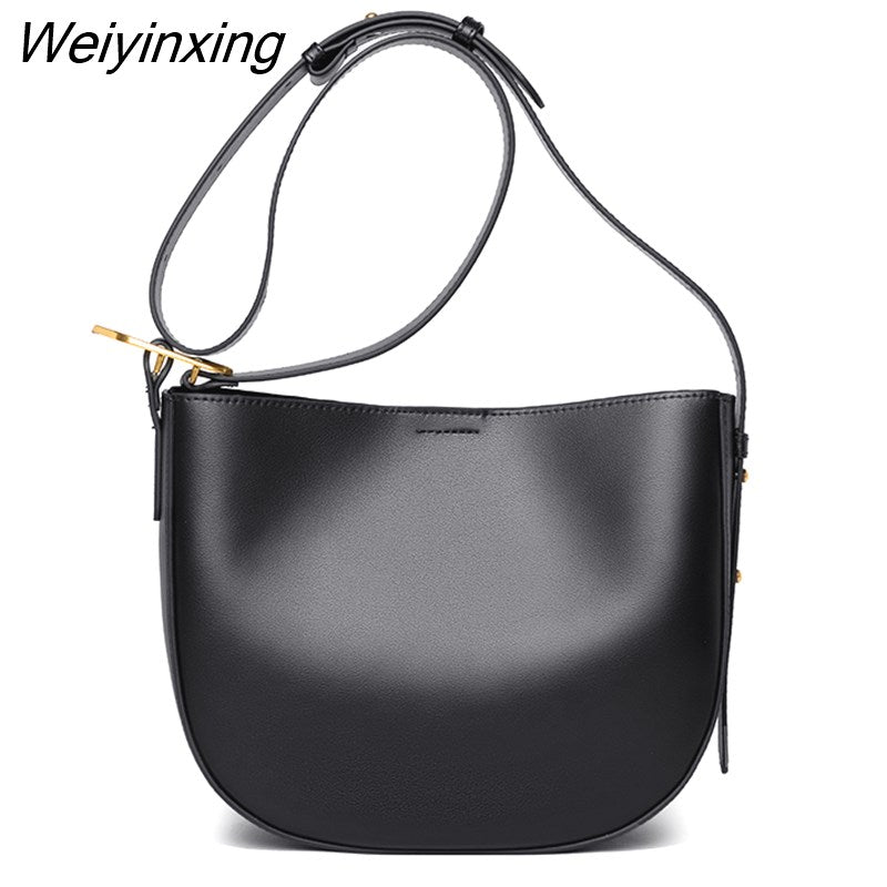 Weiyinxing Ladies Genuine Leather Bucket Handbags Luxury Designer Women Vintage Cowhide Shoulder bags Big Capacity Female Tote Bag