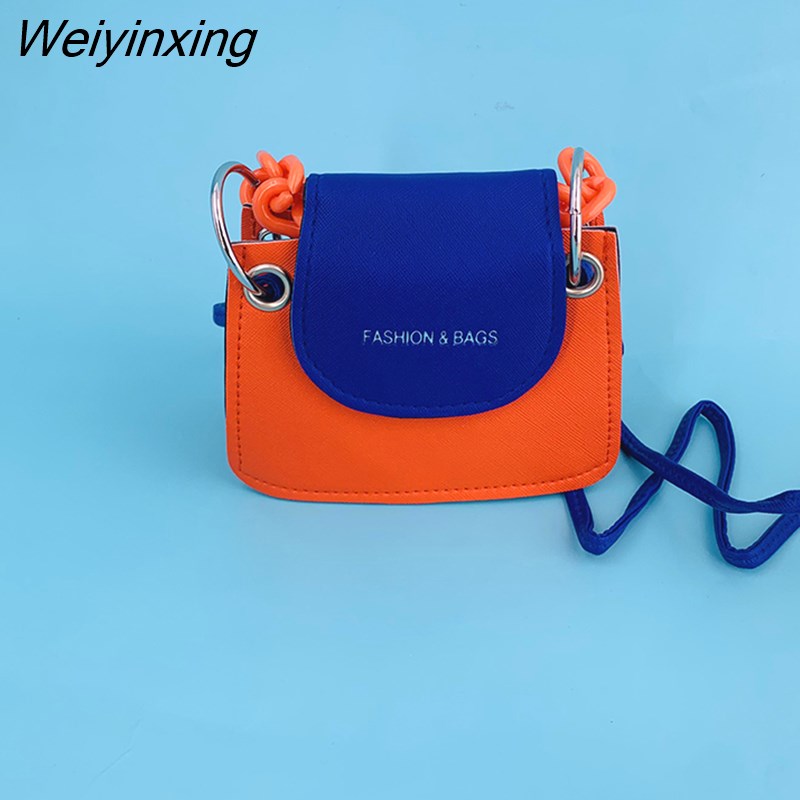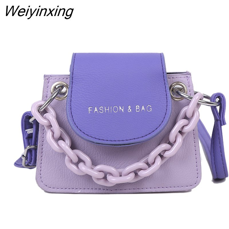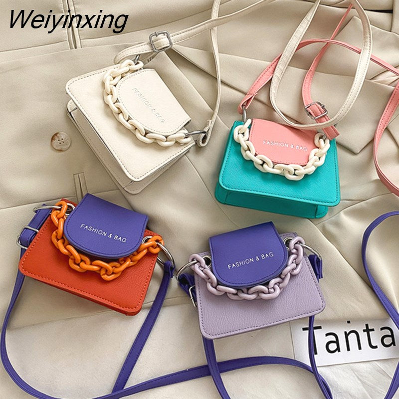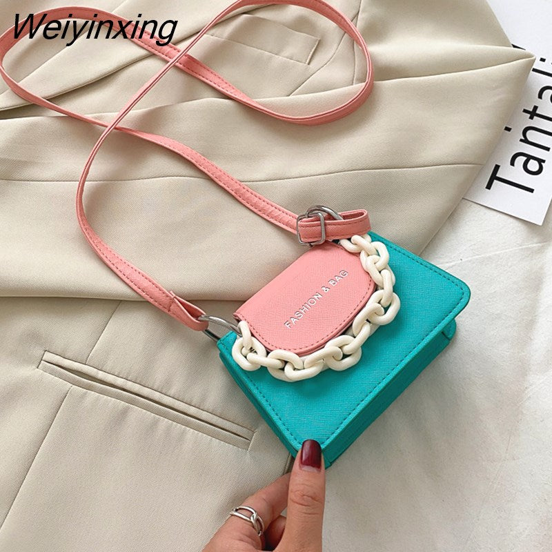 Weiyinxing Ladies Simple Versatile Bag Women Mini Crossbody Bag Acrylic Chain Lady Hit Color PU Leather Luxury Designer Shoulder Bag