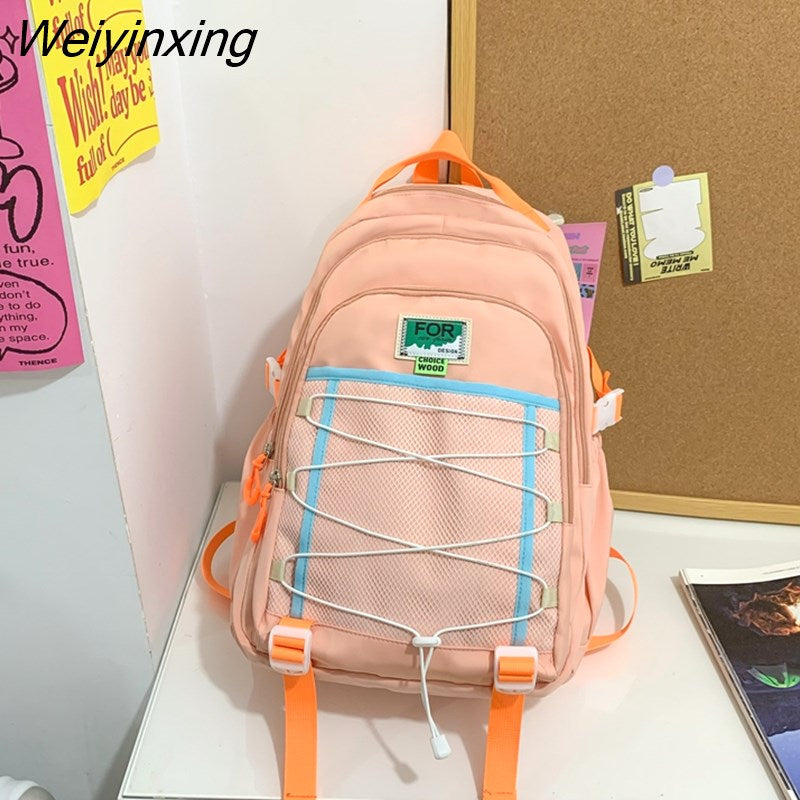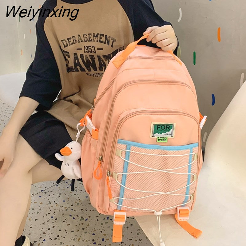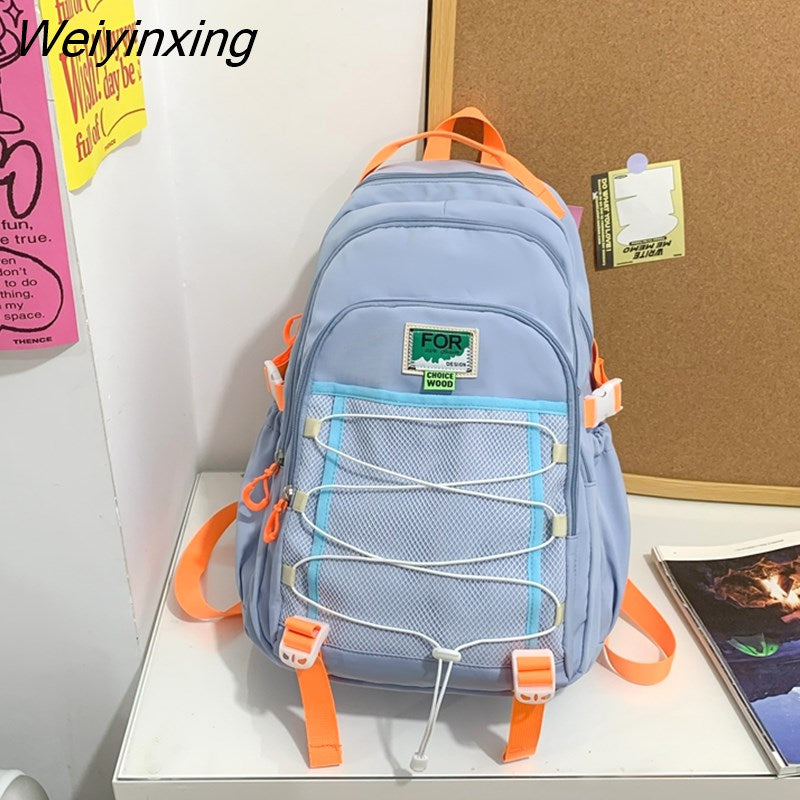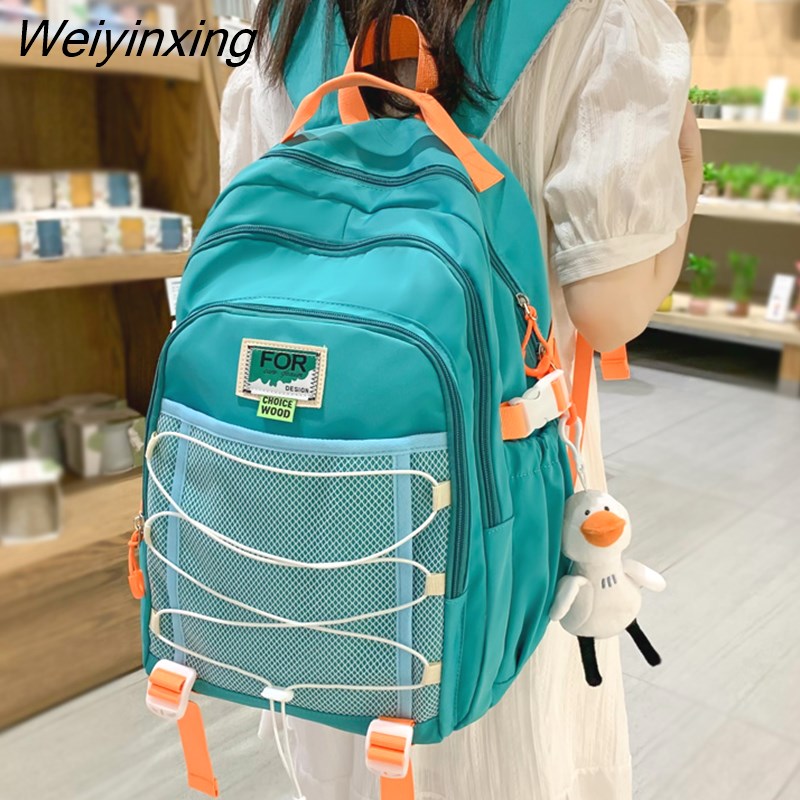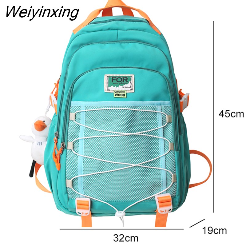Weiyinxing Large Capacity Waterproof Nylon Women Backpack Female Multiple Pockets Mesh Travel Bag Kawaii Buckle Schoolbag for Girls