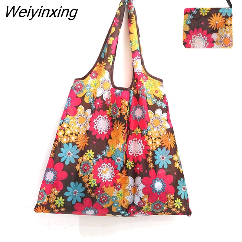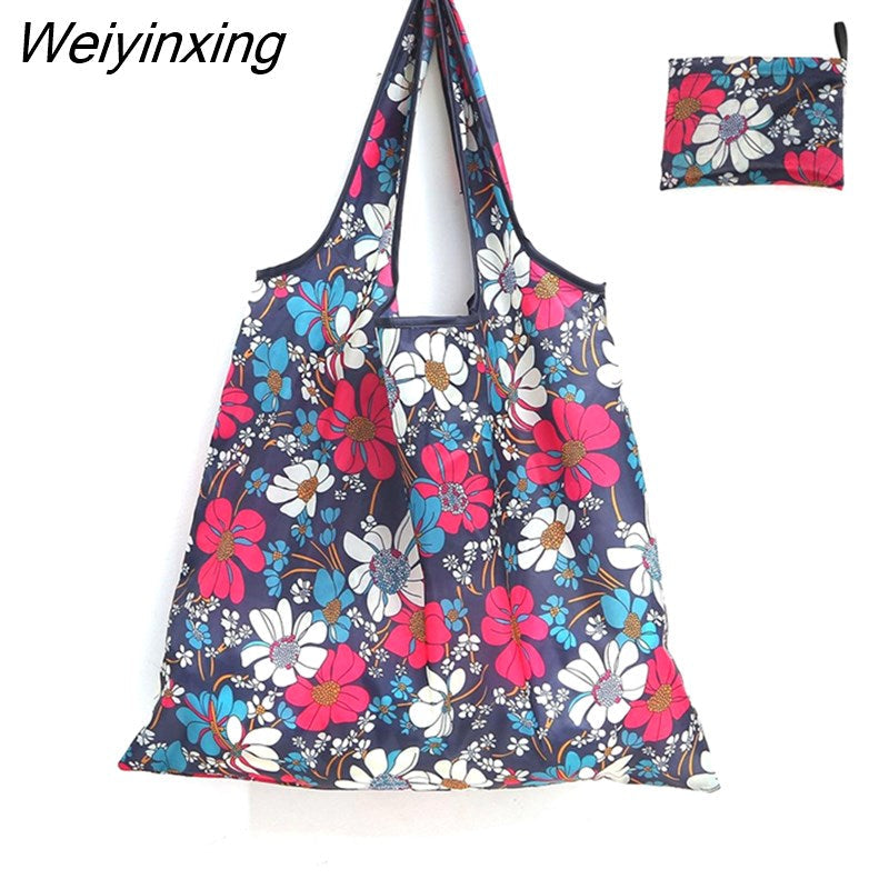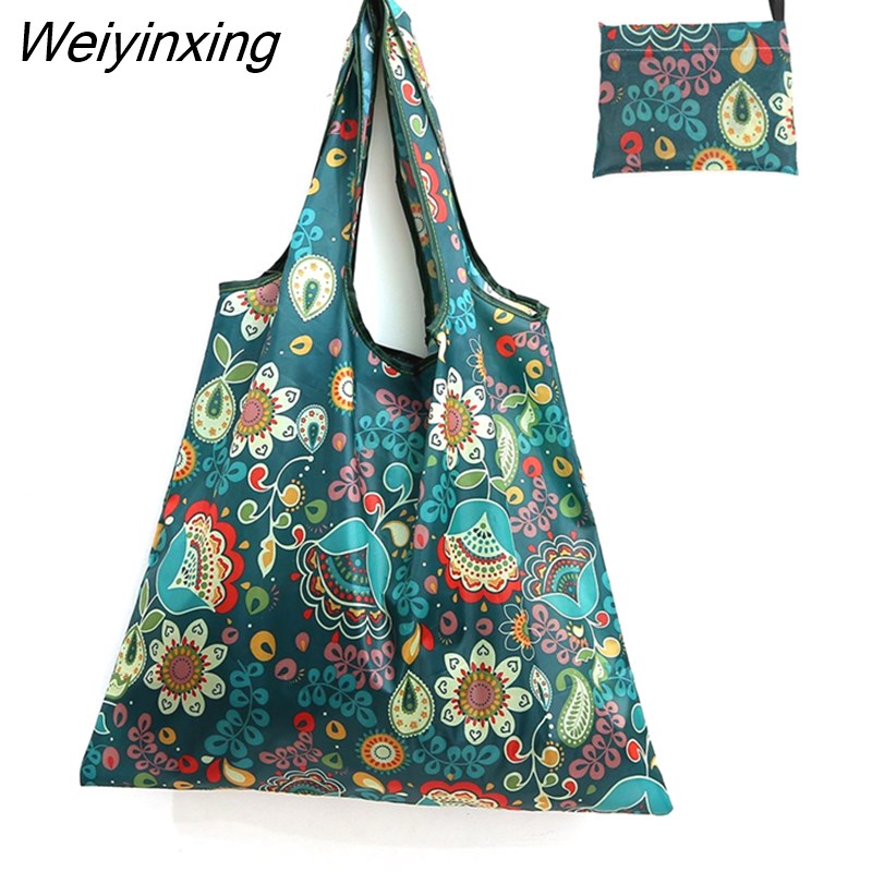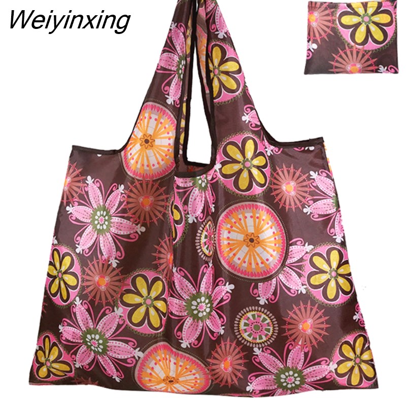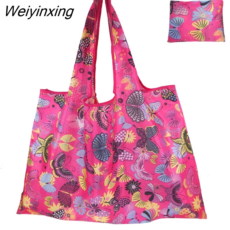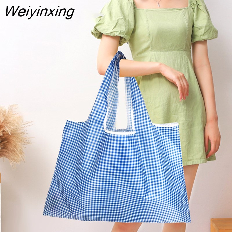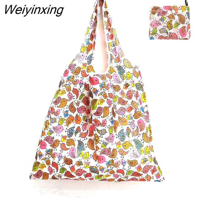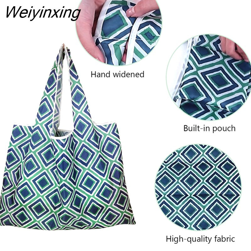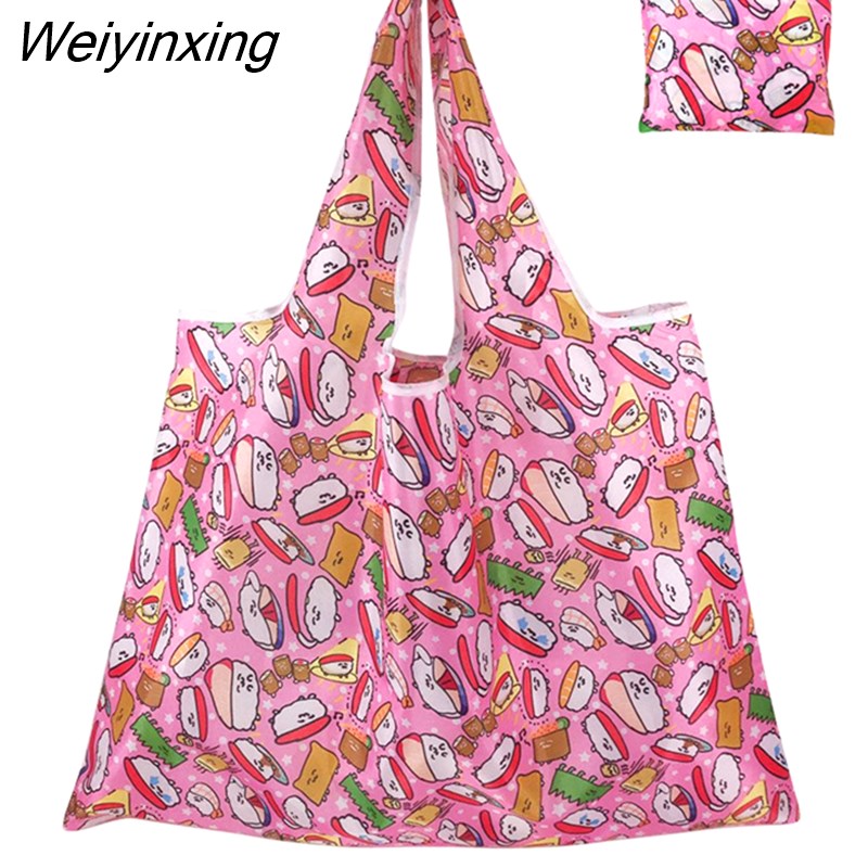 Weiyinxing Large Reusable Shopper Bag Women Handbag Grocery Beach Bag Cute Vegetable Fruit Organizer Washable Strong Nylon Totes Bag