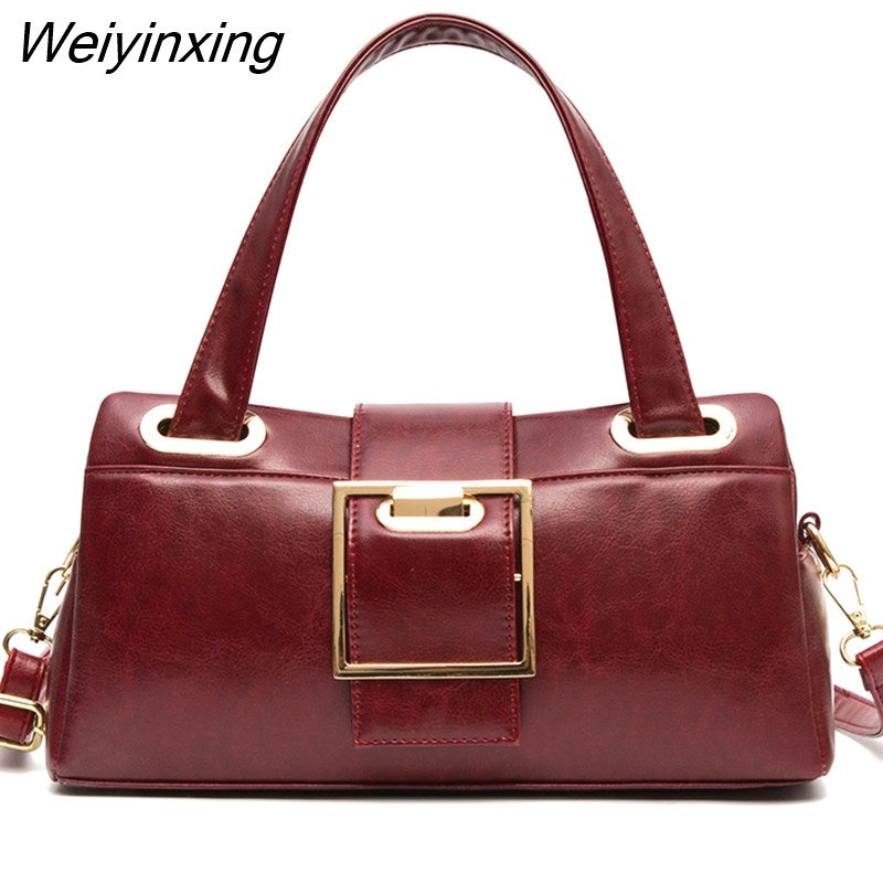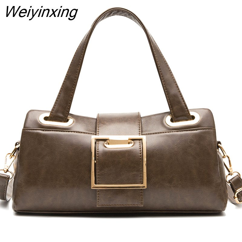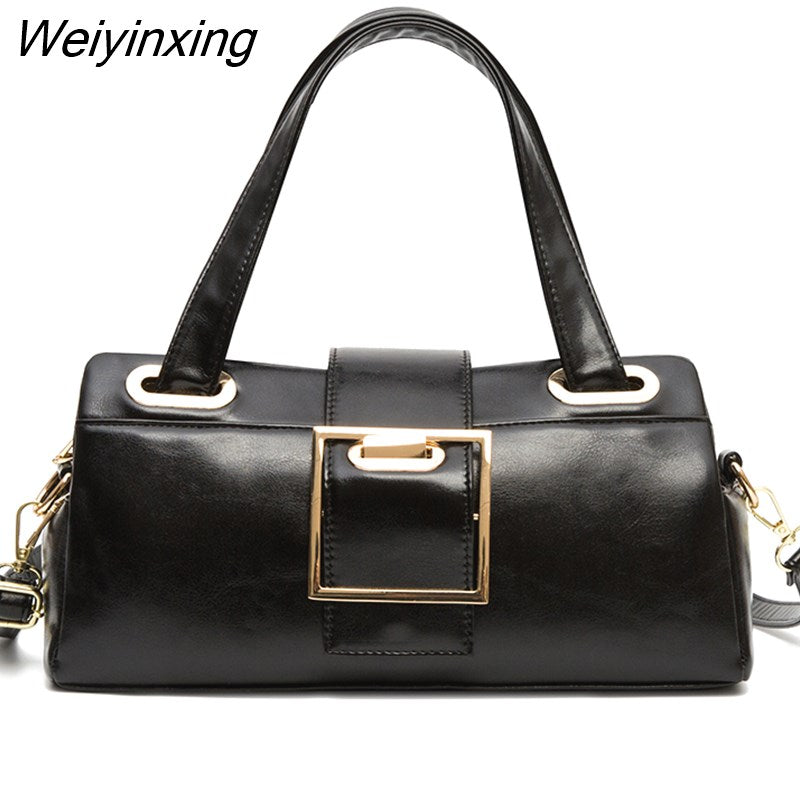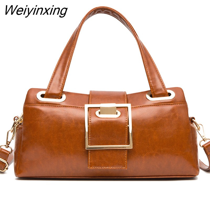 Weiyinxing Layers High Quality Oil Wax Leather Handbag Luxury Designer Women Shoulder Crossbody Bag Solid Color Female Messenger Tote Sac