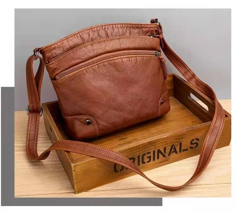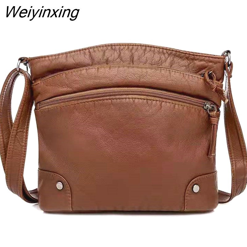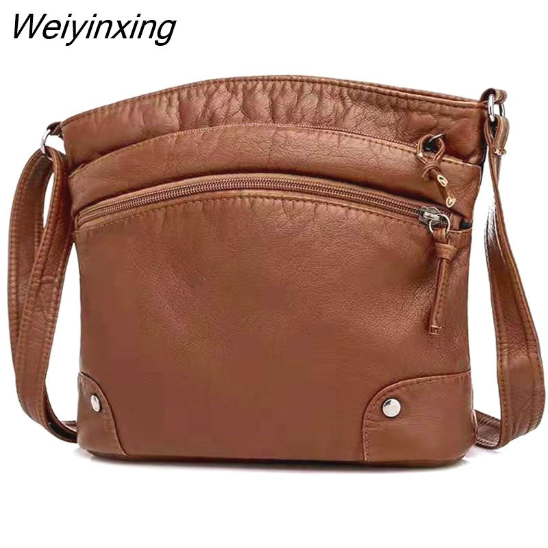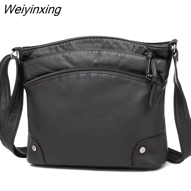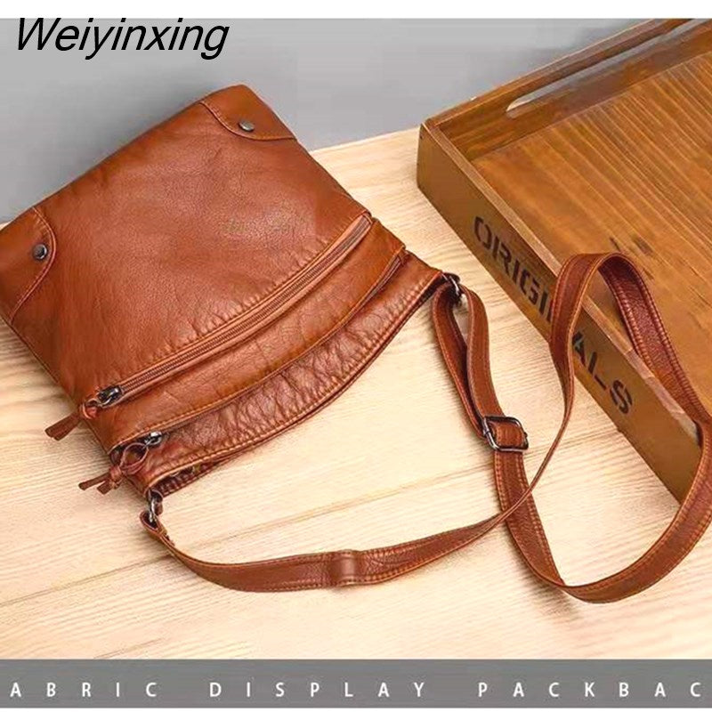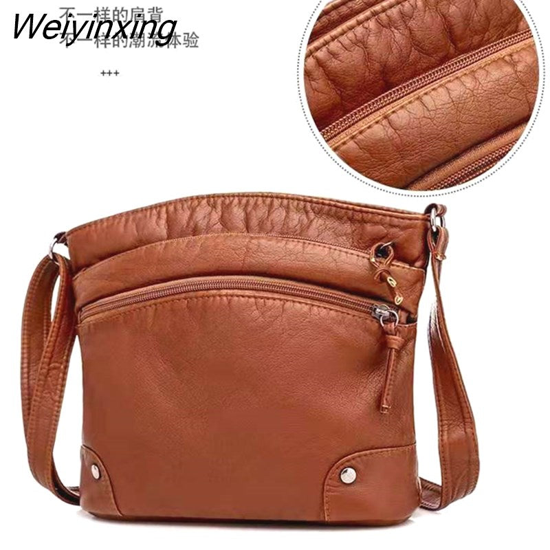 Weiyinxing Leather Shoulder Bag Women Retro Messenger Bag Double Zipper Female Crossbody Bag Big Capacity Daily Handbag