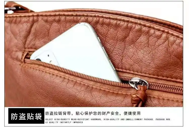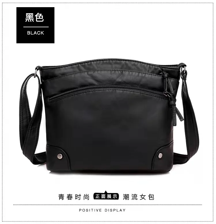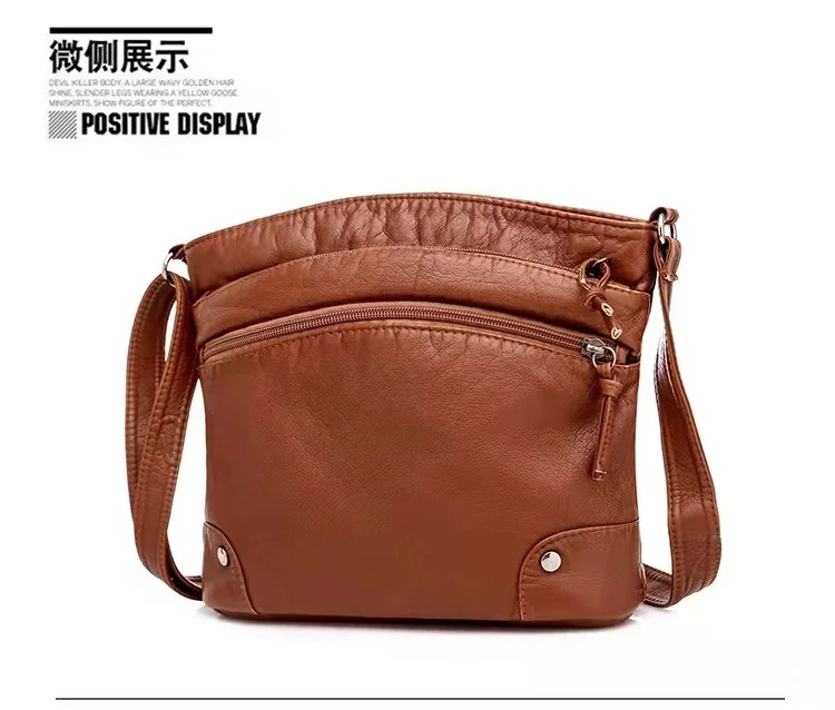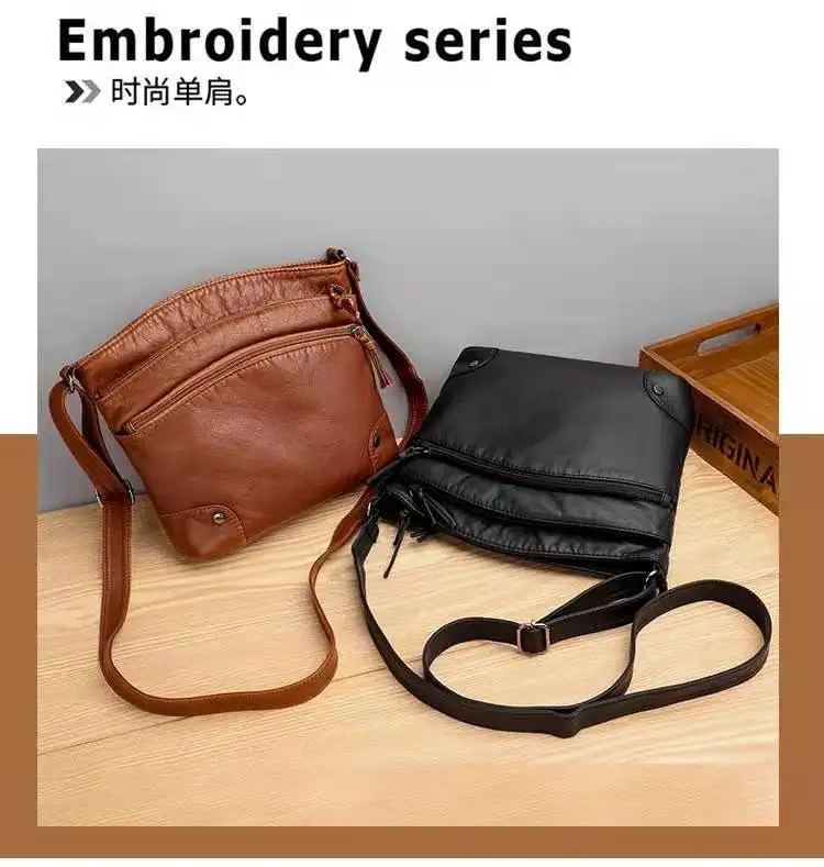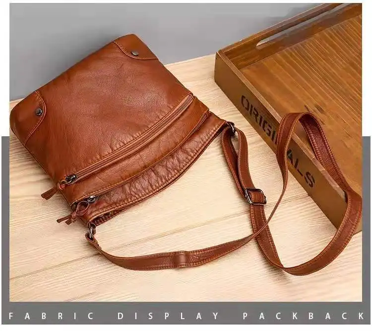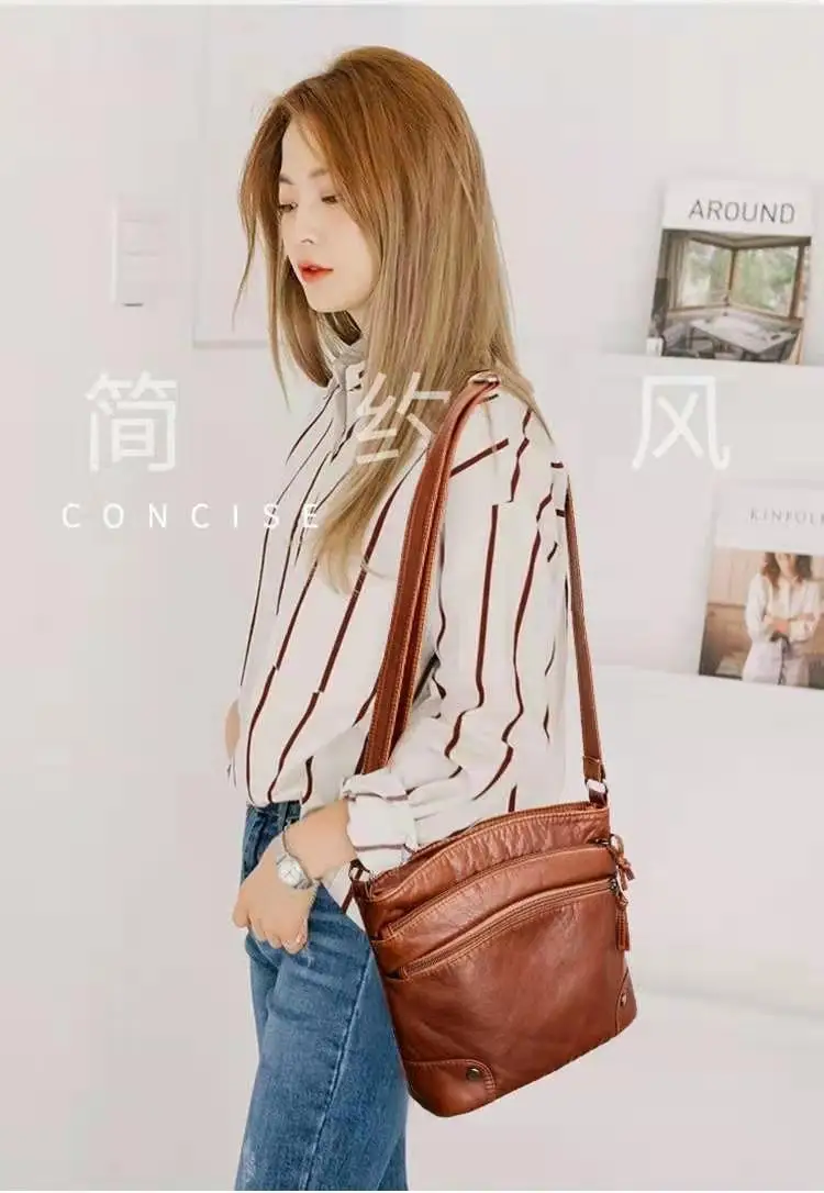 Weiyinxing Leather Shoulder Bag Women Retro Messenger Bag Double Zipper Female Crossbody Bag Big Capacity Daily Handbag