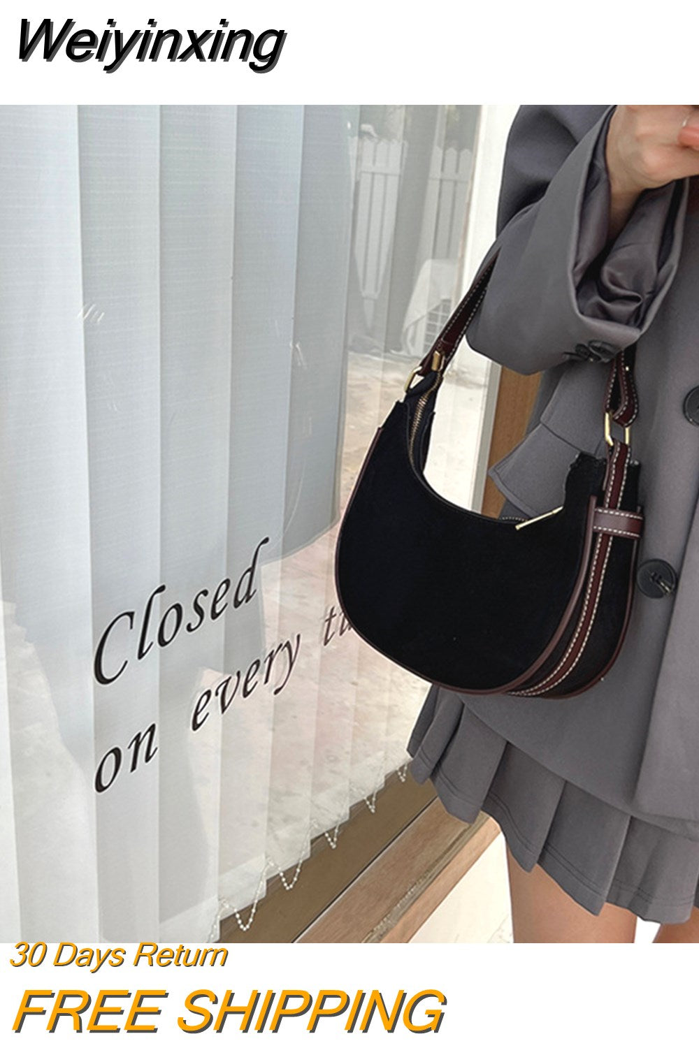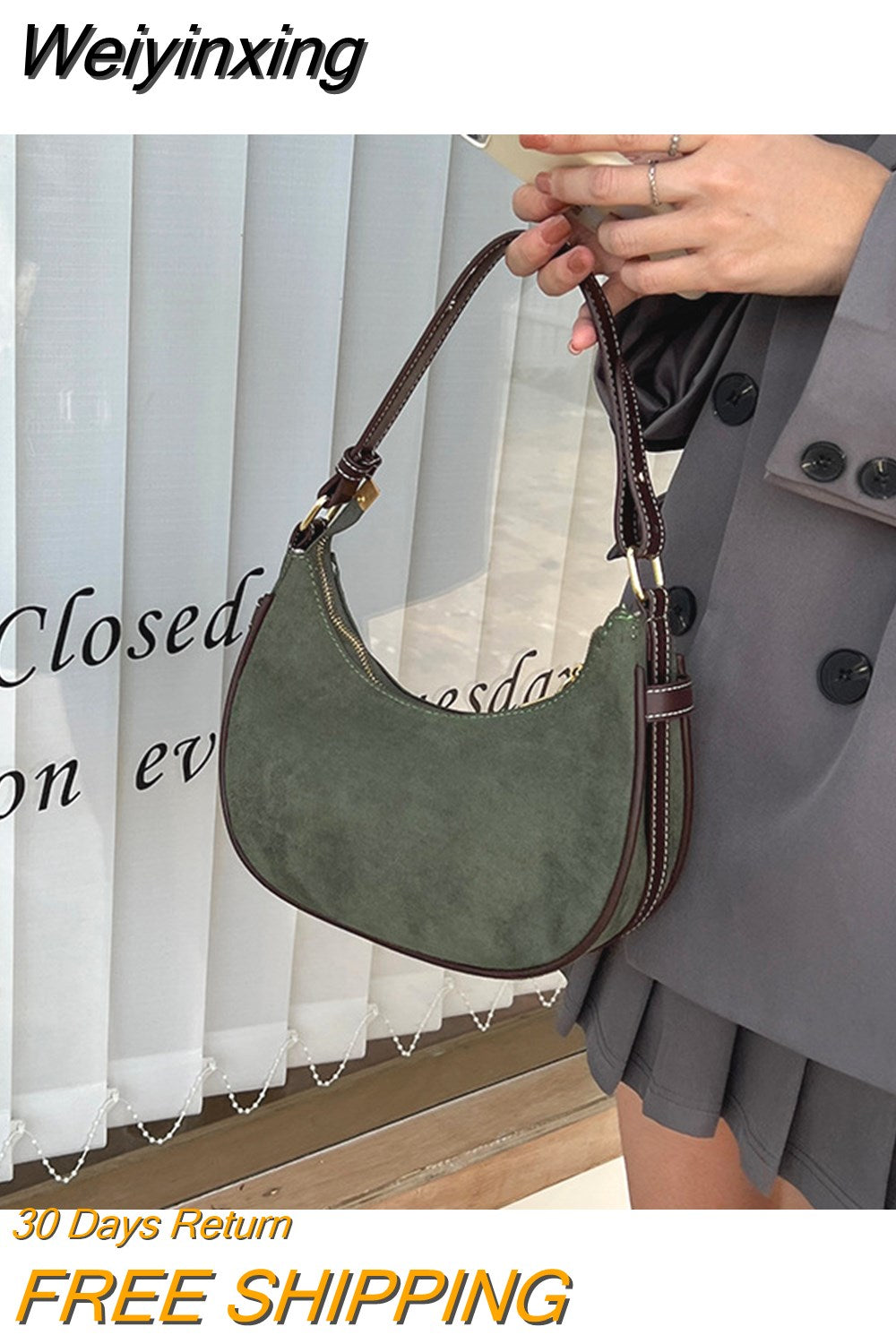 Weiyinxing Leather Women's Underarm Bag Retro Color Ladies Hobos Small Shoulder Bags Purse Handbags Female Half Moon Crossbody Bag