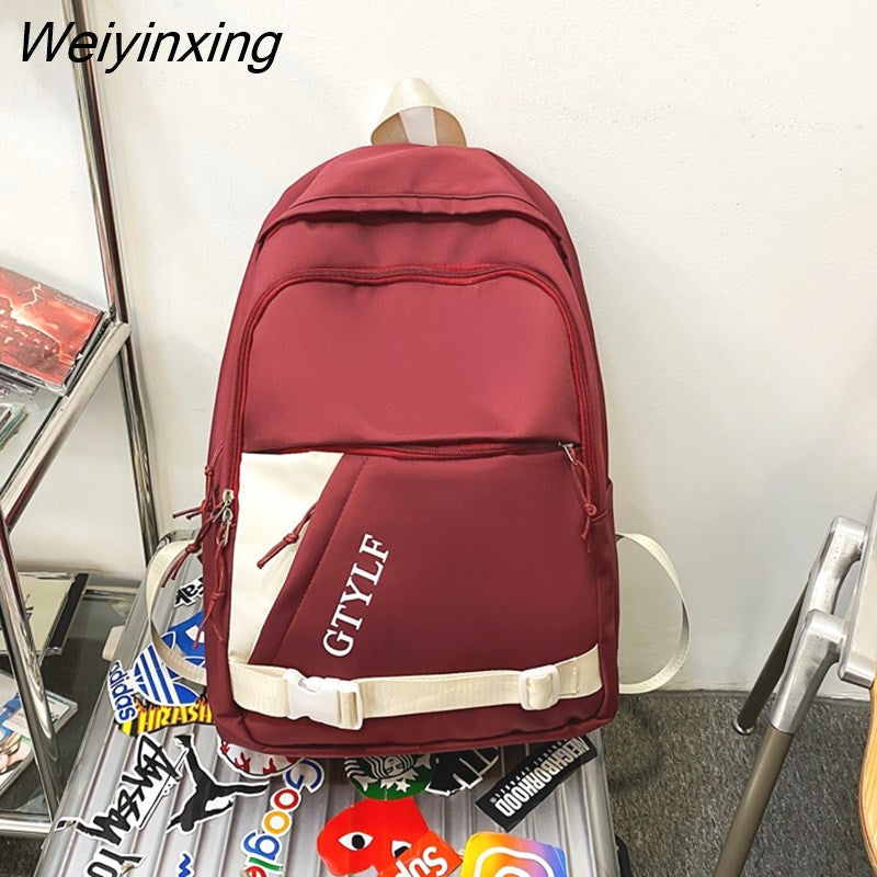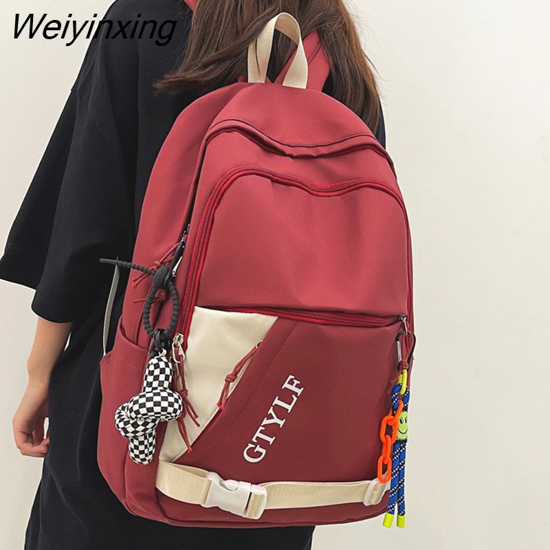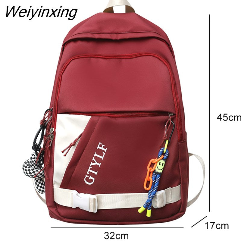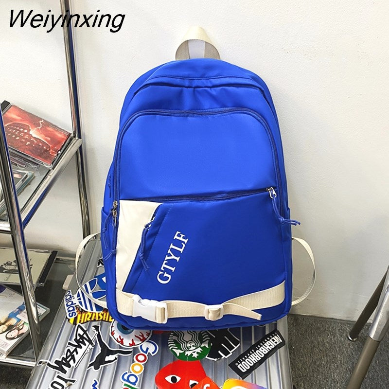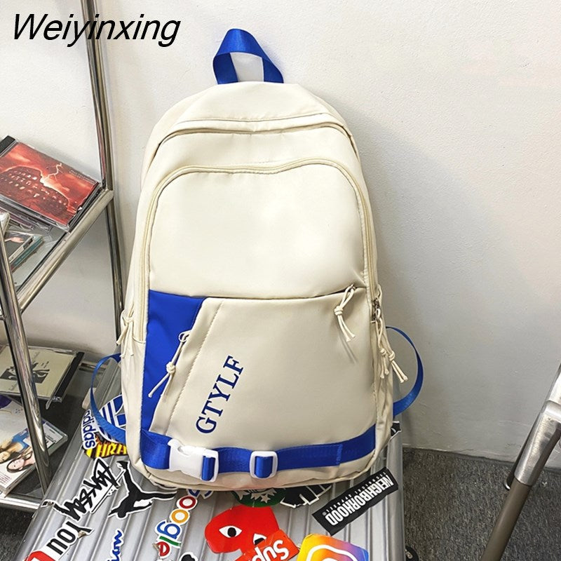 Weiyinxing Letter Printing Waterproof Nylon Backpack Fashion Multiple Pockets Contrast Color Women Travel Bag Teenager Big Schoolbag