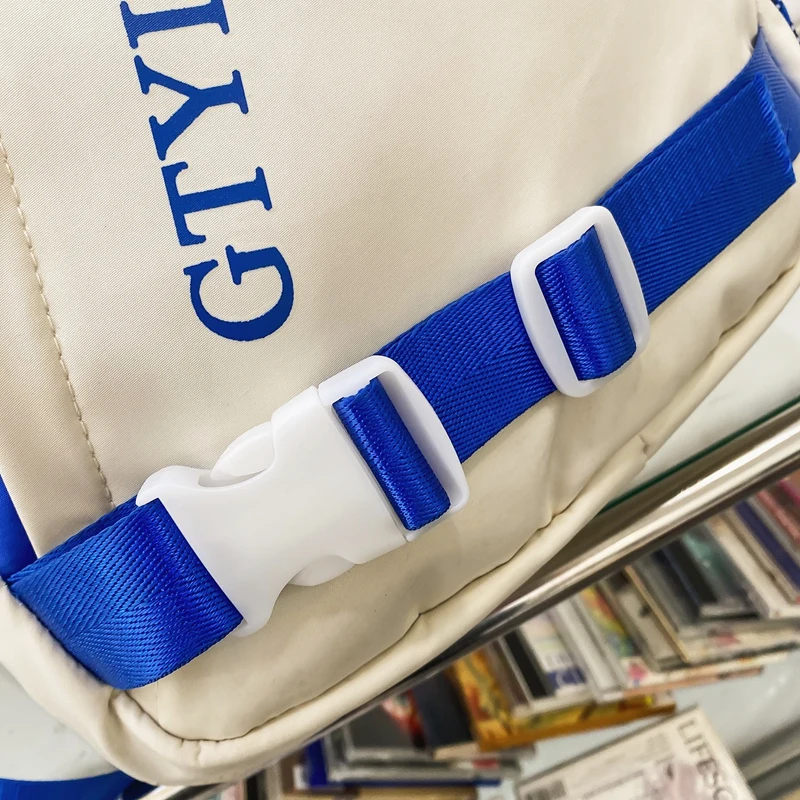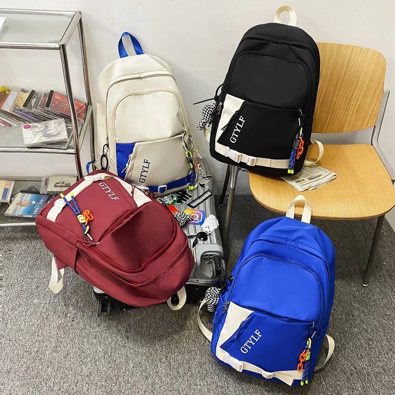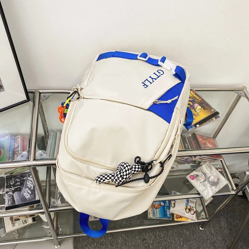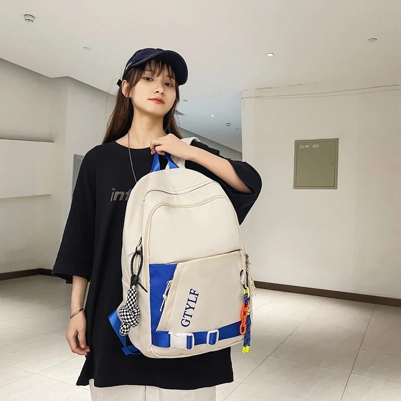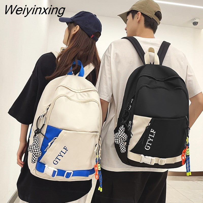 Weiyinxing Letter Printing Waterproof Nylon Backpack Fashion Multiple Pockets Contrast Color Women Travel Bag Teenager Big Schoolbag